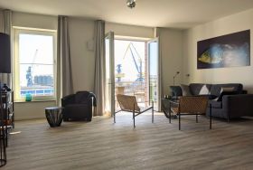 Die 2-Zimmer-Ferienwohnung Hafenspitze 31 befindet sich in der 3. Etage. Mit dem Fahrstuhl gelangen Sie bequem zu Ihrem Appartement. Der Balkon bietet Ostseeblick sowie Sicht zum Holzhafen. Geräumige Wohnfläche von 63qm. Integrierte Wohnküche sowie ein separates Schlafzimmer und ein modernes Duschbad. Eine Belegung ist mit 4 Personen möglich. Bei Ihrer Ankunft sind die Betten bereits für 2 Personen bezogen. Handtücher/Duschtücher sind ebenfalls für 2 Personen inklusive. Es handelt sich um eine Nichtraucherwohnung. Gegen Gebühr können Sie im Parkhaus am Alten Hafen in ca. 300 Meter Ihr Fahrzeug abstellen.