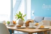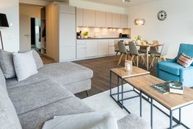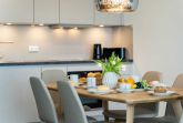 Das perfekte Urlaubsdomizil für unsere Gäste, die Wert auf großzügiges, luxuriöses Wohnen legen. Das 3-Zimmer-Appartement Hafenspitze 32 verwöhnt Sie mit einer Wohnfläche von 93qm. Eine Belegung ist mit bis zu 4 Personen möglich. Die Ferienwohnung besitzt zudem eine sonnige Loggia im Hafenblick, wobei elektrisch bedienbare Außenrollos für sommerlichen Wärmeschutz sorgen. Der einladende Wohn-Essbereich bietet eine komfortable Möblierung mit bequemer Sitzgarnitur und einem Esstisch.