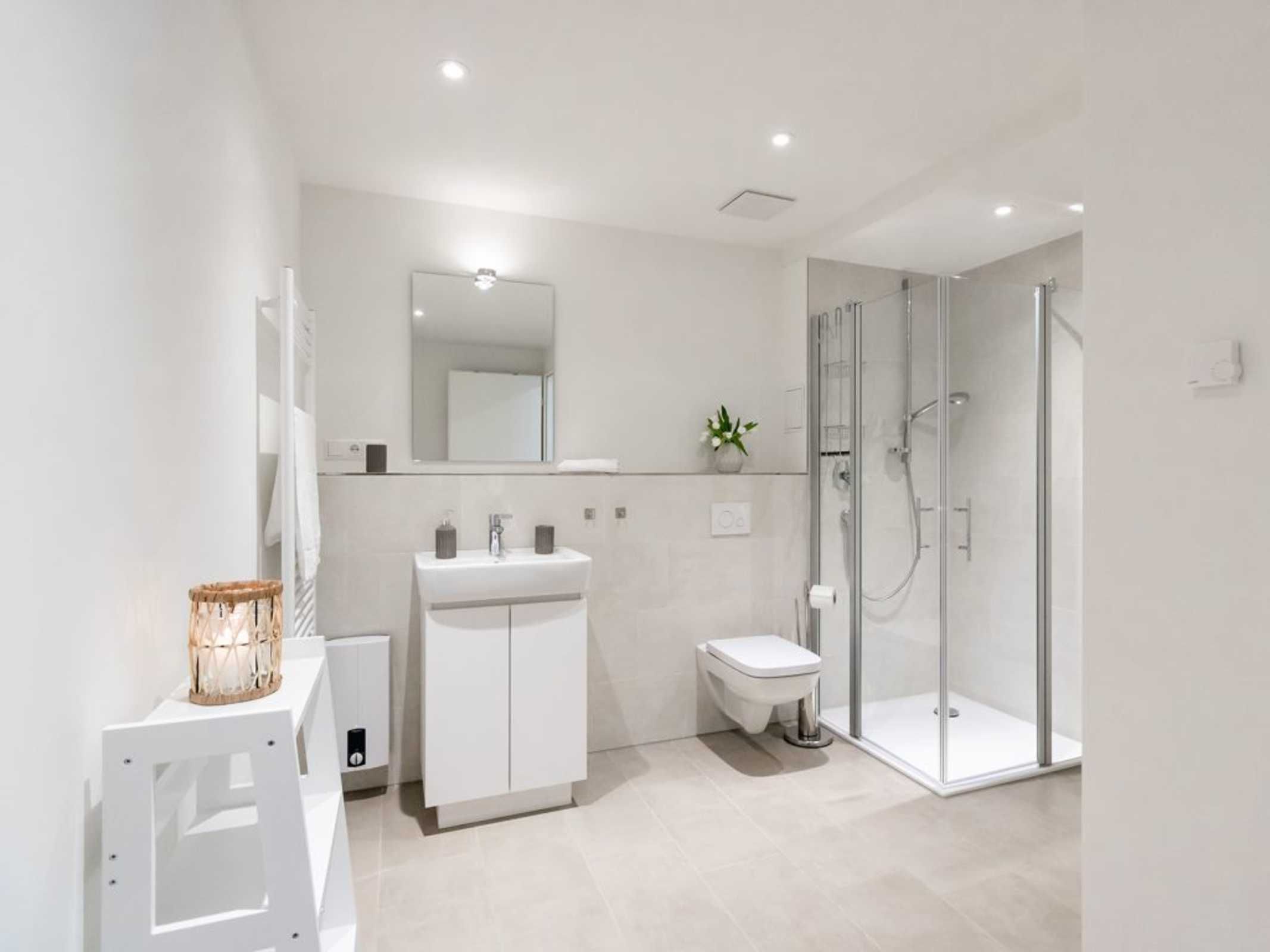 Zugehörig ist ein modernes Badezimmer mit bodengleicher Dusche, Waschtisch, WC, Handtuchtrockner sowie ein zusätzliches Gäste WC. Das gesamte Ferienappartement verfügt über eine Fußbodenheizung, die insbesondere während der Wintermonate für wohlige Wärme sorgt. Als inklusive Service Leistung sind bei Ihrer Ankunft die Betten für zwei Personen bereits bezogen und Hand/Duschtücher liegen ebenfalls bereit.