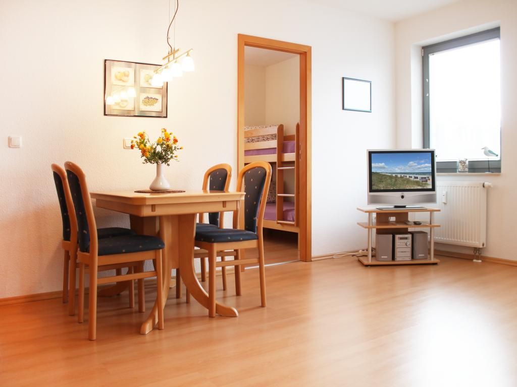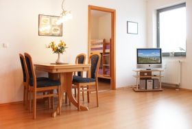 Die gemütliche 3-Zimmer Ferienwohnung mit Balkon, befindet sich im 1.Obergeschoss. Auch Allergiker können sich in dieser Wohnung wohlfühlen. Mit einer Wohnfläche von 53qm bietet das Appartement Platz für max. 4 Personen. Im geräumigen Wohnbereich erwartet Sie eine Sofagarnitur mit Beistelltisch, Esstisch, Fernseher und Musikanlage. Bitte beachten Sie, dass in diesem Appartement kein WLAN zur Verfügung steht.