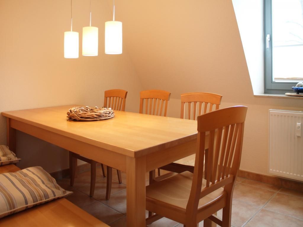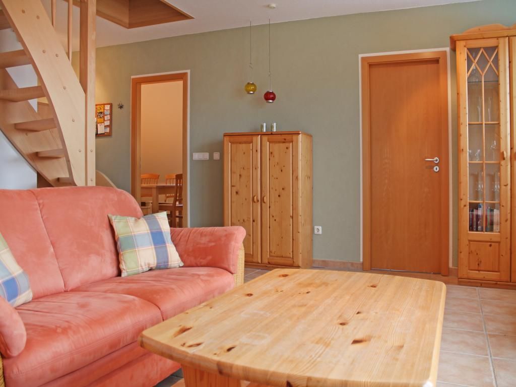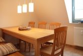 Die komfortabel ausgestattete 5-Zimmer Maisonettenwohnung mit Balkon, befindet sich im 2. Obergeschoss. Die Wohnung besitzt eine Wohnfläche von 65qm und kann mit max. 6 Personen gebucht werden. Wir empfehlen eine Belegung mit max. 5 Personen. Im geräumigen Wohnbereich erwartet Sie eine Sofagarnitur mit Beistelltisch sowie Fernseher und Musikanlage. Die Ferienwohnung bietet Ihnen ein gemütliches, separates Esszimmer. Bitte beachten Sie, dass in diesem Appartement kein WLAN zur Verfügung steht.