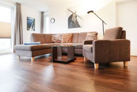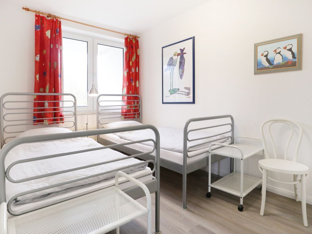Die behagliche 3-Zimmer Wohnung Sünnslag 1/04 mit saisonal möbliertem Balkon in Süd-/West befindet sich im 1. Obergeschoss, wohin Sie über einen separaten Außentreppen Zugang gelangen. Es empfängt Sie ein liebevoll eingerichtetes Ferienappartement mit einer großzügigen Wohnfläche von 64qm. Das komfortabel eingerichtete Wohnzimmer verfügt über eine ausziehbare Sitzgarnitur, die zwei zusätzliche Schlafgelegenheiten bietet, falls Sie mit mehr als 4 Personen anreisen möchten. Für technische Unterhaltung sind im Wohnbereich ein Flachbild Fernsehgerät sowie DVD-Player vorhanden. In der separaten Küche, die mit Herd, Kühlschrank, Backofen, Mikrowelle, Spülmaschine sowie Toaster, Wasserkocher und Kaffeemaschine voll ausgestattet ist befindet sich auch ein Essplatz für gemeinsame Mahlzeiten. Des Weiteren bietet das geräumige Appartement zwei separate Schlafzimmer 1x mit Doppelbett, Kleiderschrank und Fernseher und 1x mit zwei Einzelbetten. Zugehörig sind ein Duschbad sowie ein separates Gäste-WC mit kostenfreier Waschmaschinen Nutzung. Zudem ist direkt neben dem Wohnungseingang ein Abstellraum im Außenbereich vorhanden. Für Ihr Fahrzeug ist ein Außenstellplatz ohne Mehrkosten reserviert und mitgebrachte Fahrräder können Sie bei Bedarf in einem abschließbaren Fahrradraum, der sich vor dem Gebäude befindet, unterstellen. In der familienfreundlichen Nichtraucherwohnung sind Haustiere nicht gestattet. Auf Wunsch könne Sie Bettwäsche sowie Handtücher gegen Gebühr hinzu buchen, um Ihr Reisegepäck zu erleichtern.