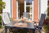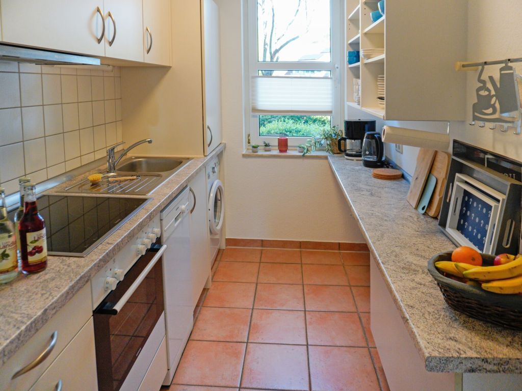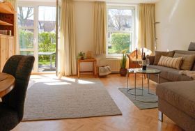 Das familienfreundliche 2- Zimmer Ferienappartement Sünnslag 10/133 befindet sich im Erdgeschoss des Gebäudes und verfügt über eine saisonal möblierte Terrasse. Die Wohnfläche ist mit 53qm für eine Belegung mit maximal 4 Personen ausgerichtet. Vom gemütlichen Wohnzimmer, welches mit einer ausziehbaren Schlafcouch, Lesesessel, Esstisch und Flachbild-Fernseher ausgestattet ist betreten Sie die sonnige Terrasse. In der separaten Küche mit Herd, Backofen, Dunstabzug, Kühlschrank, Geschirrspüler sowie Kaffeemaschine, Toaster und Wasserkocher können Sie bequem Ihre Urlaubsmahlzeiten zubereiten. Die Nutzung einer Waschmaschine ist kostenfrei. Erholsame Nächte ermöglicht das separate Schlafzimmer in nördliche Richtung mit Doppelbett und einem geräumigen Kleiderschrank. Zugehörig ist ein Duschbad. Erleichtern Sie Ihr Reisegepäck denn Bettwäsche sowie Handtücher sind auf Wunsch gegen Gebühr zu buchbar. Innerhalb der Wohnung befindet sich ein kleiner Abstellraum. Ihren PKW parken sie kostenfrei auf dem für Sie reservierten Außenstellplatz vor der Wohnanlage. Diese Wohneinheit ist ür Haustiere nicht erlaubt. Das Meer mit feinsandigem Strand erreichen Sie in wenigen Gehminuten nach nur ca. 350 Meter.