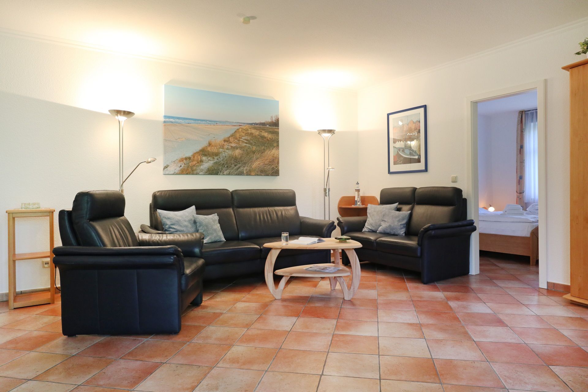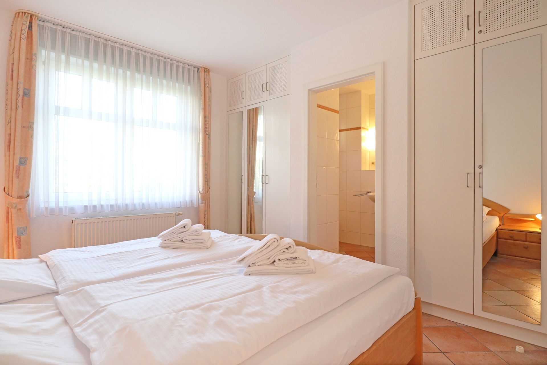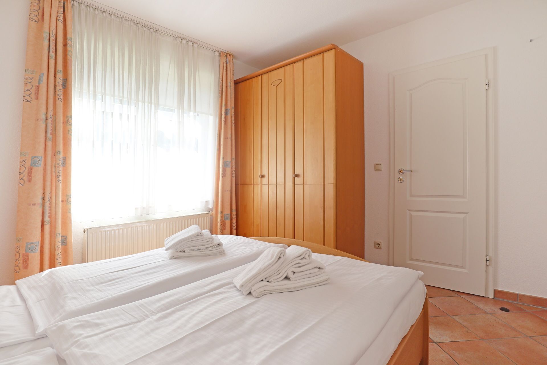 Die familienfreundliche 3-Zimmer Erdgeschoss Ferienwohnung ?Minervapark 1? mit Terrasse, besitzt eine Wohnfläche von 73qm und ist für eine Belegung mit bis zu 4 Personen ausgestattet. Für technische Unterhaltung stehen Fernseher, Musikanlage bereit und WLAN nutzen Sie gebührenfrei. Vom behaglich möblierten Wohn-/Essbereich mit Sofagarnitur und Esstisch mit vier Sitzplätzen, gelangen Sie auf die saisonal möblierte Terrasse in nördliche Ausrichtung. Für die Eigenversorgung ist eine voll ausgestattete Wohnküche vorhanden mit: Ceranherd, Backofen, Mikrowelle, Dunstabzug, Kühlschrank mit integr. Gefrierfach, Geschirrspüler, Kaffeemaschine, Wasserkocher, Toaster usw. Zwei separate Schlafzimmer mit Doppelbett und Kleiderschränken mit genügend Stauraum bieten erholsamen Schlafkomfort. Idealerweise besitzt diese Ferienwohnung zwei komfortable Duschbäder mit Waschtisch, WC, wovon eines über eine Waschmaschine zur kostenfreien Nutzung verfügt. Auch ein Föhn, Bügeleisen und Bügelbrett sind vorhanden. Keine Haustiere. Nichtraucherwohnung. Für Kleinkinder stehen ein Kinderhochstuhl sowie Kinderreisebett bereit. Ihren PKW parken Sie in der hauseigenen Tiefgarage und gelangen von dort bequem mit dem Fahrstuhl zu den Wohnungsetagen.