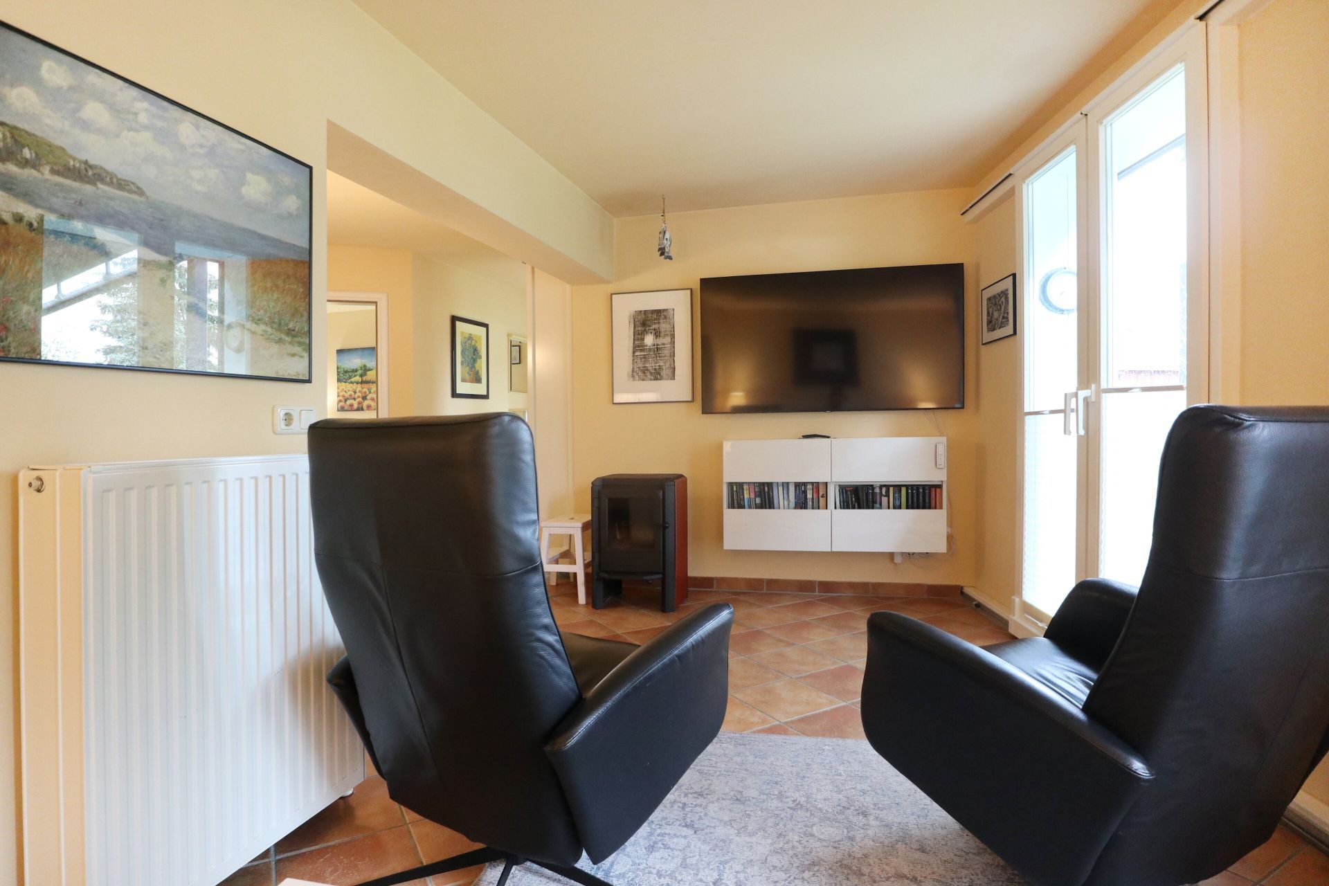 Dieser 3-Zimmer-Bungalow mit Terrasse und Gartennutzung befindet sich ca. 300 Meter (Luftlinie) zum feinsandigen Badestrand. Das Ferienhaus empfängt Sie komfortabel ausgestattet auf einer Wohnfläche von 60qm und bietet für 4 Personen einen sehr erholsamen, strandnahen Urlaub. Der hochwertig möblierte Wohn-Essbereich verfügt über einen Kaminofen, ein Sofa, sowie zwei Relax-Sessel mit Beinablage. Die moderne Unterhaltungselektronik bietet mit Fernseher und Musikanlage angenehme Abwechslung.