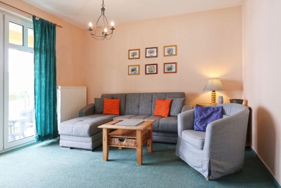 Die 2-Zimmer Ferienwohnung ?Minervapark 13? mit Balkon, befindet sich im 1. Obergeschoss und besitzt eine Wohnfläche von 57qm mit Teppichbodenbelag. Eine Belegung mit bis zu 3Personen möglich. Für technische Unterhaltung stehen Fernseher, Musikanlage bereit und WLAN nutzen Sie gebührenfrei. Vom Wohn-/Essbereich mit dem ausziehbaren Sofa, als dritte Schlafgelegenheit, gelangen Sie auf den saisonal möblierten West Balkon. Auch ein Esstisch mit vier Sitzplätzen ist im Wohnbereich vorhanden. Für die Eigenversorgung finden Sie in der separaten Küche alles, zur Zubereitung Ihrer Urlaubsmahlzeiten: Ceranherd, Backofen, Dunstabzug, Kühlschrank mit integr. Gefrierfach, Geschirrspüler, Kaffeemaschine, Wasserkocher, Toaster usw. Im separaten Schlafzimmer mit Doppelbett und Kleiderschrank verbringen Sie angenehme Nächte. Zugehörig ist ein Duschbad mit Fliesenbodenbelag, Waschtisch, Föhn, WC. Für Kleinkinder stehen ein Kinderbett und ein Kinderhochstuhl bereit. Ihren PKW parken Sie in der hauseigenen Tiefgarage und gelangen von dort bequem mit dem Fahrstuhl zu den Wohnungsetagen. Nichtraucher. Keine Haustiere.