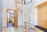 Im unteren Bereich: Wohnküche mit umfangreich ausgestatteter Küchenzeile (4- Platten- Herd, Backofen, Mikrowelle, Kaffeemaschine, Wasserkocher, Spülmaschine, Kühlschrank), gemütliche Sofaecke und Esstisch für 6 Personen. Flachbild TV, DVD Player, Multi I-Pod Docking Station mit MP3 Player. Schlafzimmer 1 mit Doppelbett (1,80x2,00m). Kleines Bad mit ebenerdiger Dusche und WC. Eine Wendeltreppe führt in den oberen Bereich der Ferienwohnung.