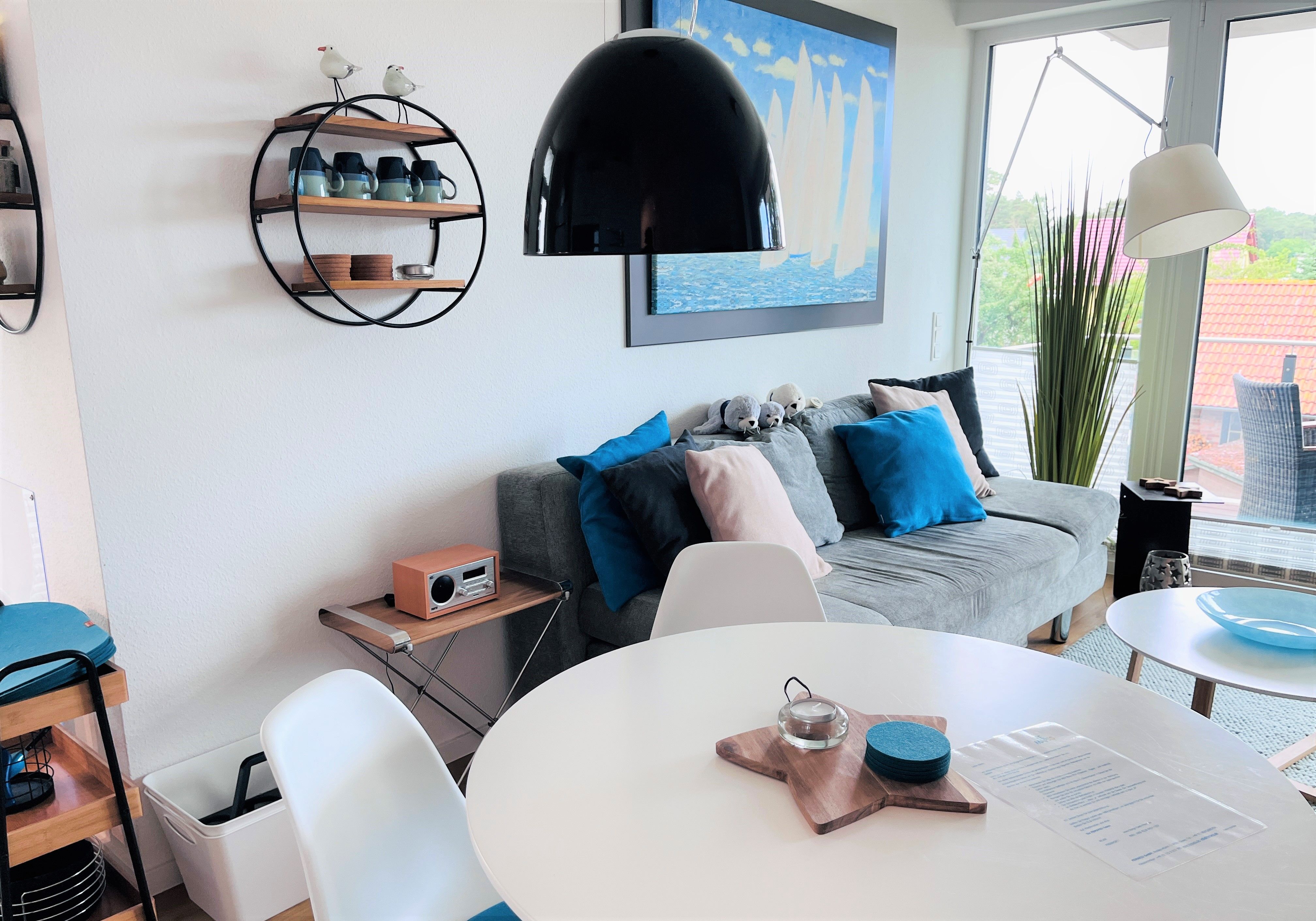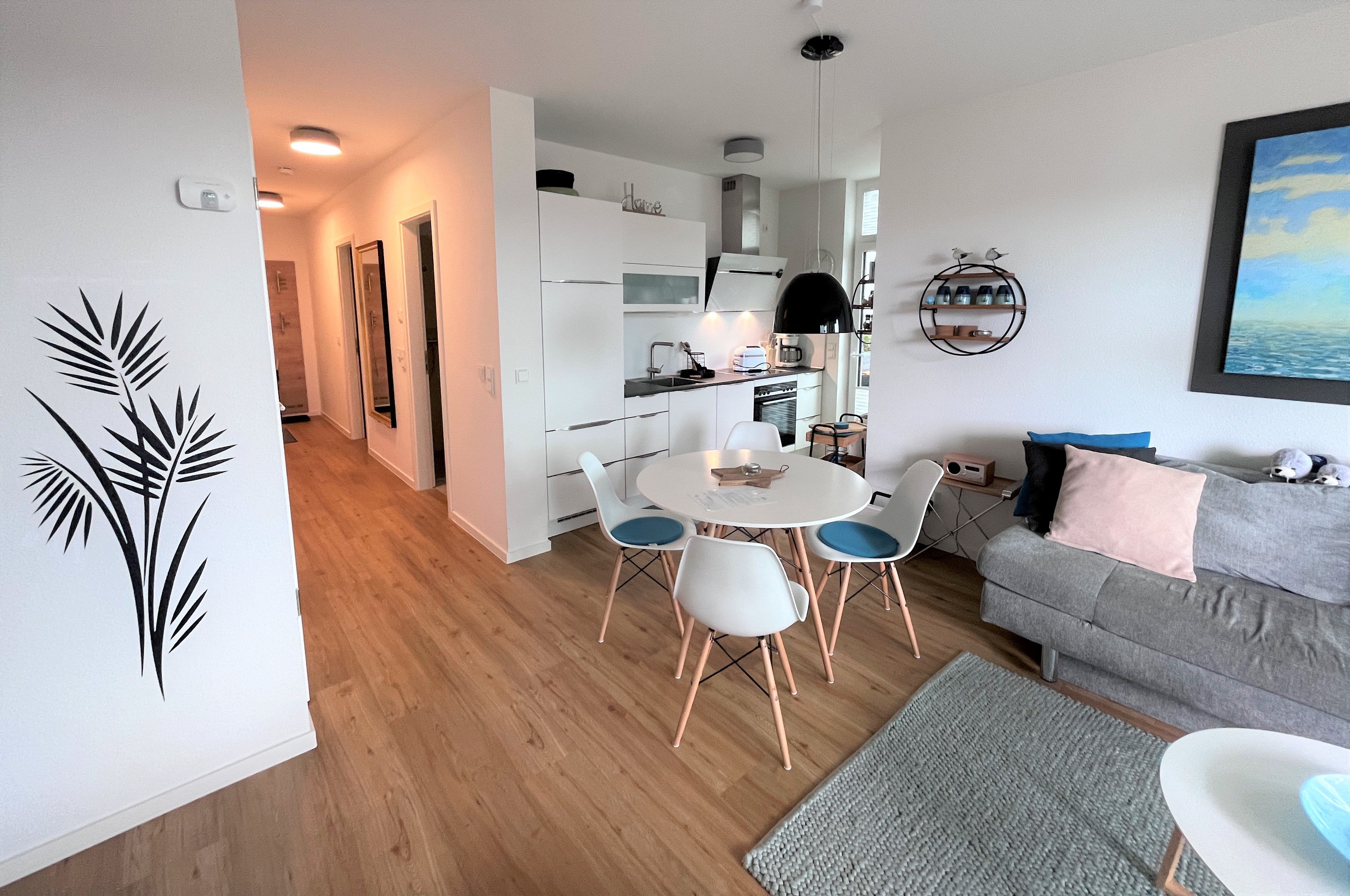 Die schöne und nigelnagelneue Ferienwohnung Kleine Robbe befindet sich im Bodden-Markt Glowe nur 2 min vom Strand entfernt.