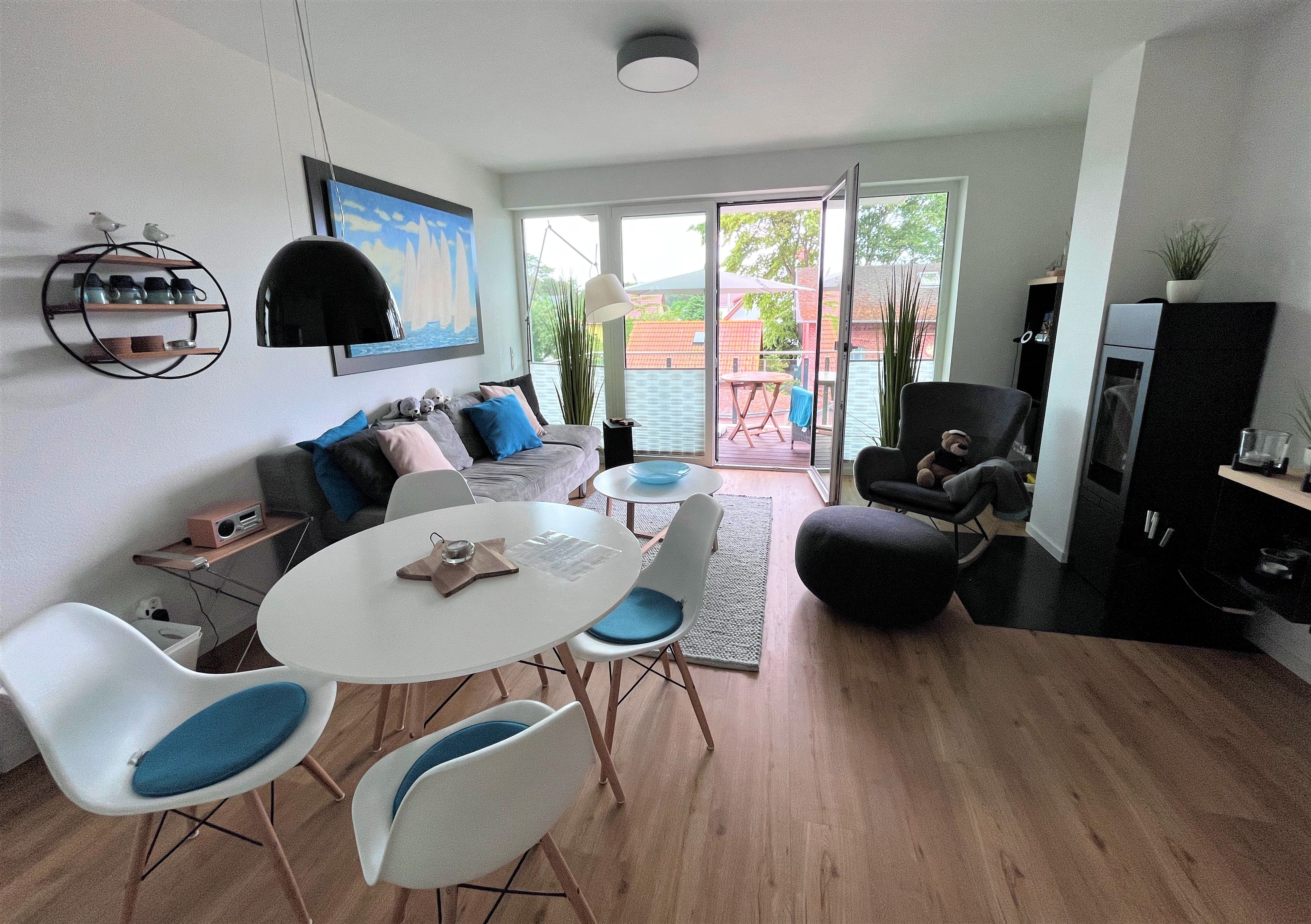 In der Kleinen Robbe finden max. 4 Gäste Platz. Im Schlafzimmer steht ein Boxspringbett (180x200cm), die Couch im Wohnbereich ist ausziehbar (180x200m). Beide Räume verfügen über TV-Geräte, leistungsfähiges WLAN ist vorhanden. An kühleren Tagen können Sie sich vor dem Kamin wärmen oder die Gemeinschaftssauna im Haus nutzen.