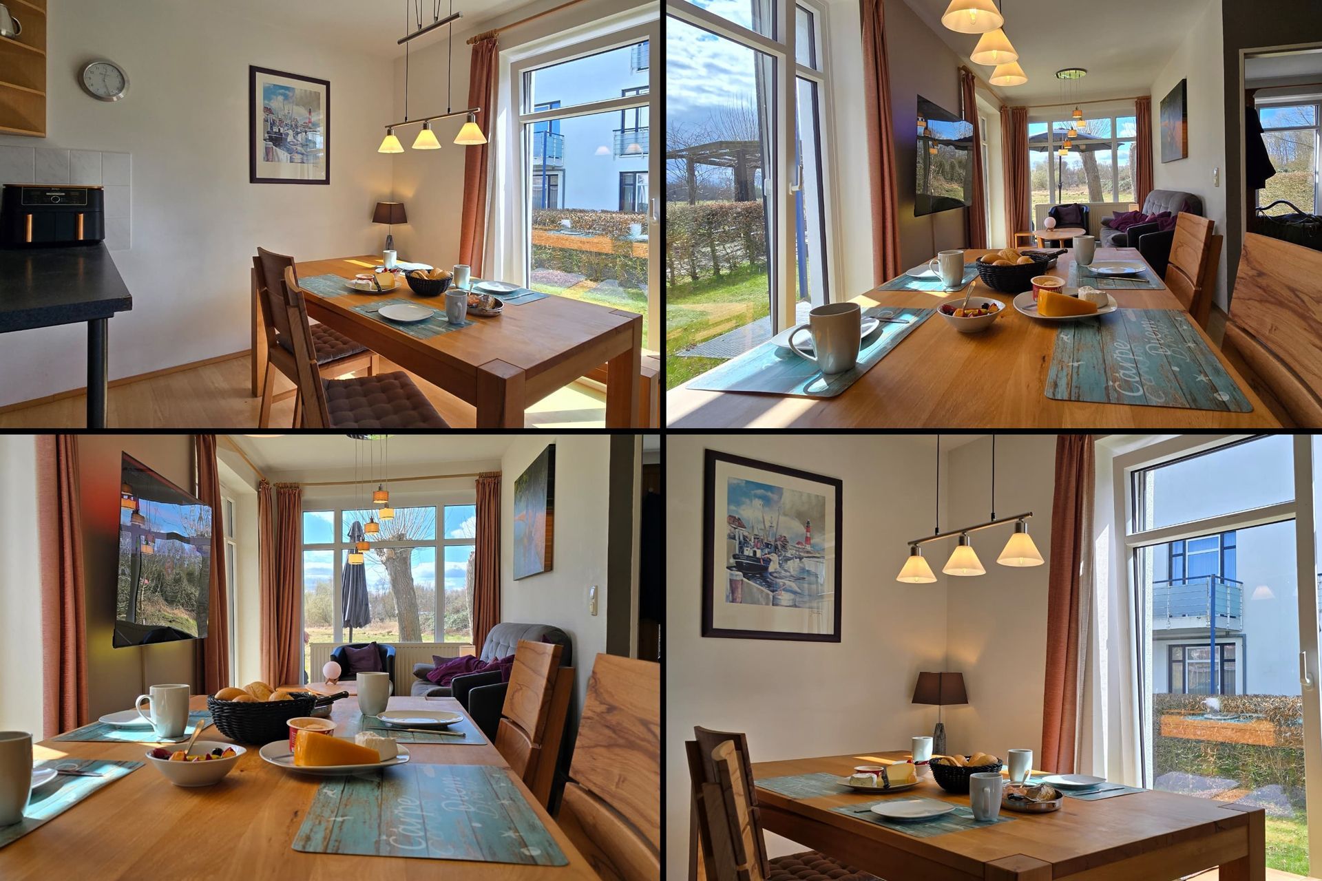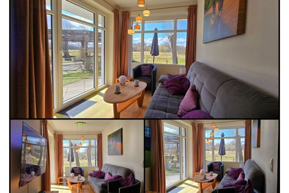 Das 2- Zimmer Ferienappartement Haffblick 19 mit sonniger Terrasse besitzt eine Wohnfläche von 62qm und ist mit maximal 6 Personen belegbar. Wir empfehlen eine Belegung mit bis zu 4 Personen. Es empfängt Sie ein behaglicher Wohn-Essbereich mit einem ausziehbaren Schlafsofa, welches zwei zusätzliche Schlafmöglichkeiten bietet. Zudem befinden sich weitere Sitzmöbel sowie ein großer Esstisch im Wohnbereich. Ein Fernseher mit Sky Empfang und eine Musikanlage sind ebenfalls vorhanden. WLAN ist kostenfrei. Die zugehörige Terrasse ist saisonal möbliert und verwöhnt mit einem schönen Blick über die Salzwiesen. Ihre Mahlzeiten können Sie bequem in der integrierten und voll ausgestatteten Küchenzeile zubereiten. Hier sind vorhanden ein Herd mit Backofen, Mikrowelle, Kühlschrank, Geschirrspüler, Kaffeemaschine, Wasserkocher und Toaster. Das geräumige Schlafzimmer ist mit einem Doppelbett und einem Etagenbett eingerichtet, so dass hier bis zu 4 Personen nächtigen können. Auch ein großer Kleiderschrank für Ihre Garderobe ist vorhanden. Zur Wohnung gehört ein Duschbad mit Waschtisch und WC. Es handelt sich um eine Nichtraucherwohnung, in der Haustiere gegen Gebühr gestattet sind. Für ihren PKW ist ein gebührenfreier Außenstellplatz reserviert. Sie verbringen Ihren Urlaub nah zum Zentrum des Ostseebades und erreichen in nur 200 Meter das Meer mit einem feinsandigen Badestrand. Auf Wunsch sind gegen Gebühr Wäschepakete mit Handtüchern und Bettwäschen zu buchbar.