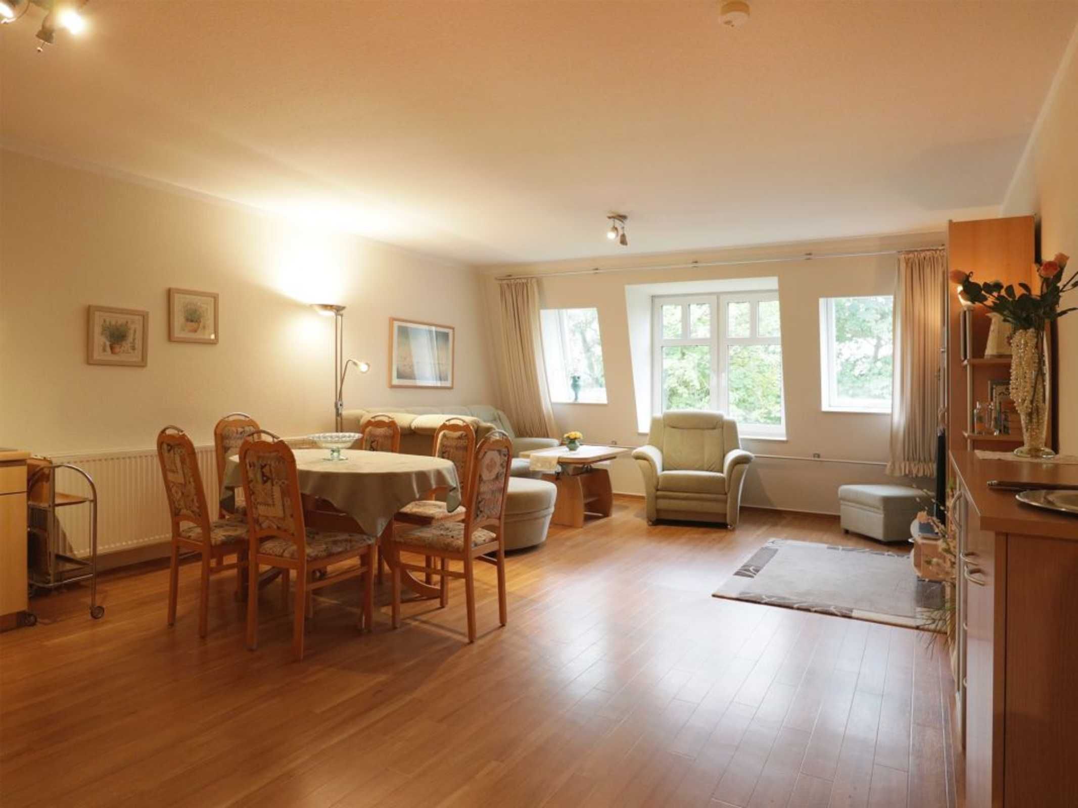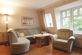 Das 2-Zimmer Ferienappartement ?Minervapark 28? befindet sich im 2. Obergeschoss. Mit einer Wohnfläche von 58qm bietet die gemütliche Wohnung viel Raum für 2 Personen. Im Wohn/-Essbereich empfängt Sie eine bequeme Sofagarnitur mit Sessel sowie Sideboard mit Regalen. Für gemeinsame Mahlzeiten ist ein Esstisch im Wohnbereich vorhanden und technische Unterhaltung bieten Fernseher, DVD-Player, Musikanlage sowie gebührenfreies WALN. Für die Eigenversorgung finden Sie in der offenen, integrierten Wohnküche alles, was für die Zubereitung von Urlaubsmahlzeiten benötigt wird: Ceranherd, Backofen, Mikrowelle, Dunstabzug, Kühlschrank mit integr. Gefrierfach, Geschirrspüler, Kaffeemaschine, Wasserkocher, Toaster usw. Im Schlafzimmer mit Doppelbett und Kleiderschrank mit viel Stauraum für die Urlaubsgarderobe, verbringen Sie angenehme Nächte. Zugehörig ist ein Duschbad mit Waschtisch, Föhn, WC. Ebenso sind Bügelbrett und Bügeleisen vorhanden. Ihren PKW parken Sie in der hauseigenen Tiefgarage und gelangen von dort bequem mit dem Fahrstuhl zu den Wohnungsetagen. Nichtraucher. Keine Haustiere. Kein Balkon oder Terrasse.