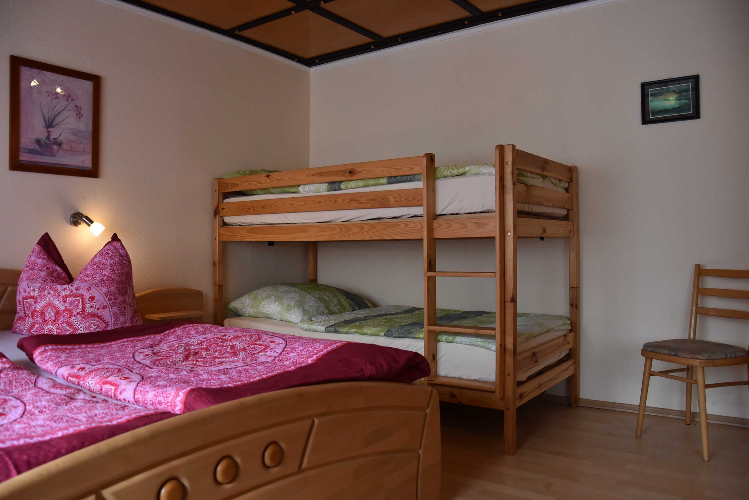 • Schlafzimmer mit  Doppelbett und Etagenbett