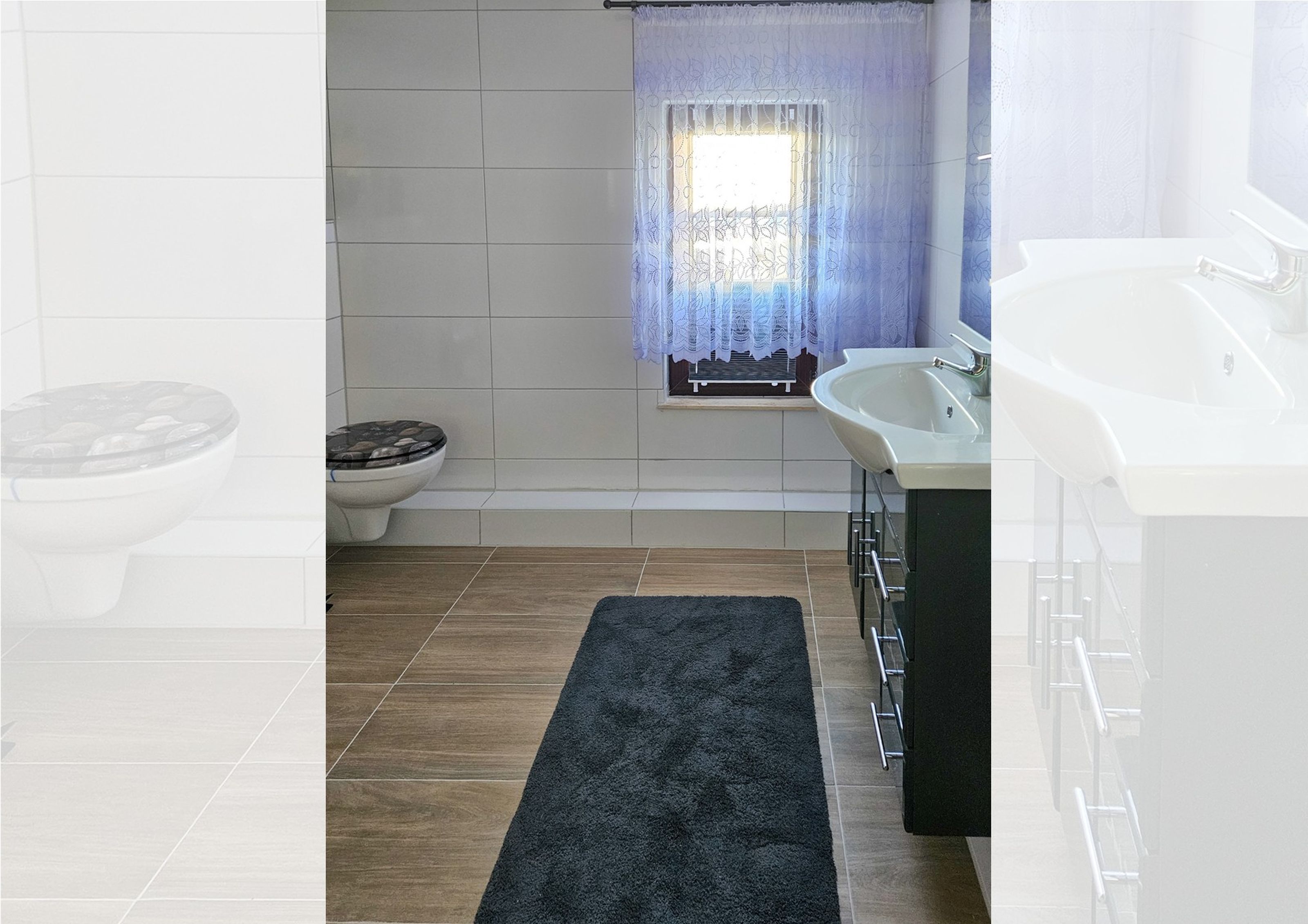 Das Schlafzimmer besteht aus Doppelbett und Etagenbett, dazu das Badezimmer mit Fenster, WC und Dusche. Der Schlafbereich kann mittels Rollos komplett abgedunkelt werden. Die Heizung ist vom 18. Mai bis 28.September 2024 ausgestellt, warmes Wasser ist vorhanden. Der Strom ist nicht im Preis enthalten und wird und je nach Verbrauch vor Ort bezahlt. Eine Kilowatt-Stunde beträgt 0,45 Euro-