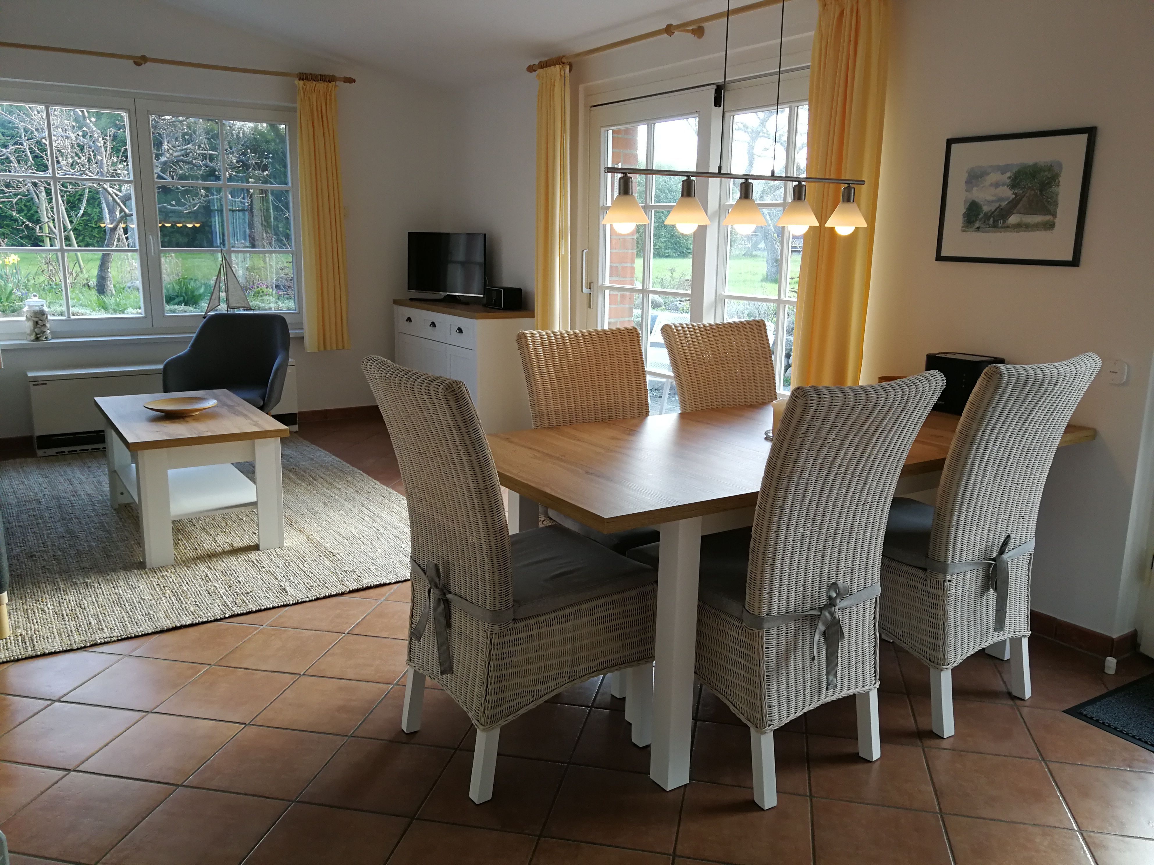 Auf der Terrasse befindet sich eine Sitzecke mit Platz für 4 Personen, sowie eine kleine Sitzecke mit Platz für 2 Personen an der Rückseite des Häuschens.