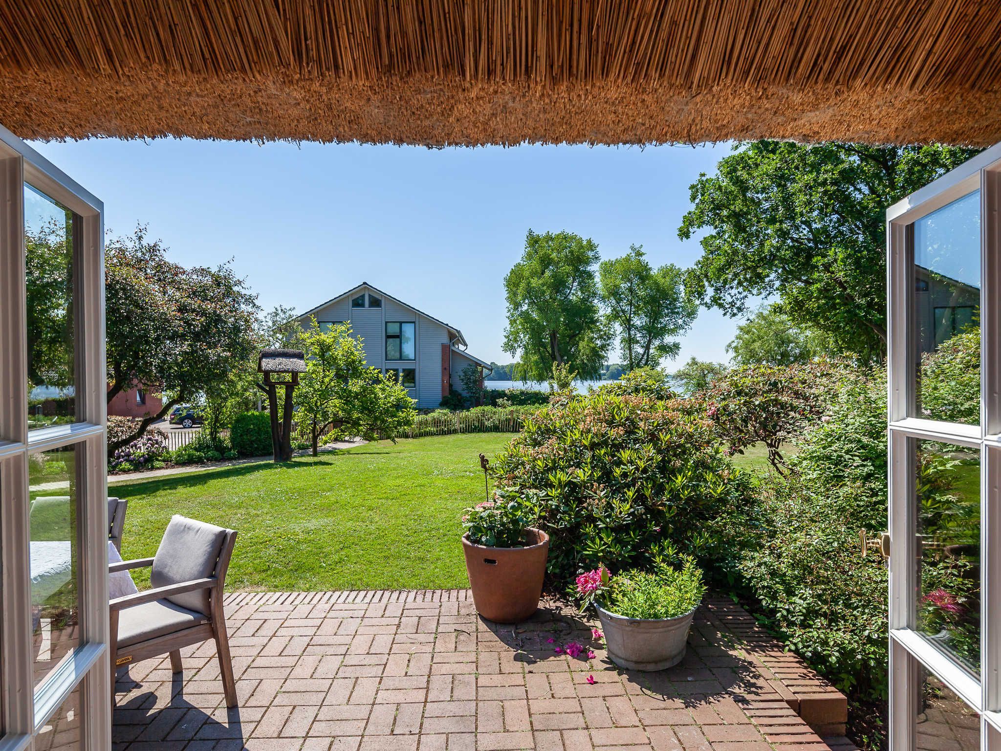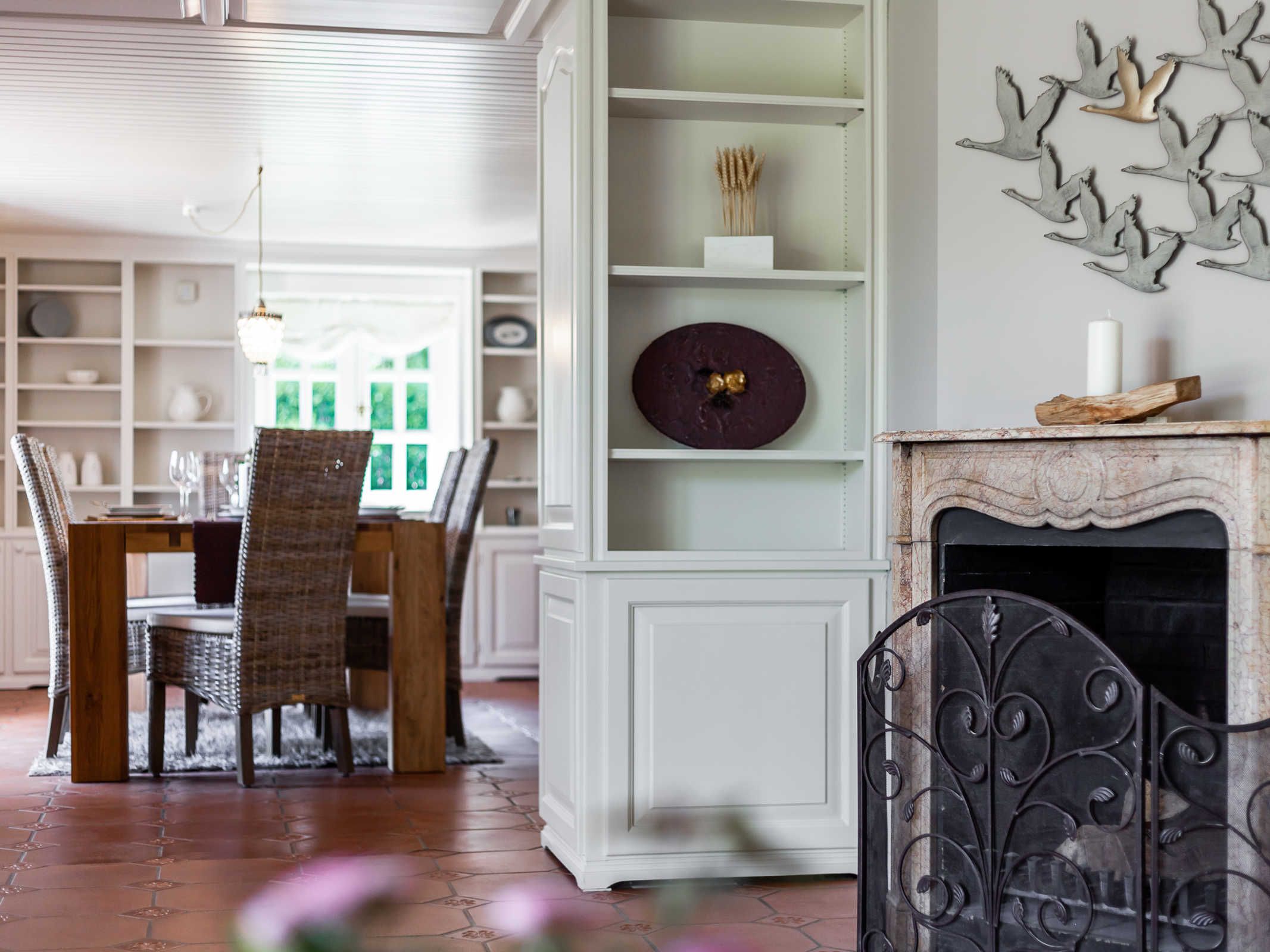 Das Ferienhaus heißt seine Gäste in einem großen weiten Flur mit angrenzendem Garderobenbereich willkommen. Der Wohnbereich mit Kamin und gemütlicher Sofaecke ermöglicht auch den direkten Zugang auf die möblierte Sonnenterrasse mit Blick auf den See. Das separate Esszimmer bietet am großen Esstisch ausreichend Platz für alle Gäste und lädt zu gemütlichen gemeinsamen Urlaubsessen ein.