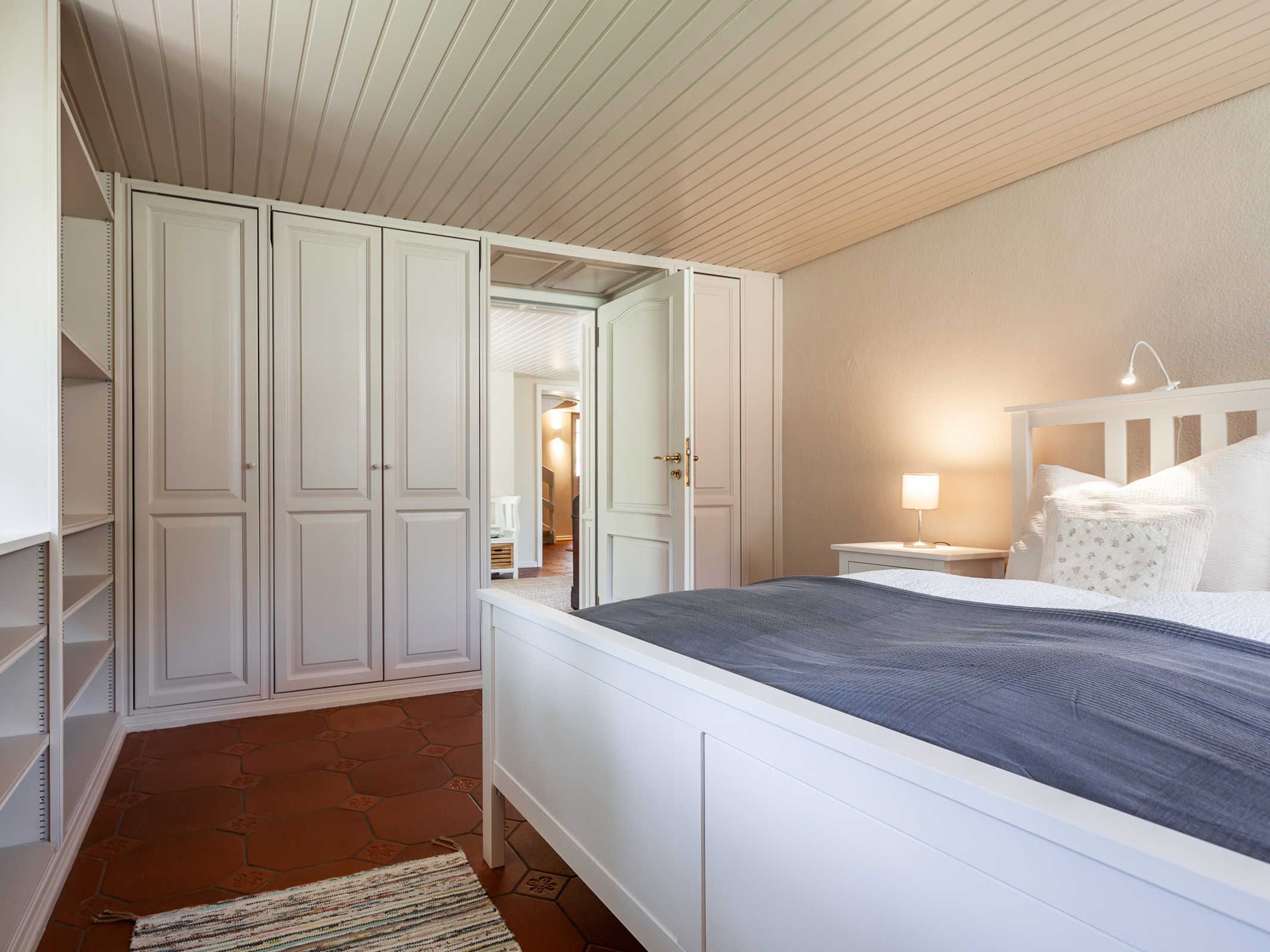 Im Erdgeschoss befinden sich zwei Schlafzimmer. Schlafzimmer 1 mit 2 Einzelbetten und Kleiderkommode, Schlafzimmer 2 mit Doppelbett und großem Kleiderschrank. Bad mit Dusche und WC.
