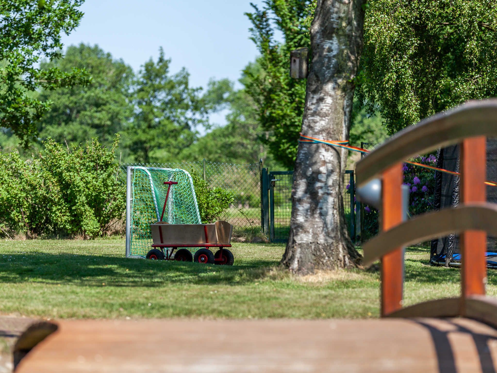 Für Kids und kleingebliebene Große gibt es im Garten einen kleinen Bolzplatz mit Tor, Tischtennisplatte, die Balancierstrecke, Bollerwagen und eine tolle Auswahl an Outdoorspielen sowie Bobycar und Co..