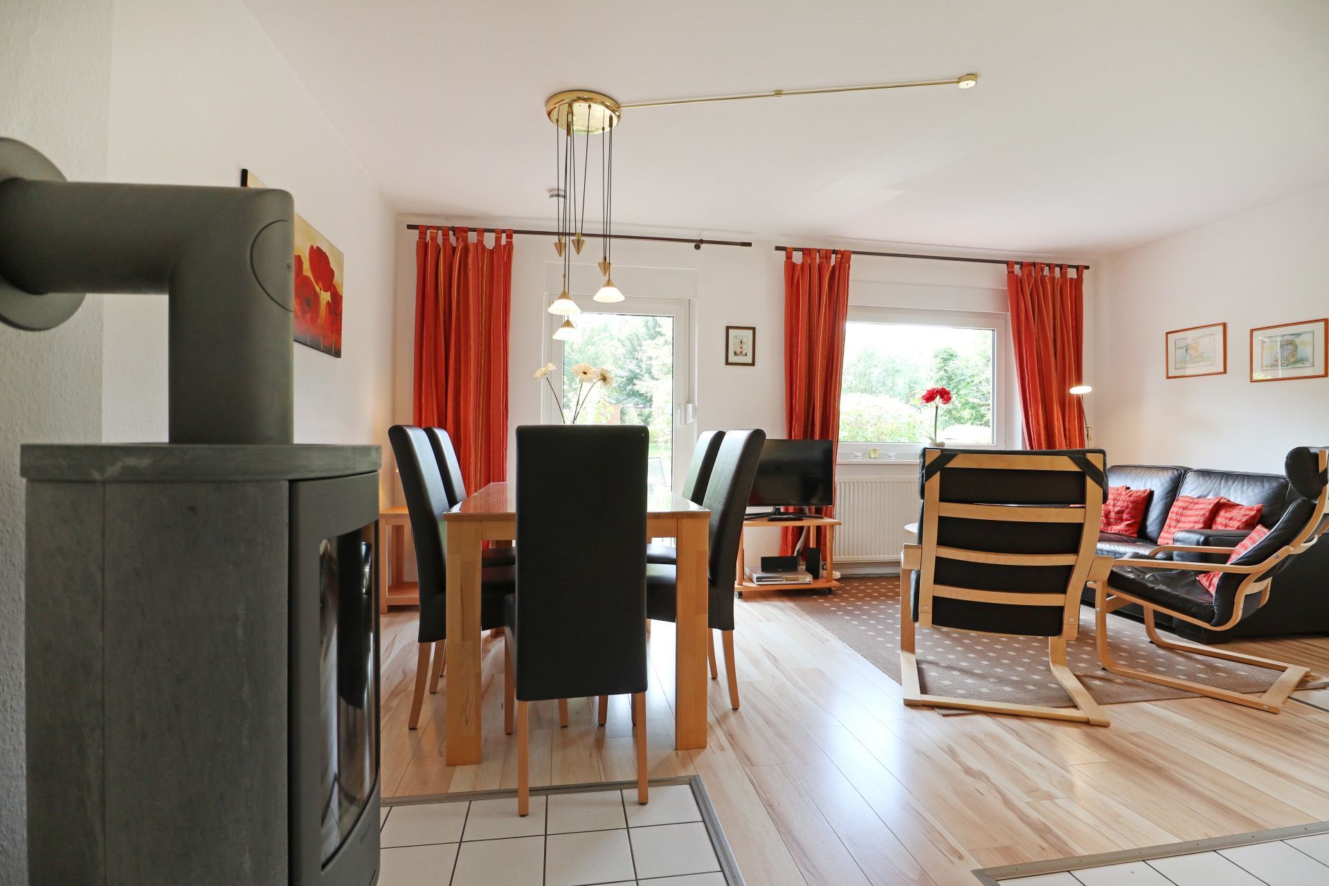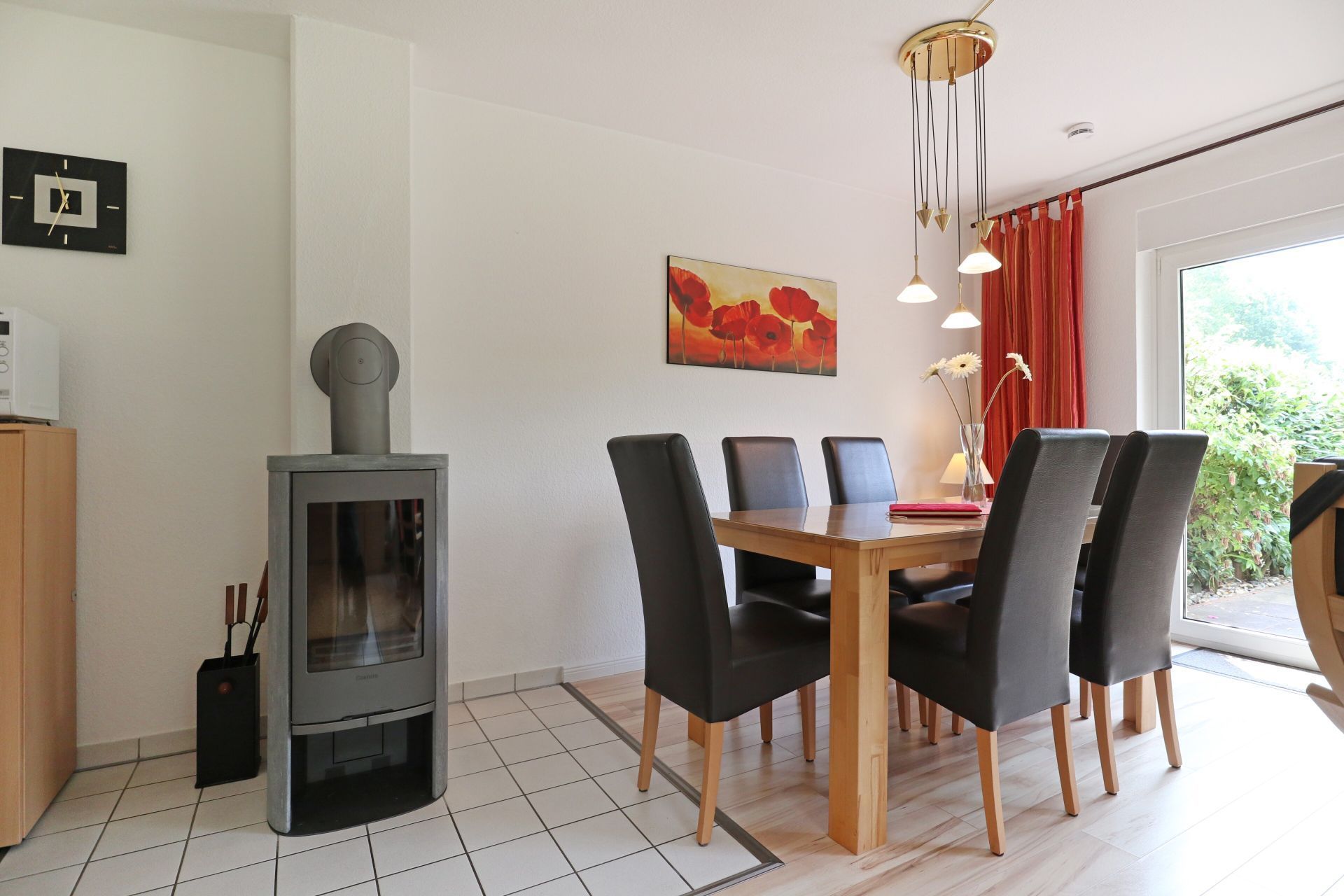 Es begrüßt Sie mit einer Wohnfläche von 62qm das behaglich eingerichtete 3-Zimmer-Ferienhaus im Urlauberdorf 52b. Eine Belegung ist mit bis zu fünf Personen möglich. In dem gemütlich eingerichteten Wohn-/Essbereich mit Sitzgarnitur, Esstisch, Kaminofen sowie Fernseher und Musikanlage ist auch eine offene Küchenzeile integriert. Hier befinden sich Herd, Backofen, Mikrowelle, Kühlschrank, Toaster, Wasserkocher, Kaffeemaschine usw. Somit bietet das schöne Ferienhaus auch ideale Bedingungen für Selbstversorger. Den Internetzugang über WLAN können Sie gebührenfrei nutzen. Zudem ermöglicht Ihnen im Erdgeschoss ein separates Schlafzimmer mit Doppelbett und Kleiderschrank entspannte Nächte. Auch ein Tageslicht Duschbad mit Waschmaschinen Nutzung befindet sich im Erdgeschoss des Hauses. Über eine Treppe gelangen Sie in das Obergeschoss, wo sich ein weiteres Schlafzimmer mit zwei Einzelbetten, Kleiderschrank, Fernseher und einer weiteren Schlafmöglichkeit befinden.