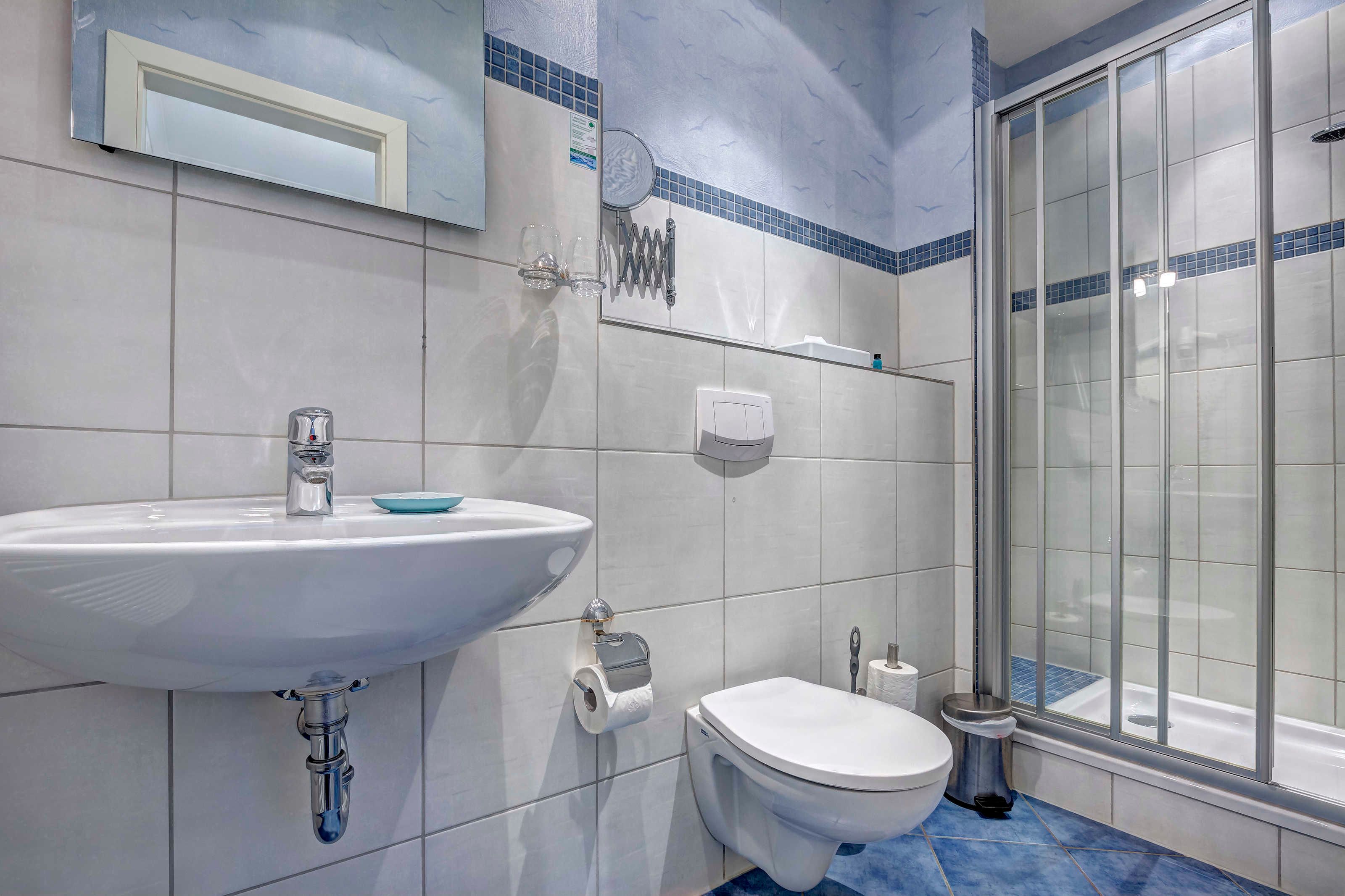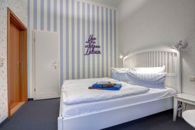 Schönes Einzelzimmer, welches regelmäßig auch von 2 Personen gebucht wird, Flachbild-TV, Tablet-PC, Sitzecke für 2 Personen, Kühlmöglichkeit, WLAN, Bettmaße: 160x200 cm, maritimes Bad mit Dusche, WC, Fön.