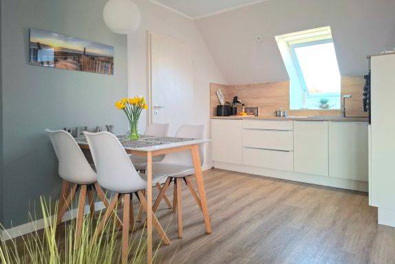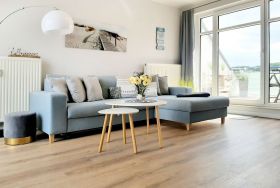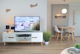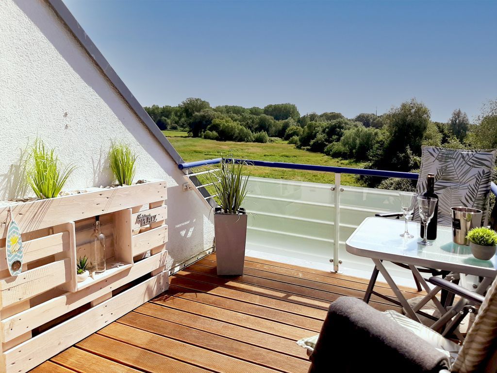 Es empfängt Sie in der 3. Etage des Hauses die hochwertig ausgestattete 2- Zimmer Ferienwohnung Haffblick 16. Das renovierte Appartement verwöhnt mit zwei saisonal möblierten Balkonen, von denen einer in Richtung Süd-/West den Blick über die Salzwiesen bietet. Die geräumige Wohnfläche beträgt 54qm und ist ideal für eine Belegung für maximal drei Personen. Komfortabel möbliert lädt der moderne Wohn-Essbereich zu einem erholsamen Urlaub ein. Ein bequemes Sofa, welches in ein Schlafsofa umgewandelt werden kann, ermöglicht Ihnen einen Schlafplatz für eine dritte Person. Zudem lädt ein Esstisch zu gemeinsamen Mahlzeiten ein, die Sie zuvor in der bestens ausgestatteten Wohnküche zubereitet haben. Moderne Unterhaltungselektronik mit Smart- TV, Sky-Empfang, DVD- Player und Musikanlage sowie kostenfreie WLAN-Nutzung sind selbstverständlich vorhanden. In dem geräumigen Schlafzimmer mit Doppelbett und Kleiderschrank verbringen Sie entspannte Nächte. Zugehörig ist ein innenliegendes Duschbad mit Waschtisch und WC. Für Ihren PKW ist direkt an der Residenz Haffblick ein gebührenfreier Außenstellplatz reserviert. Bitte beachten Sie, dass es sich eine Wohneinheit handelt, in der Haustiere nicht gestattet sind. Rauchen ist nicht erlaubt. Allen Hausgästen stehen Waschmaschine und Wäschetrockner gegen Gebühr zur Verfügung. Für mitgebrachte Fahrräder gibt es abschließbare Unterstellmöglichkeiten. Sie wohnen nur wenige Gehminuten zum Naturschutzgebiet Tarnewitzer Urwald und erreichen in Kürze das Ortszentrum von Boltenhagen. Auf Wunsch können Sie gegen Gebühr Bettwäsche sowie Handtücher hinzu buchen.