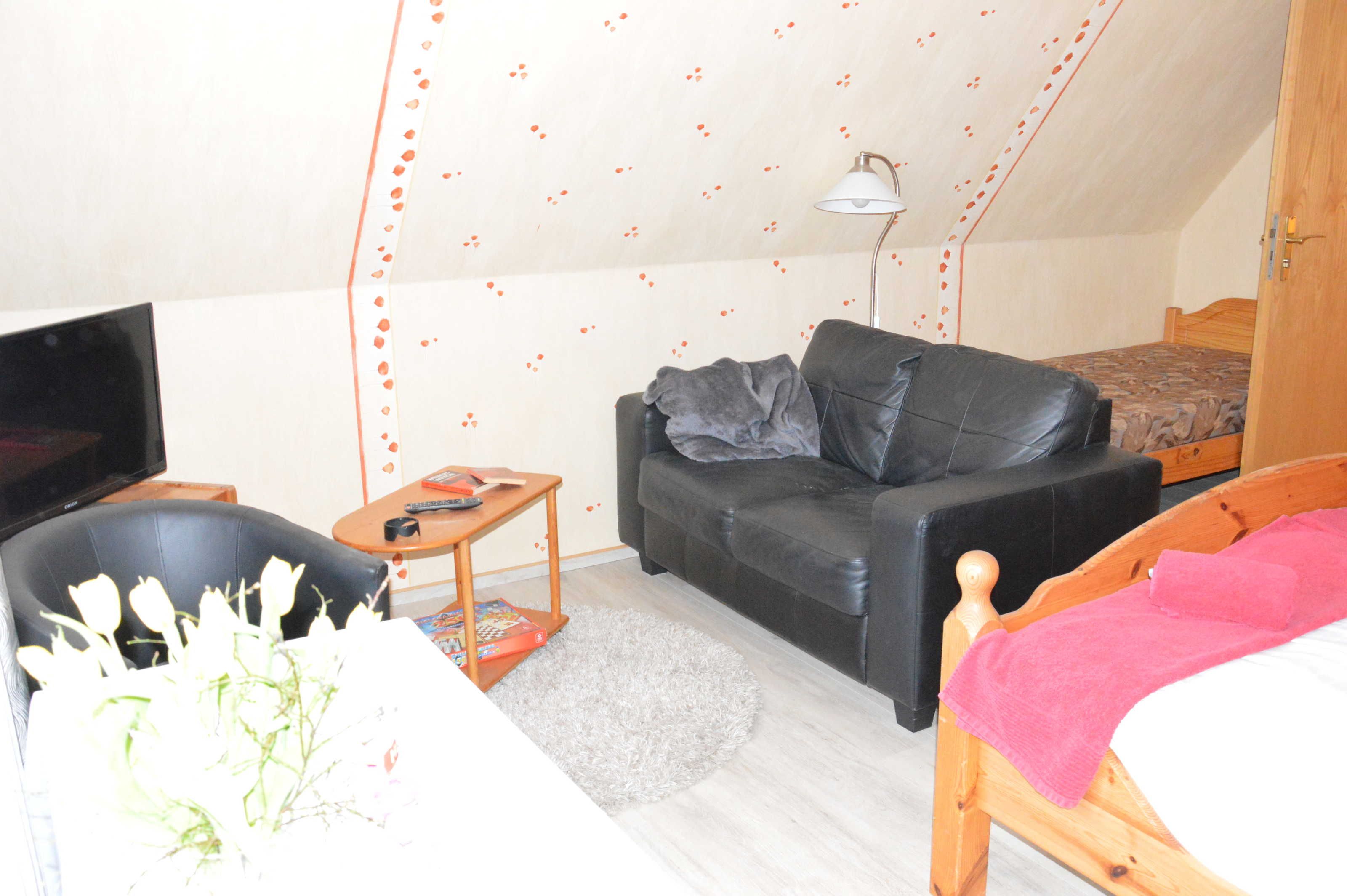 Das helle ein-Zimmerappartement liegt im ersten Stock und bietet Ihnen einen Flachbild-TV, eine Sitzecke mit einem Tisch und zwei Stühlen, eine separate Küche und ein eigenes Badezimmer.
