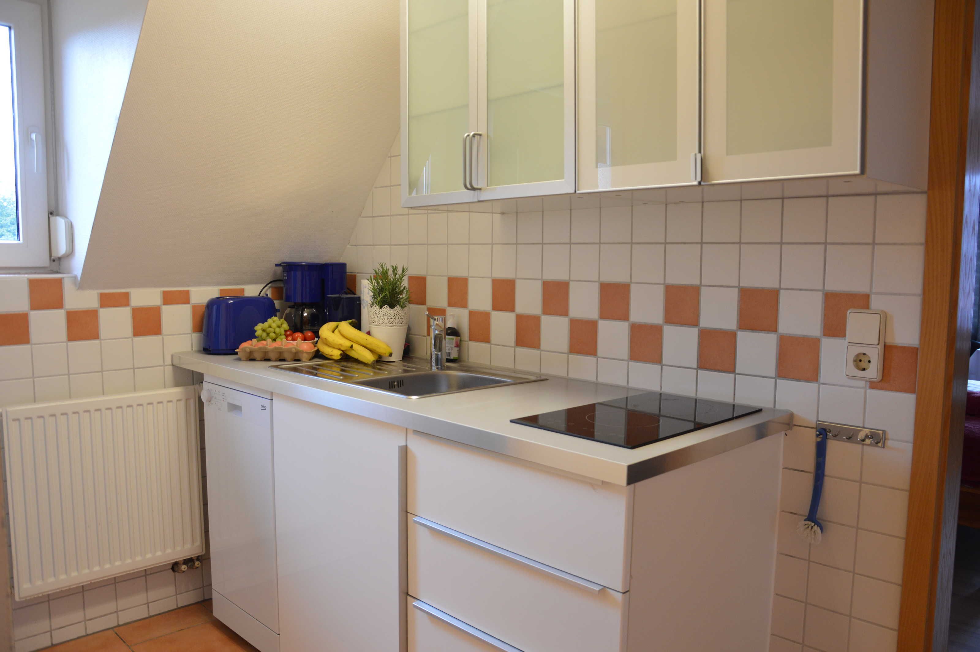 Küchenutensilien, Wasserkocher, Spülmaschine, Toaster, Filterkaffeemaschine, Kühlschrank, Mikrowelle, Herd