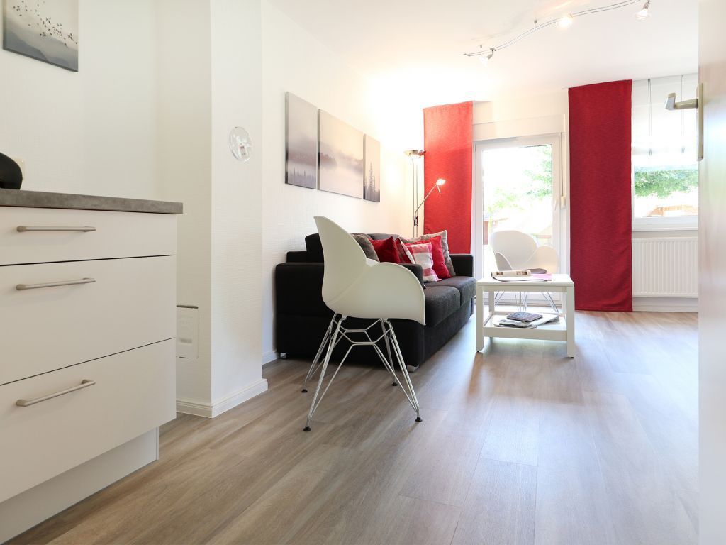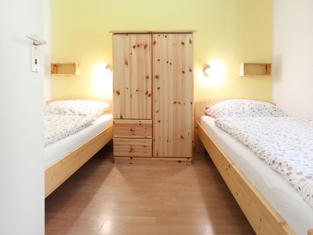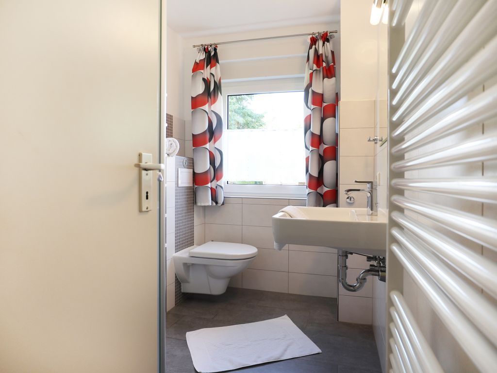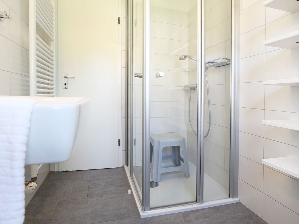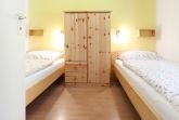 Auf der Wohnebene ist auch ein modernes Tageslicht Badezimmer mit tiefem Duscheinstieg, Waschtisch, Handtuchheizung und WC vorhanden. Über eine Treppe gelangen Sie in das obere Geschoss des Feriendomizils, wo sich ein weiteres Schlafzimmer mit Doppelbett und Kleiderschrank befindet. Idealer Weise besitzt diese Etage ein Gäste-WC mit gebührenfreier Waschmaschinen Nutzung. Für Familien mit kleinen Kindern wurden bei der Ausstattung ein Kinderhochstuhl und ein Kinderreisebett berücksichtigt.