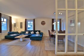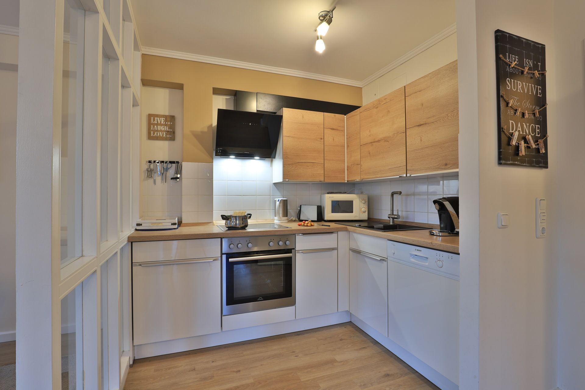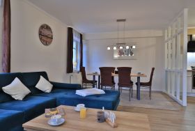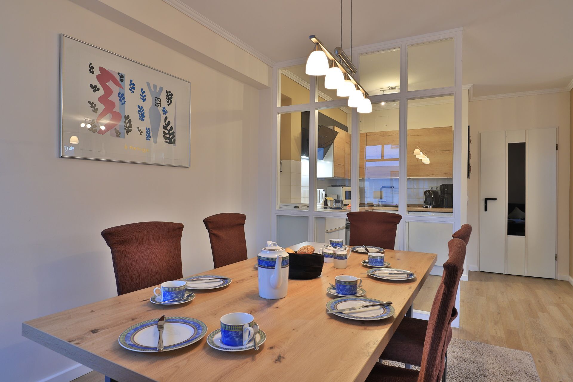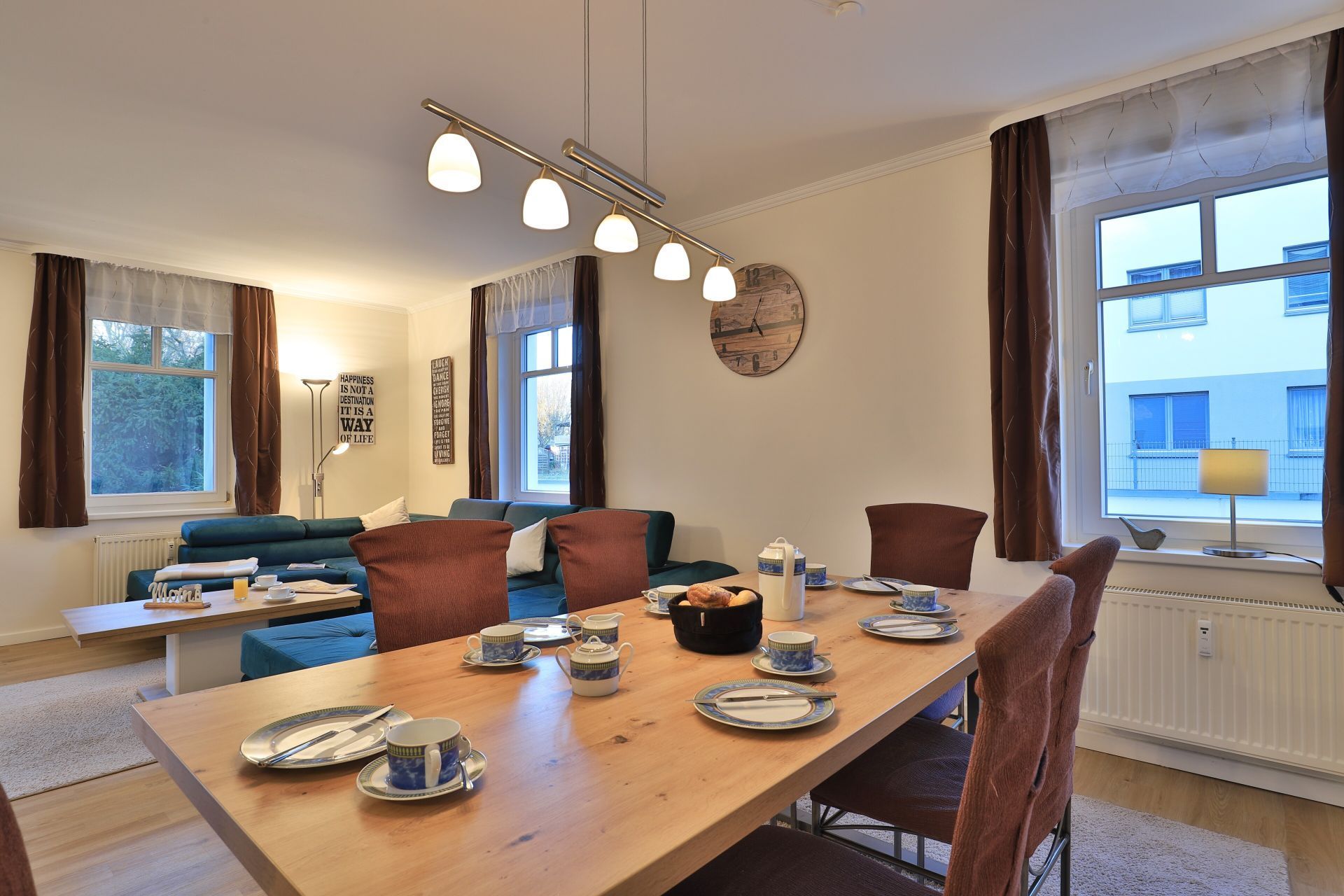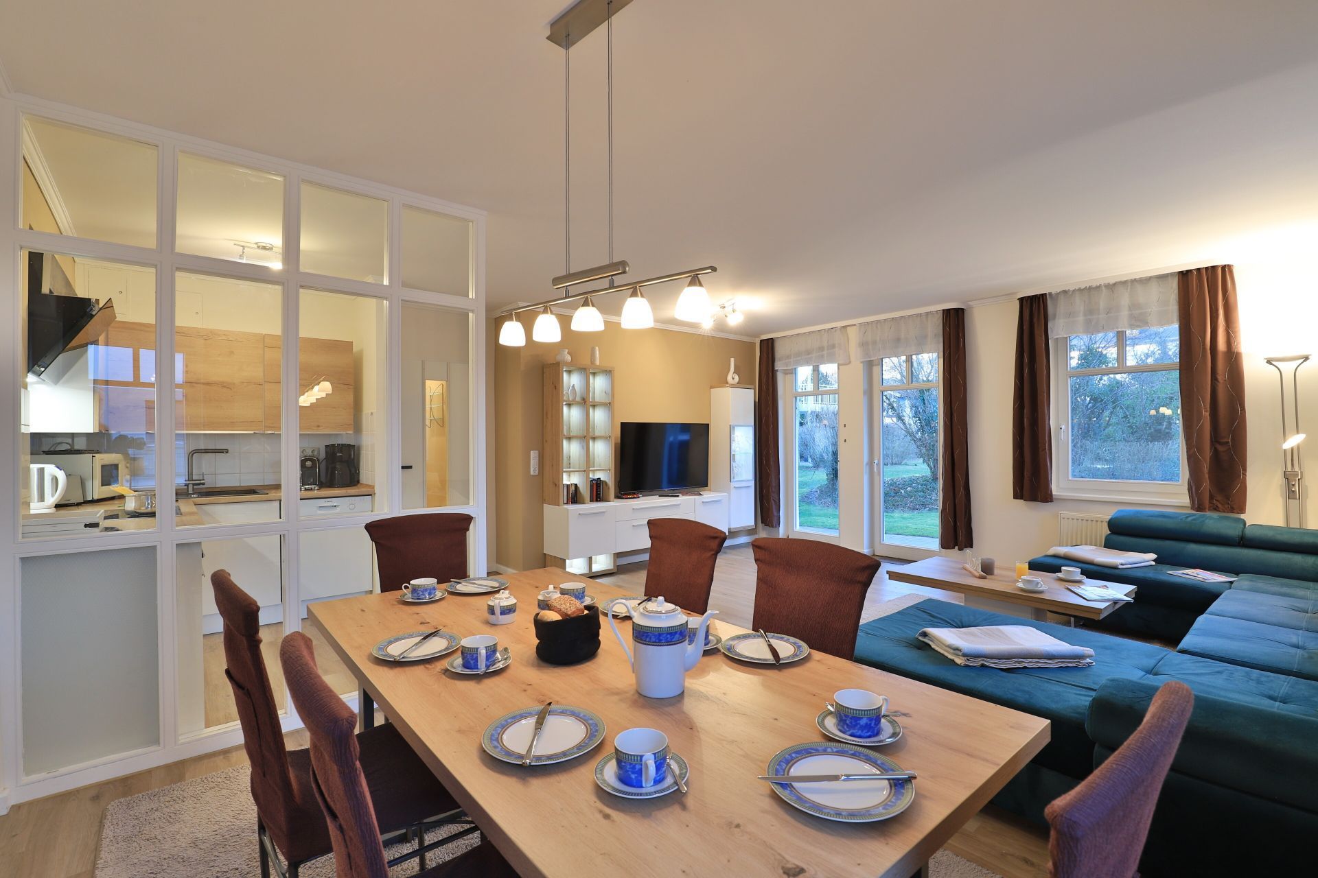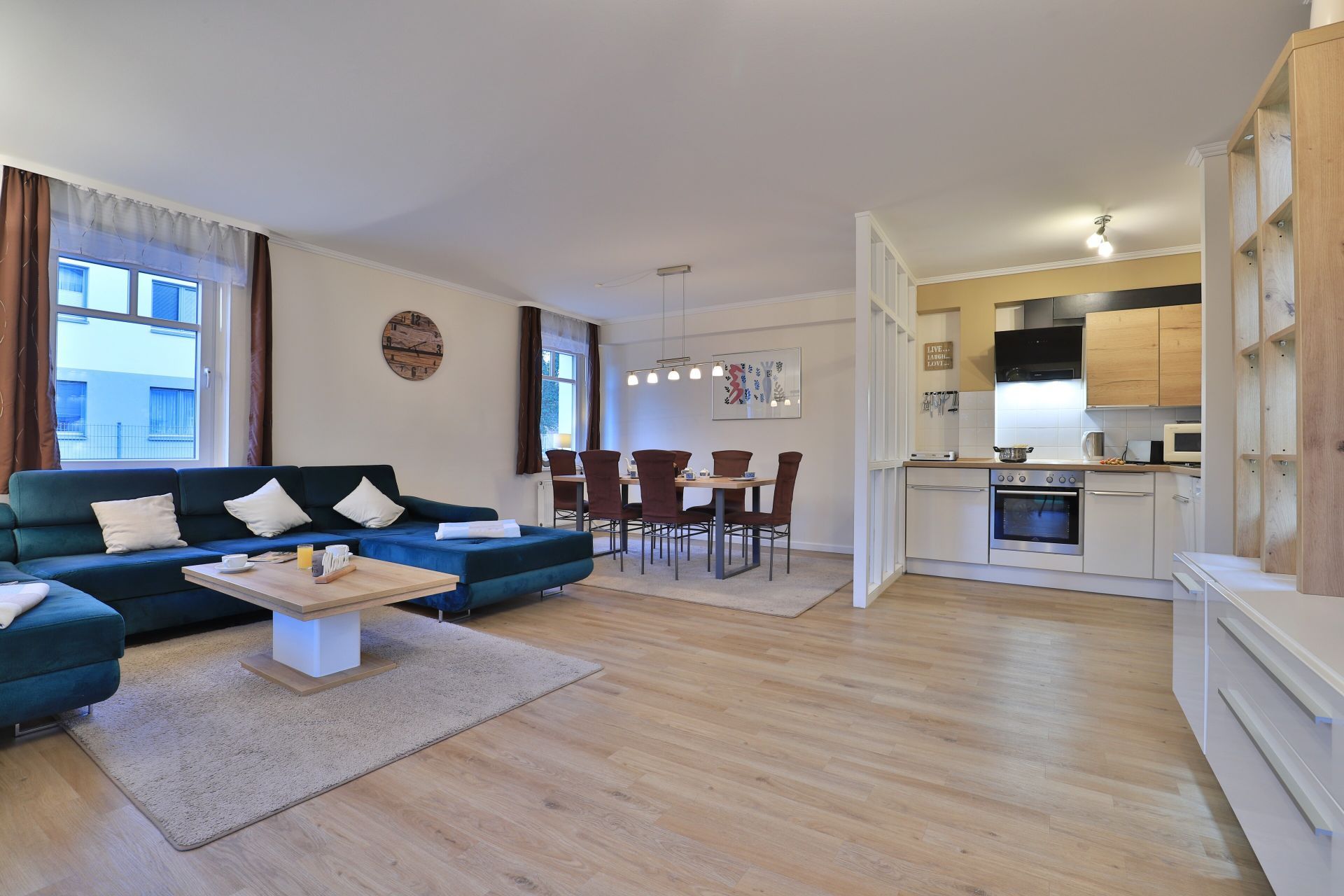Die 2-Zimmer-Wohnung im Erdgeschoss bietet eine geschützte Terrasse mit Blick auf das begrünte Innengelände und eine großzügige Wohnfläche von 64 Quadratmetern, die Platz für bis zu 4 Personen bietet. Der elegante Wohn- und Essbereich verfügt über ein Sofa, das sich in ein Schlafsofa verwandeln lässt, sowie einen Esstisch und einen Fernseher. WLAN ist kostenfrei verfügbar. Die separate, voll ausgestattete Küche ermöglicht es Ihnen, Ihre Mahlzeiten selbst zuzubereiten und bietet einen Ceranherd mit Backofen, eine Mikrowelle, einen Kühlschrank, einen Geschirrspüler sowie eine Kaffeemaschine, einen Toaster und einen Wasserkocher. Im Sommer können Sie die saisonal möblierte Terrasse genießen. Das Schlafzimmer ist mit einem Doppelbett und einem Kleiderschrank ausgestattet. Für Familien stehen ein Kinderhochstuhl und ein Kinderreisebett zur Verfügung, wobei eigenes Bettzeug für Kleinkinder mitgebracht werden muss. Die Wohnung verfügt zudem über ein Duschbad mit WC, Fön ist vorhanden. Bügeleisen, Bügelbrett befinden sich in der Wohnung. Eine Waschmaschine kann im Haus genutzt werden, und Ihr Fahrzeug parken Sie auf einem reservierten Stellplatz in der Tiefgarage. Bitte beachten Sie, dass Haustiere nicht erlaubt sind und es sich um eine Nichtraucherwohnung handelt. Die zentrale Lage, nur 70 Meter vom feinsandigen Strand entfernt, macht die Wohnung ideal für einen entspannenden Urlaub in Boltenhagen.