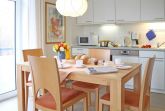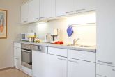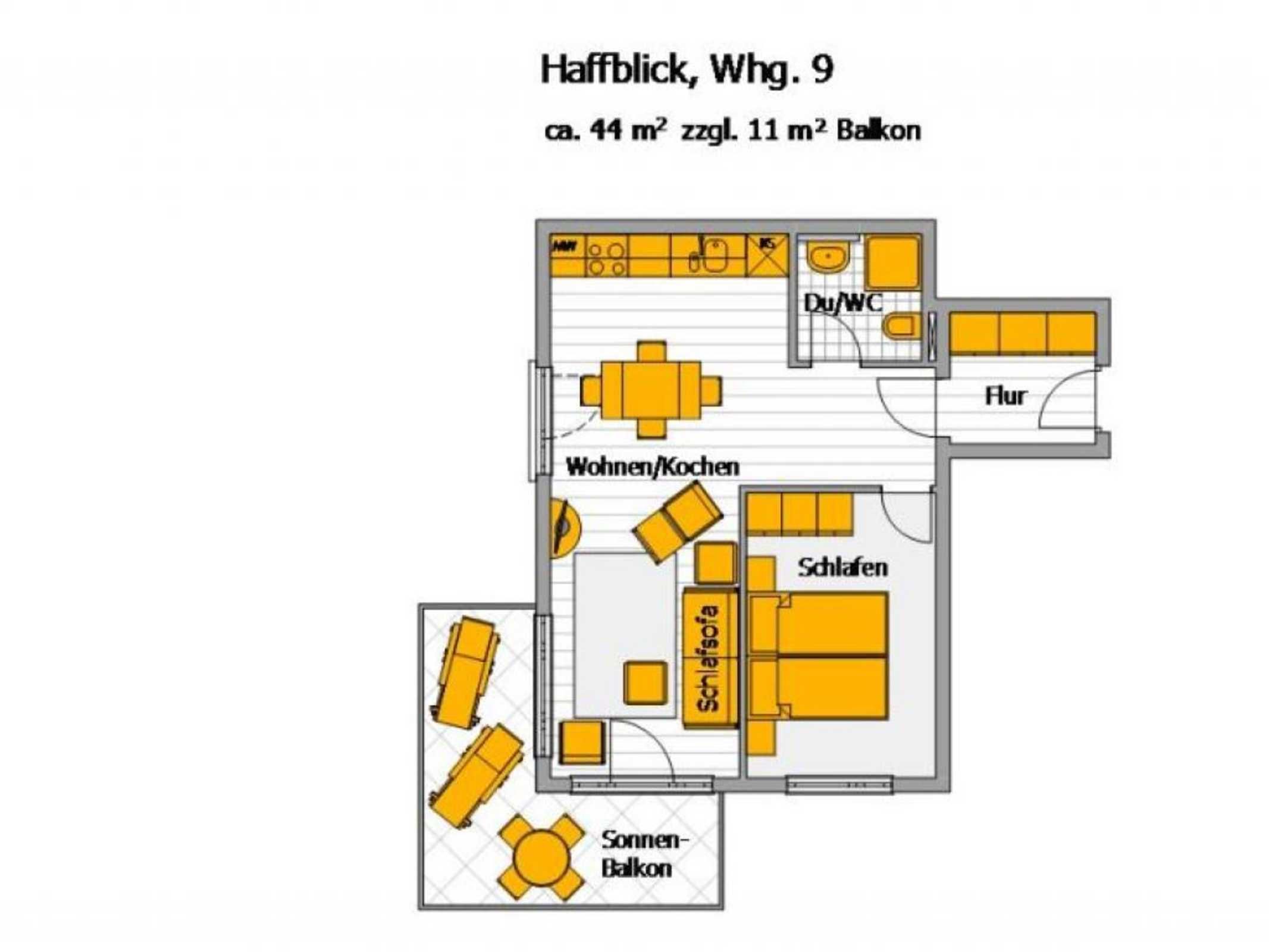 Die Residenz Haffblick ist eine zentral, dennoch ruhig gelegene Appartementanlage bestehend aus vier Häusern mit jeweils 17 Wohneinheiten. In nur 200 Meter befindet sich der Ostseestrand. Das Ortszentrum ist in wenigen Schritten erreicht. Die beliebte Ferienanlage liegt gleichzeitig nah zum Naturschutzgebiet an den Haffwiesen auch nah dem Tarnewitzer Urwald. Ganzjährig bietet der hauseigene Wellnessbereich Sauna sowie Infrarot-Wärmekabinen gegen Gebühr. Ein Fitnessraum steht kostenfrei zur Verfügung. Ebenfalls kostenlos sind WLAN sowie Sky Programme Fußball Bundesliga -Sport- Cinema- Disney. Jeder der Wohneinheiten ist individuell ausgestattet, komfortabel möbliert und verfügt über Terrasse oder Balkon, teilweise zwei Balkone. Zudem gibt es auf dem Grundstück Pavillons mit Blick auf die Pferdewiesen. In jedem der Häuser befinden sich Waschmaschine und Wäschetrockner mit Münzeinwurf. Zugehörig ist ein PKW -Außenstellplatz pro Ferienwohnung. Teilweise sind Haustiere gestattet. Gäste der Residenz Haffblick verbringen einen entspannten Aufenthalt und genießen gleichzeitig die nahe Lage zu vielen Annehmlichkeiten des Ostseebades. Restaurants sowie Cafe´s und Geschäfte sind in Kürze erreicht. Die hier beschriebene, mit 3 Sternen klassifizierte 2-Zimmer-Ferienwohnung Haffblick 9 mit Balkon, liegt im 1. Obergeschoss und bietet eine Wohnfläche von 50qm. Mit maximal 2 Personen ist eine Belegung möglich. Die schick möblierte Wohnung mit Wohn-/Essbereich und integrierter Wohnküche verspricht einen erholsamen Urlaub. Ein separates Schlafzimmer mit Doppelbett und Kleiderschrank ist vorhanden. Ein modernes Duschbad gehört zur Ausstattung. Es handelt sich um ein für Allergiker geeignetes Nichtraucher Appartement. Haustiere sind nicht gestattet.
