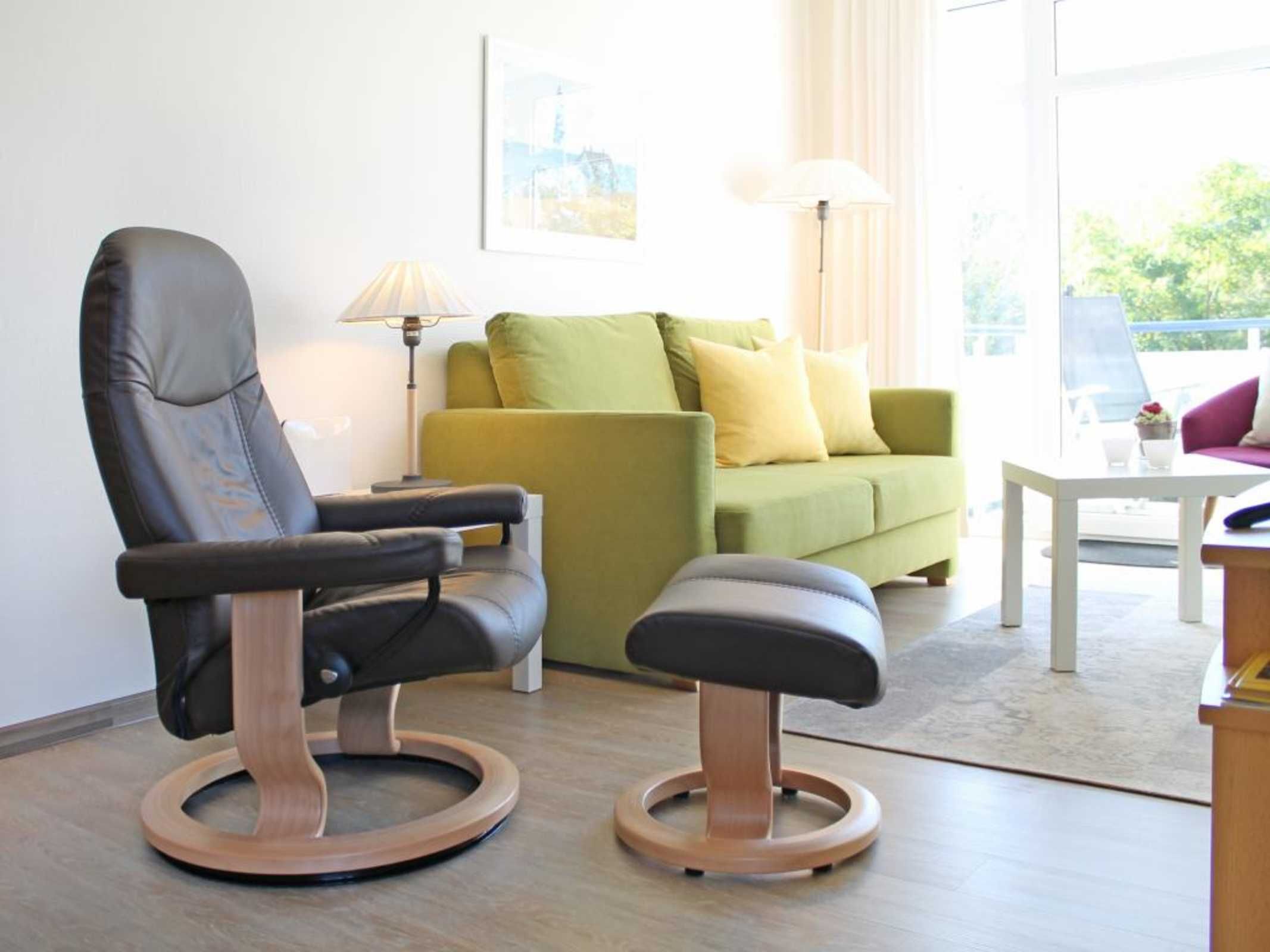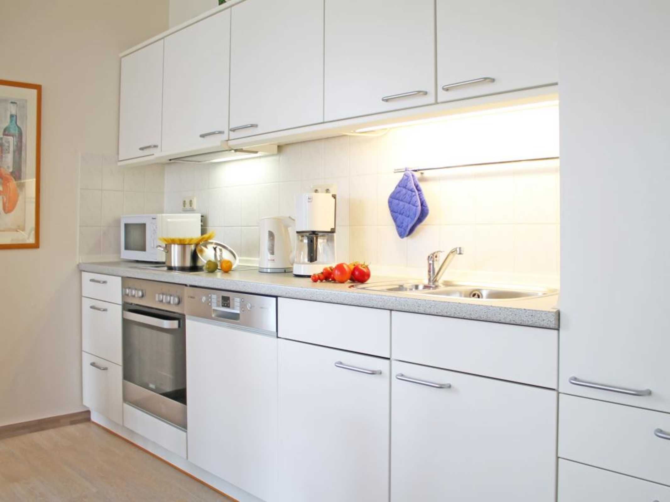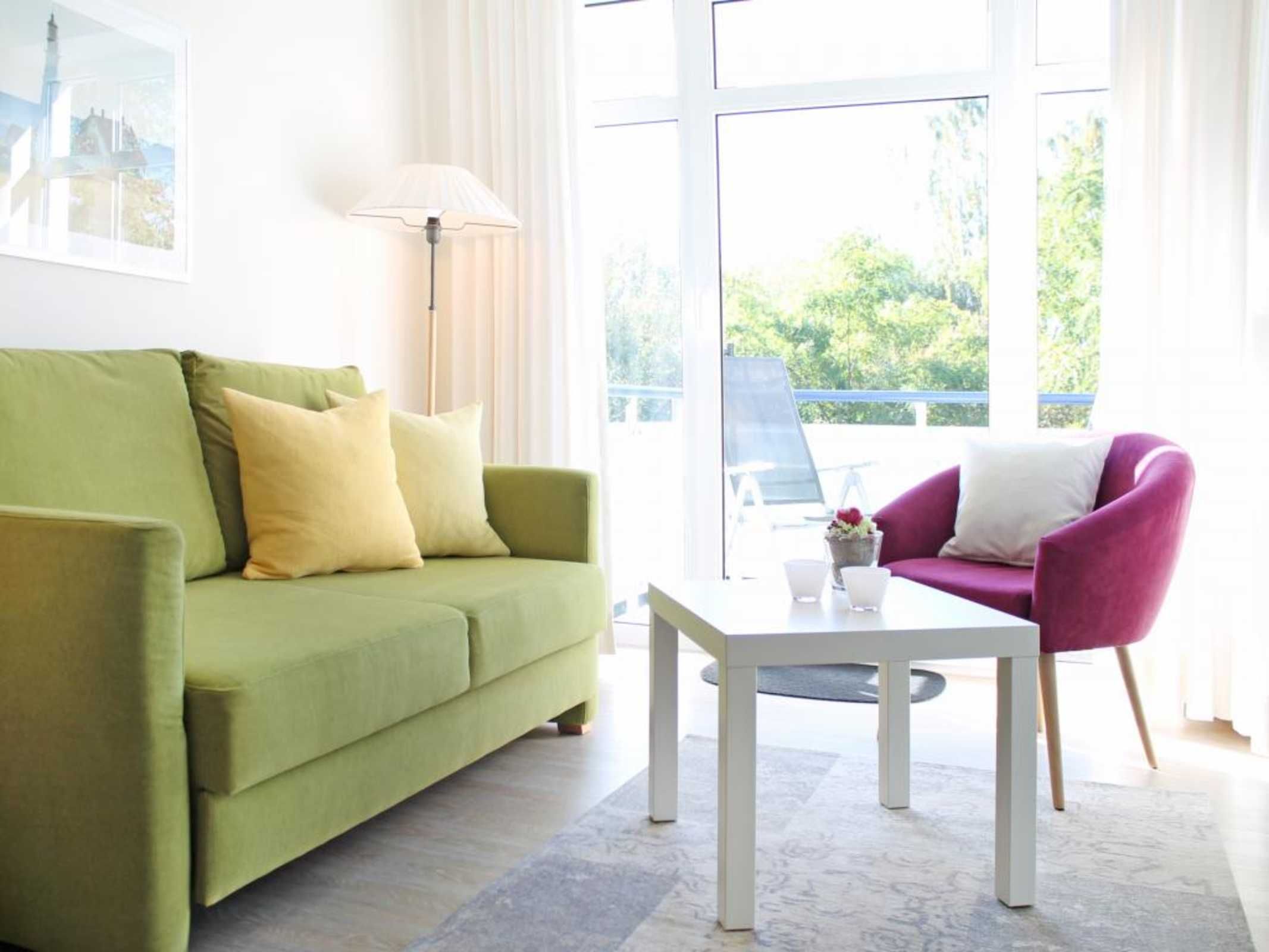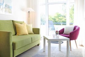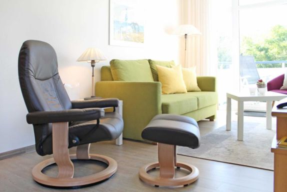 Die 2-Zimmer-Ferienwohnung mit Balkon, bietet auch Allergikern einen entspannten Aufenthalt und befindet sich in der 1. Etage des Hauses. Es empfängt Sie ein modernes Appartement mit einer Wohnfläche von 50qm, in dem Sie mit 2 Personen Ihren Ostseeurlaub verbringen können. Der saisonal möblierte Balkon ist umlaufend und lädt zum Sonnenbad ein. Im Wohn-/Essbereich mit bequemer Sitzgarnitur und Relax-Sessel, befindet sich auch eine offene Wohnküchenzeile, in der Herd, Backofen, Mikrowelle, Spülmaschine ebenso vorhanden sind, wie Toaster, Wasserkocher und Kaffeemaschine usw. Für technische Unterhaltung sorgen ein Fernseher mit SKY Progarammen, DVD-Player, Musikanlage sowie ein gebührenfreier Internetzugang über WLAN. Ihre Nächte verbringen Sie in einem separaten Schlafzimmer mit Doppelbett und Kleiderschrank. Die Wohneinheit besitzt ein innenliegendes Duschbad. Allen Hausgästen stehen Waschmaschine und Wäschetrockner gegen Münzeinwurf zur Verfügung. Für Ihren PKW ist ein kostenfreier Außenstellplatz am Haus reserviert. Da das Ferienappartement für Allergiker geeignet ist, darf in der Wohnung nicht geraucht werden. Auch Haustiere sind nicht erlaubt. Optional sind Bettwäsche sowie Handtücher gegen Gebühr zu buchbar. Für das beziehen der Betten wird eine gesonderte Gebühr erhoben.