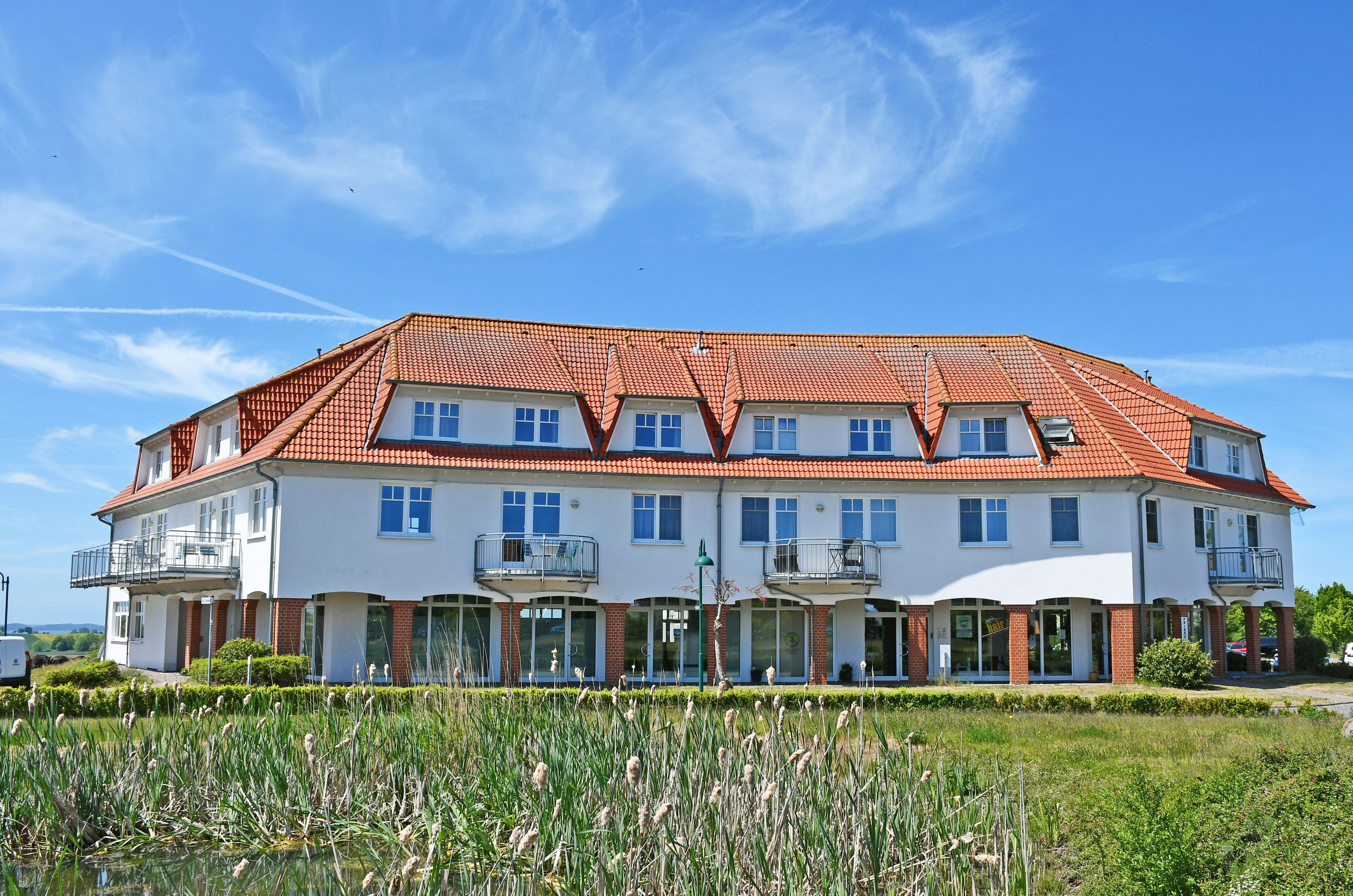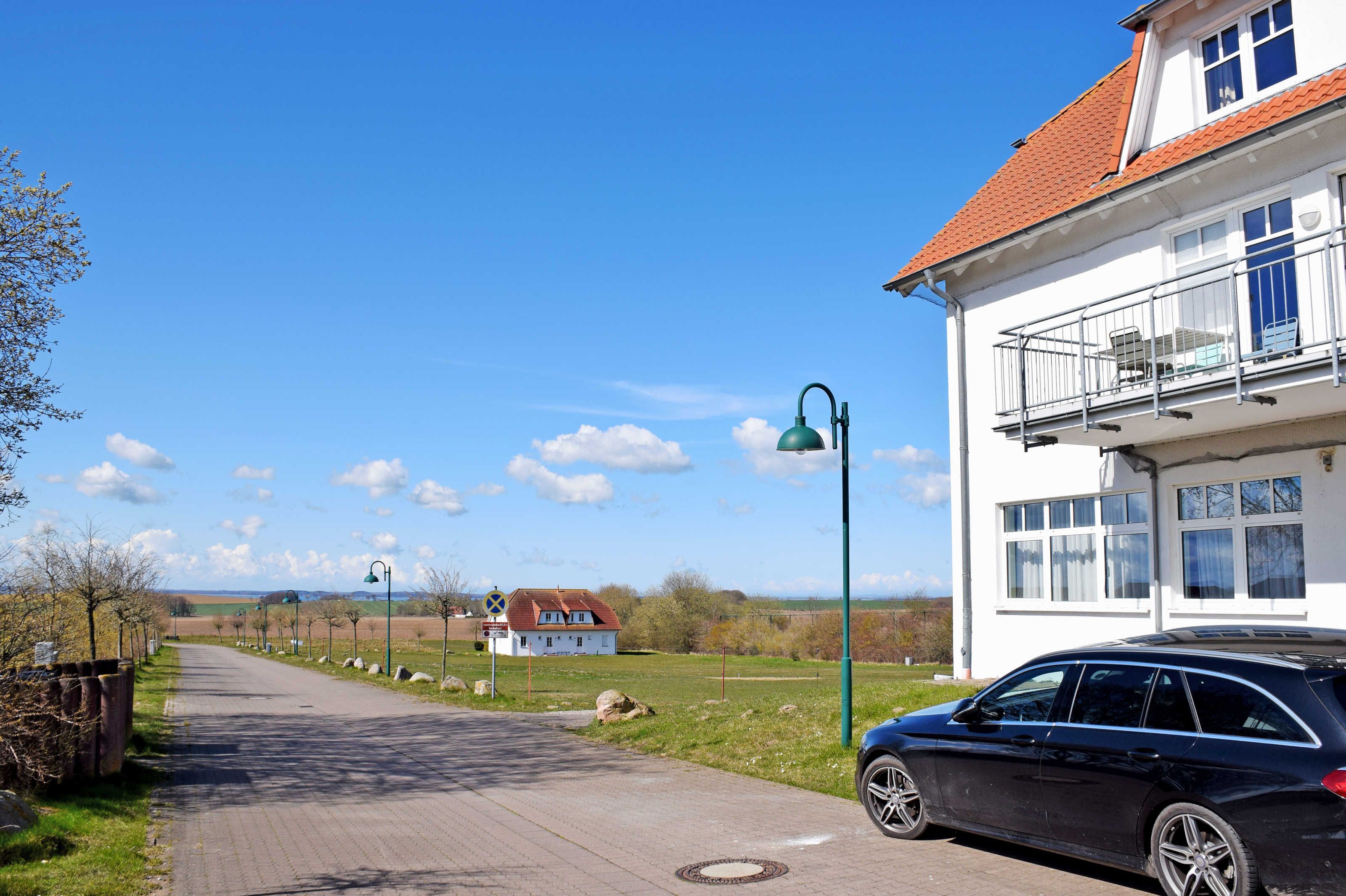 Die modern eingerichtete Wohnung befindet sich in ruhiger Lage im Erdgeschoss eines Wohnhauses, auf dessen anderen Seite sich auch ein Friseur und eine Pizzeria befinden. Vor der Wohnung können zur Wohnung gehörende Gartenstühle und ein Tisch aufgestellt werden. Hinter dem Haus gibt es viel Platz auf einer großen Wiese mit weitem Ausblick in Landschaft und auf die Boddenküste der Ostsee.