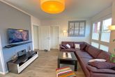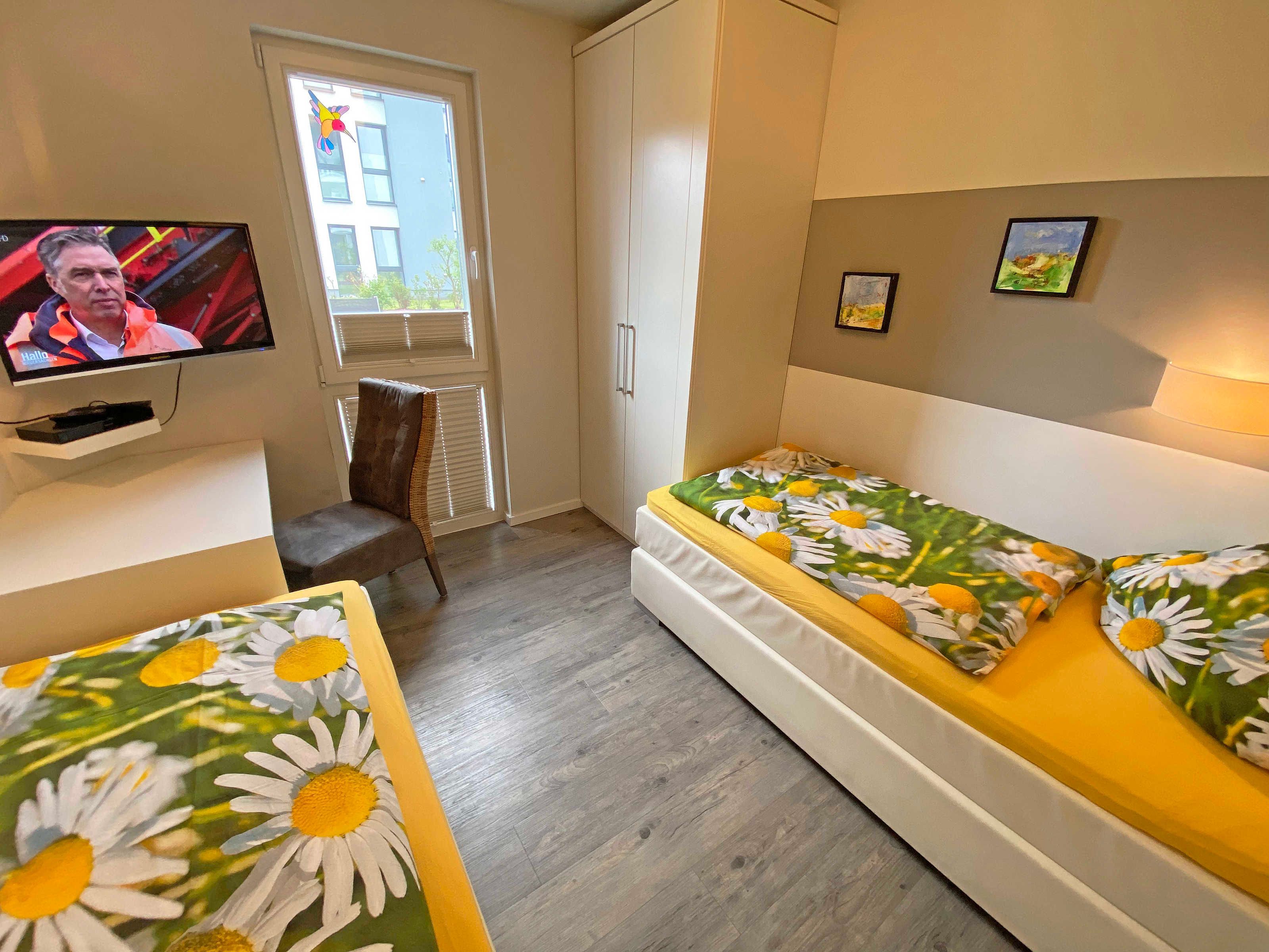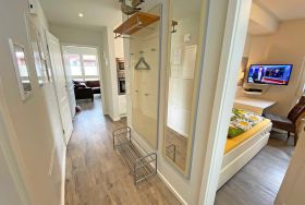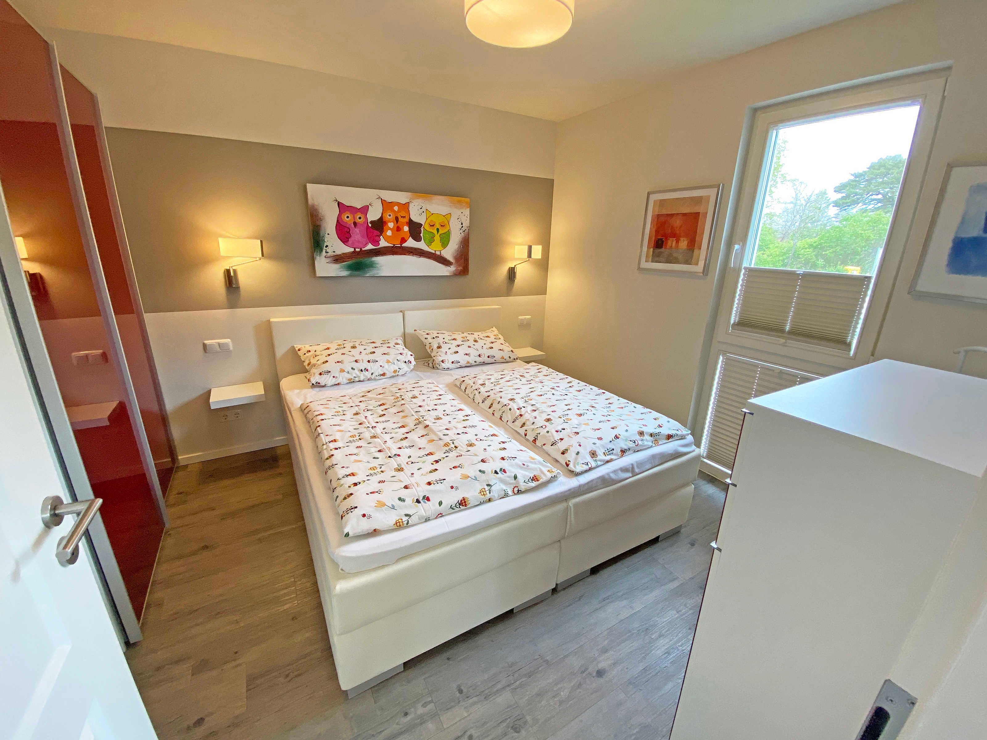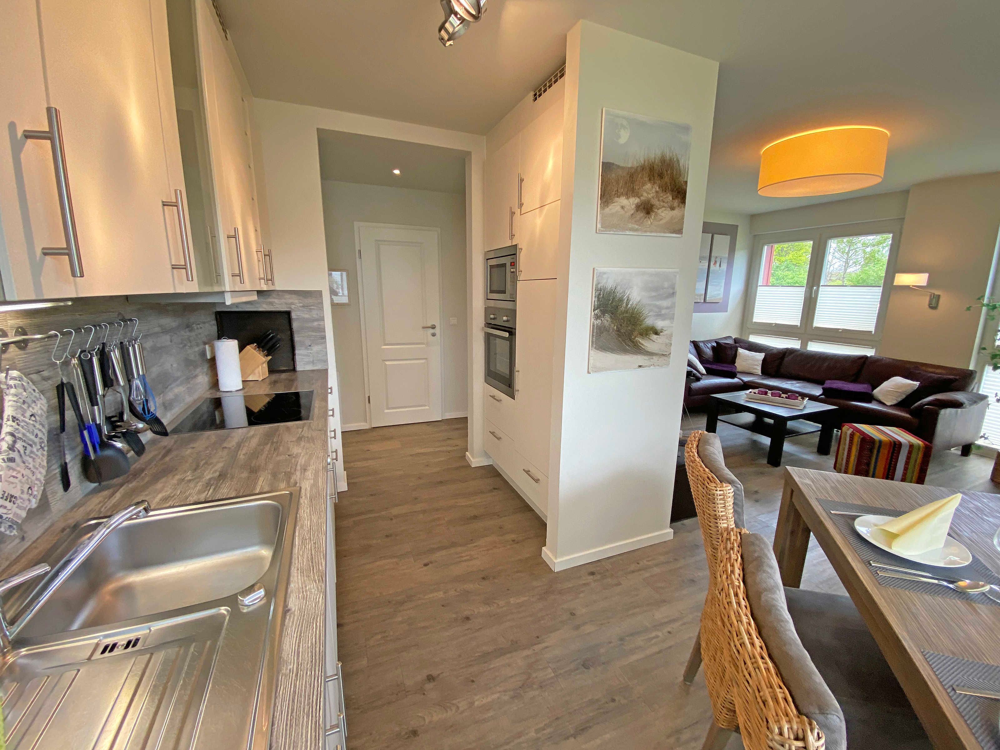Die stilvoll und komfortabel eingerichtete Nichtraucherferienwohnung Strandgang befindet sich im Erdgeschoss des Hauses. Es erwartet Sie eine 3 - Raumwohnung mit einer Wohnfläche von ca. 70 qm. Die Wohnung ist mit viel Liebe zum Detail ausgestattet und für maximal 4 Erwachsene + 1 Kleinkind bis 3 Jahre im Kinderreisebett. Der offene lichtdurchflutete Wohnbereich mit Kamin ist mit modernen maritimen Möbeln ausgestattet. Eine große, bequeme Ledercouch, Couchtisch mit Hocker, Sideboard und Vitrine sorgen für Gemütlichkeit vor dem Kamin. Für die Unterhaltung steht Ihnen ein Smart-TV mit Blu-Ray-Player zur Verfügung ebenso wie eine kleine Auswahl an Urlaubslektüre und CD`s. Auch auf einen kostenlosen Internetanschluss (WLAN) müssen Sie nicht verzichten. Auf der nach Süd-Osten zum Meer hin ausgerichteten und teilweise überdachten Terrasse, die Sie direkt vom Wohnbereich aus betreten können, stehen Ihnen eine Sitzgarnitur mit Sonnenschirm für ein gemütliches Frühstück in der Morgensonne oder ein Glas Wein am Abend zur Verfügung. Dabei genießen Sie einen wundervollen Blick auf die Strandpromenade und Gartenanlage. Die hochwertig eingerichtete Einbauküche besitzt ein Cerankochfeld, Backofen, Kühlschrank mit Gefrierkombination, Mikrowelle, Toaster, Wasserkocher, Kaffeemaschine, SENSEO Pad Kaffeemaschine mit Thermoskanne, Eierkocher und verschiedenen Küchenutensilien. Der Essbereich schließt sich an und besteht aus einem großen Esstisch und gepolsterten Stühlen. Für einen erholsamen Schlaf steht Ihnen ein Boxspringbett (1,80m x 2,00m) zur Verfügung, mit durchgehendem Topper in Komforthöhe. Nachttischablagen mit Wandleuchten, ein großzügiger Kleiderschrank, Kommode und ein Herrendiener ergänzen die Ausstattung im Schlafzimmer. Ein weiteres Schlafzimmer ist mit 2 Boxspringbetten (0,90m x 2,00m), Kleiderschrank, Schreibtisch mit Stuhl und einem zusätzlichen TV ausgestattet. In allen Räumen gibt es einen Sichtschutz mit Faltjalousien, Verdunkelung in den Schlafzimmern, sowie Insektenschutzgitter. Das große Bad mit Fenster, Waschtisch, Wandspiegel, ebenerdiger Regendusche, Wellnesswanne, WC, Haartrockner, Handtuchtrockner und Kosmetikspiegel ist Ihr Wellnessbereich! Mit der Sauna, Bio-Ofen und LED-Farblicht ist es ein Erlebnis im Sommer wie auch im Winter. Von der Sauna unter die Regendusche oder auch direkt in die Ostsee, danach in die Wellness-Wanne und dann zum Ausklang eine gute Tasse Tee oder ein Glas Rotwein vor dem Kamin. Das ist Urlaub! Ein zweites Bad im Innenbereich bietet Ihnen eine große Dusche, Waschtisch, Haartrockner und WC. Für die kleine Wäsche gibt es eine Waschmaschine / Trockner im Bad. Der Flurbereich ist mit einem Ganzkörperspiegel, Garderobe und Schuhablage ausgestattet. Alle Wohn- und Schlafräume haben einen angenehmen Vinyl Fußboden. Die Bäder sind gefliest. Eine Fußbodenheizung sorgt an kühleren Tagen für wohlige Wärme. Für unsere kleinen Gäste stehen ein Kinderreisebett sowie ein Hochstuhl inklusive zur Verfügung. Ihre eigenen oder gemieteten Fahrräder können Sie im Fahrradraum der Tiefgarage abstellen. In der Tiefgarage steht Ihnen ein PKW-Abstellplatz (Nr.04, Einfahrtshöhe 1,95m) zur Verfügung. Auf der Grünanlage des Villen Ensembles sind Grillplätze zur Gemeinschaftsnutzung vorhanden. 1 kleines Haustier ist mit seinem eigenen Schlafplatz gegen eine Gebühr ein gern gesehener Gast. Die Erstausstattung eines Wäschepaketes (komplette Bettwäsche, 1 Duschhandtuch, 2 kleine Handtücher) können Sie bis 14 Tage vor Anreise gegen einen Aufpreis dazu buchen oder durch eigene ergänzen. Ab 2 gebuchten Paketen erhalten Sie einmalig 1 Geschirrtuch und einen Duschvorleger dazu.