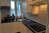 Küche mit Fenster, Kührschrank mit Gefrierwürfel, Mikrowelle, Kaffeemaschine, Wasserkocher, Toaster, Herd mit 4 Ceranplatten+Backofen