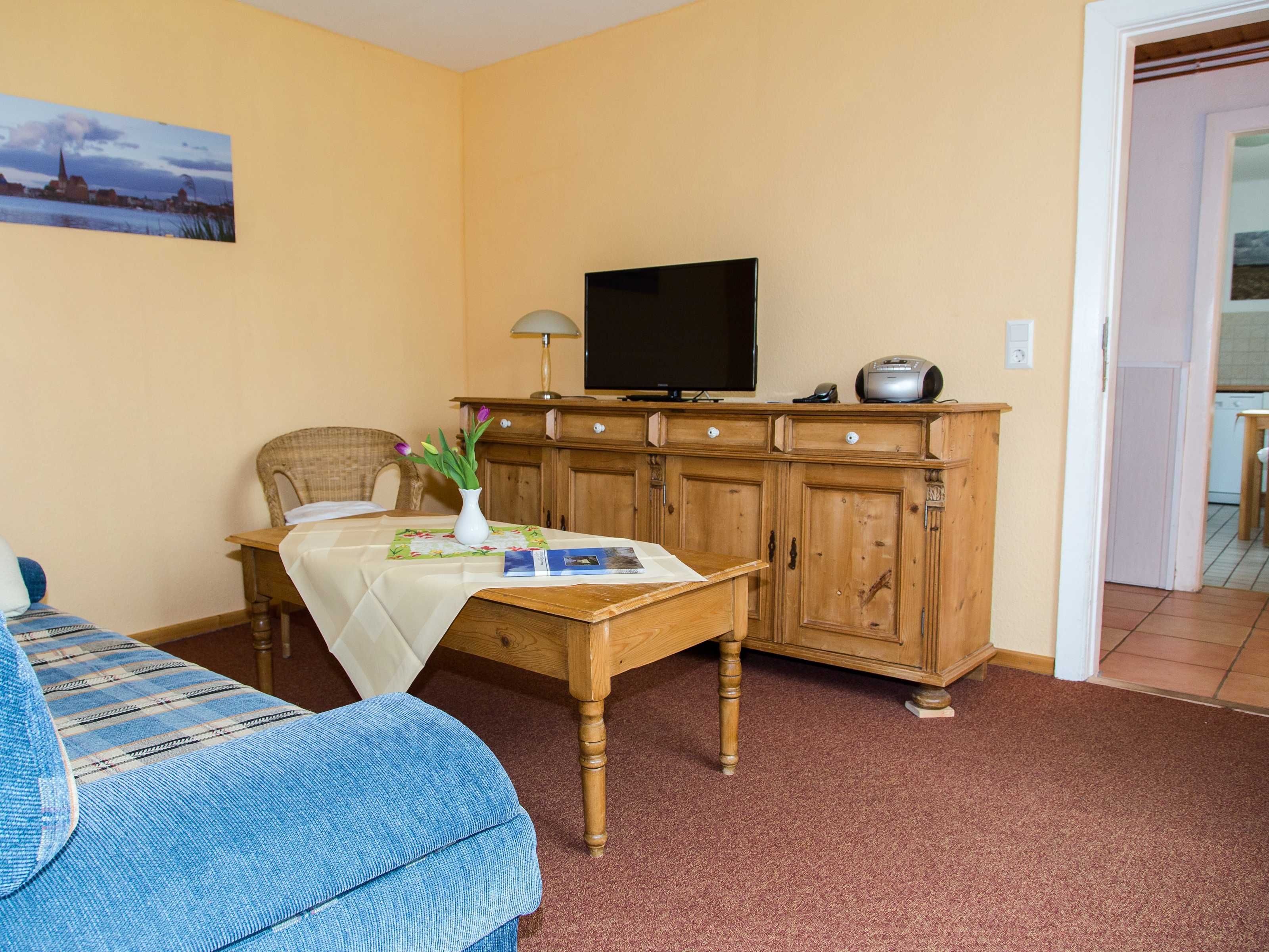 Mit Miniküche und Mikrowelle, Bad mit Du/WC. Sat-TV, Internetzugang W-LAN. Fußbodenheizung. Eine große Gemeinschaftsterrasse und der weitläufige Garten mit Blick auf die Ostseebucht Salzhaff.