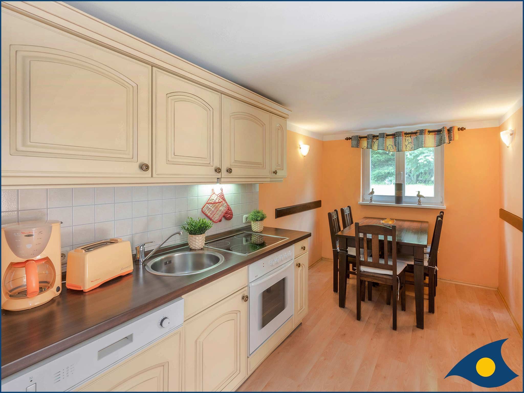 Die mit Echtholz- und Ledermöbeln im Kolonialstil gehaltene Einrichtung lässt keine Wünsche offen. Die Wohnung ist mit einer hochwertigen Küchenzeile mit integriertem Ceran-Kochherd und Backofen ausgestattet.