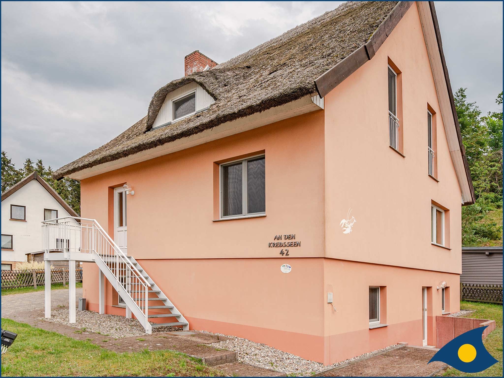 Das großzügig gelegene Hanggrundstück gestattet einen Panoramablick auf den großen Krebssee. Es stehen kostenlose PKW-Stellflächen zur Verfügung. Das mit Reet gedeckte Ferienhaus befindet sich in Neu Sallenthin, einem Ortsteil des Seebades Bansin.