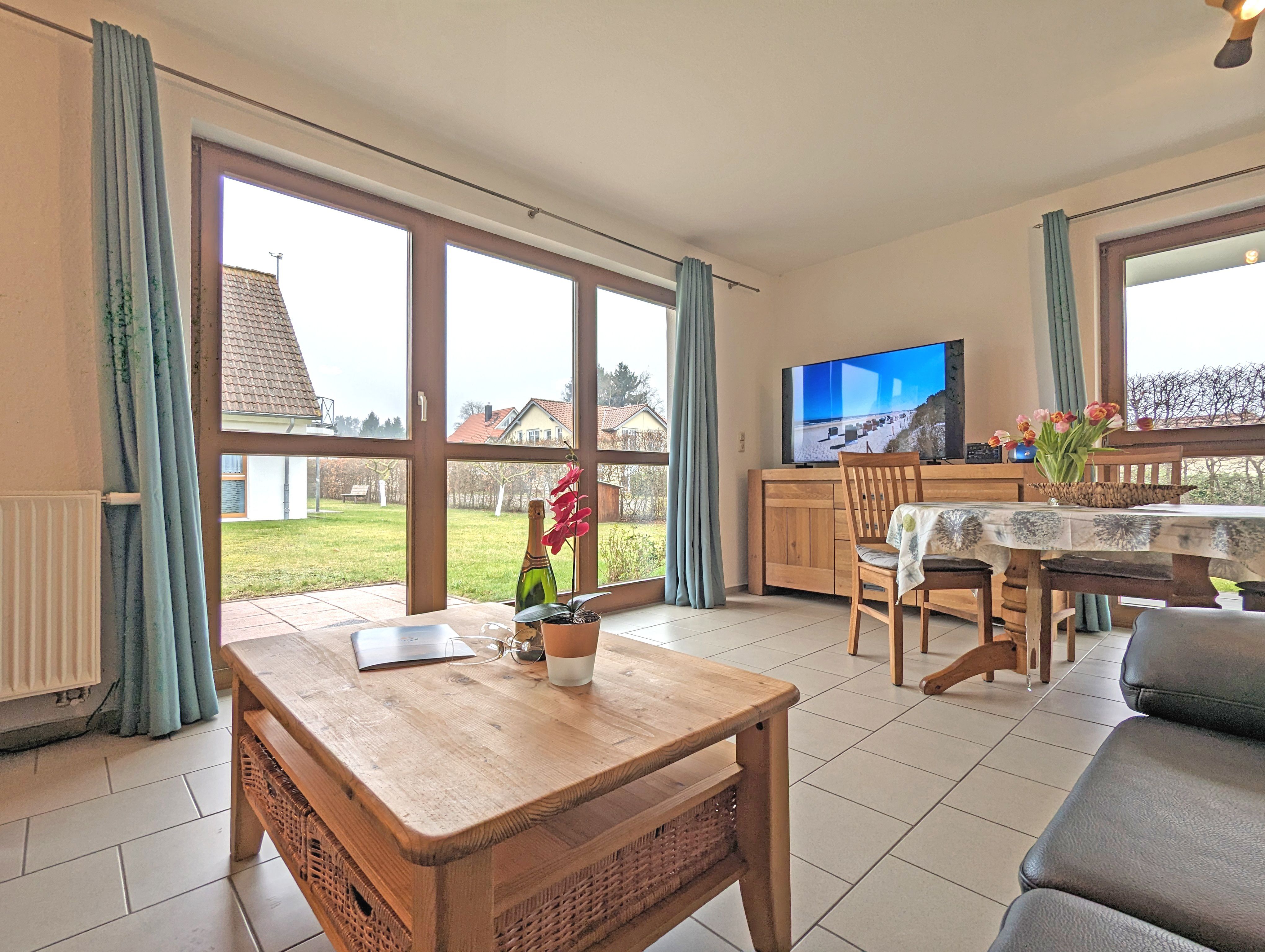 Die Wohnungen im Erdgeschoss bieten Platz für 4 Personen und sind ca. 70m² groß. Sie sind aufgeteilt in 2 Schlafzimmer, einen Wohnraum mit Einliegerküche, ein komfortables Bad und eine Terrasse.