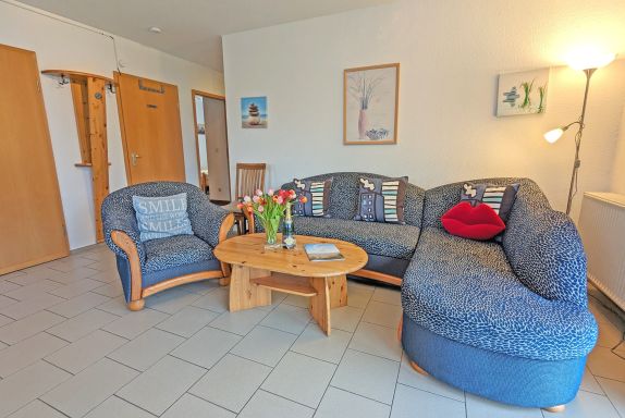 Die Wohnungen im Erdgeschoss bieten Platz für 4 Personen und sind ca. 70 qm² groß. Sie sind aufgeteilt in 2 Schlafzimmer, einen Wohnraum mit Einliegerküche, ein komfortables Bad und eine Terrasse.