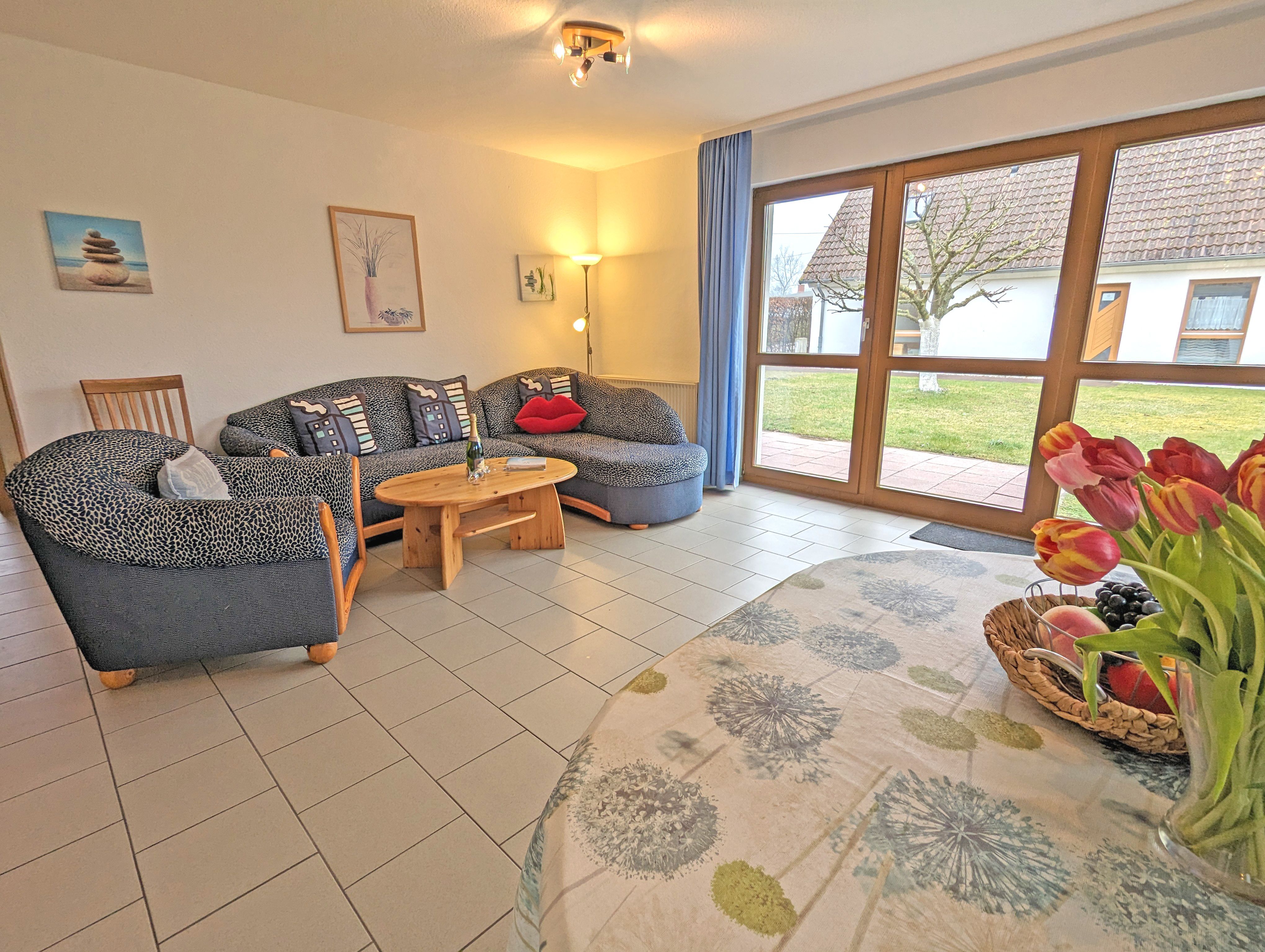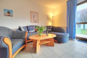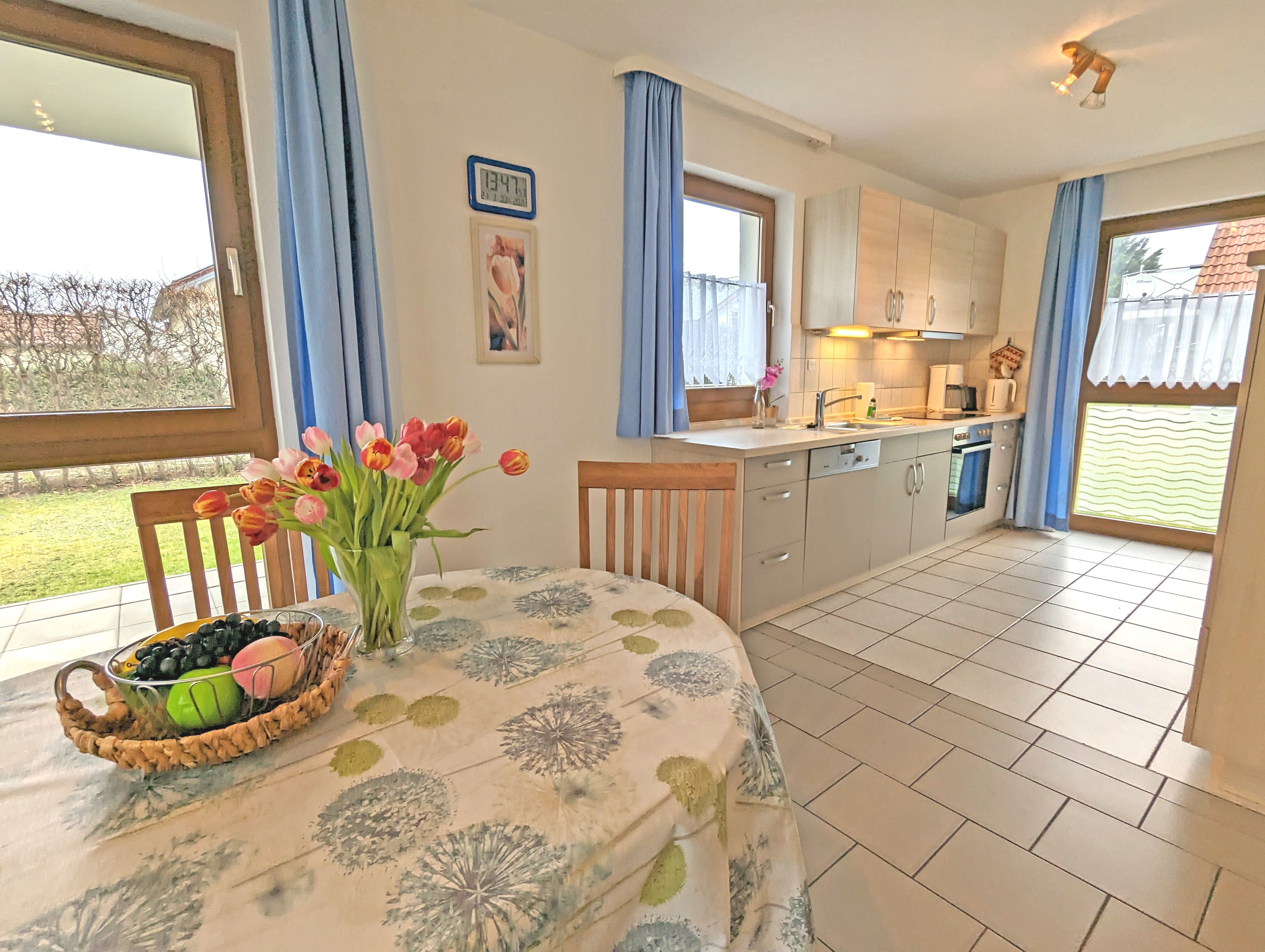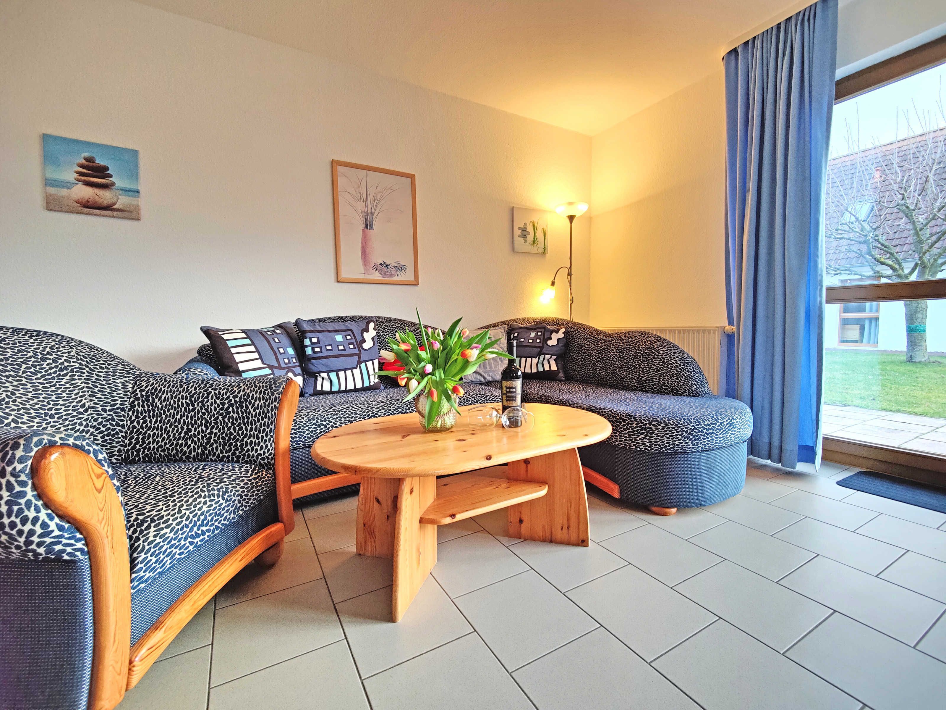 Die Wohnungen im Erdgeschoss bieten Platz für 4 Personen und sind ca. 70m² groß. Sie sind aufgeteilt in 2 Schlafzimmer, einen Wohnraum mit Einliegerküche, ein komfortables Bad und eine Terrasse.