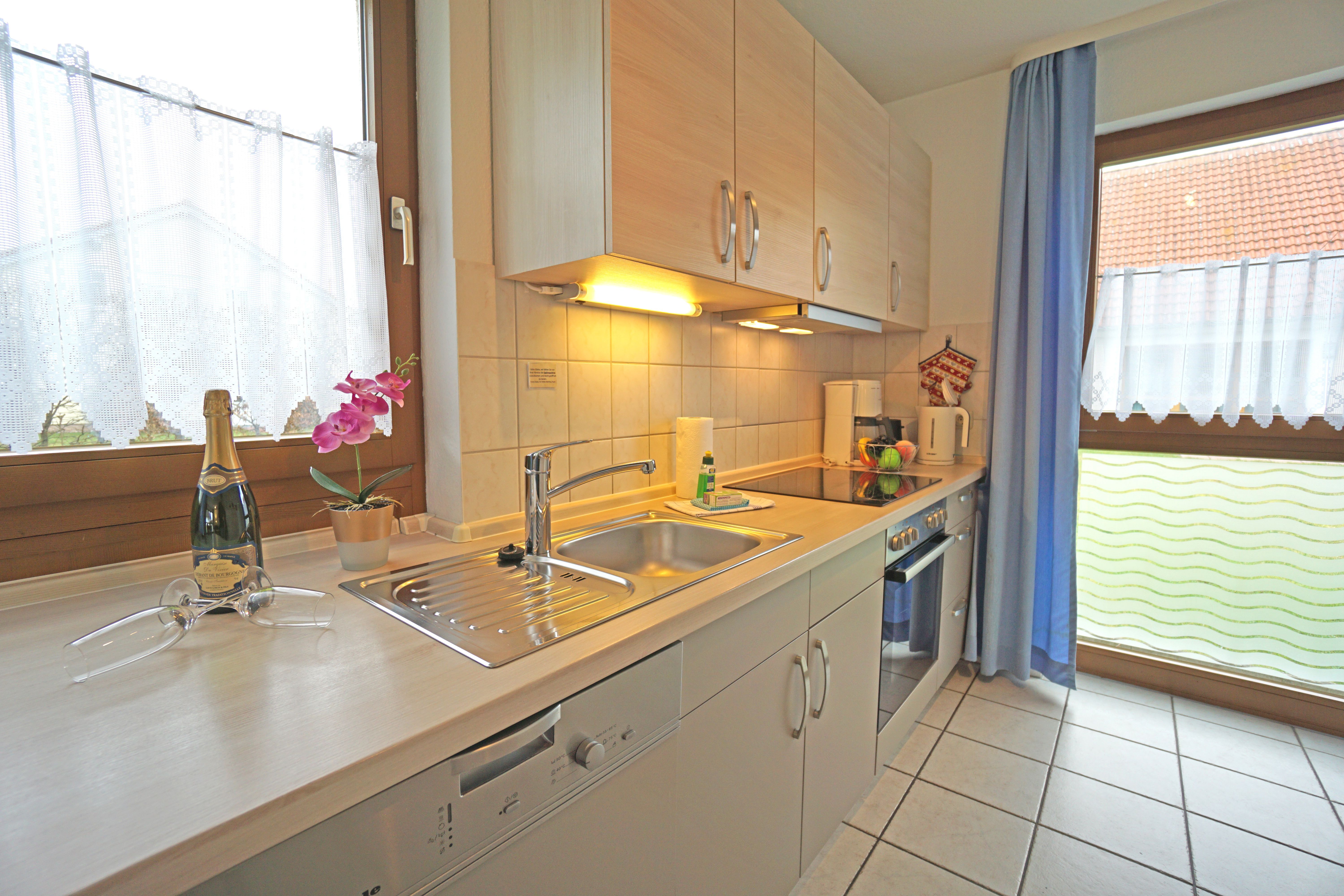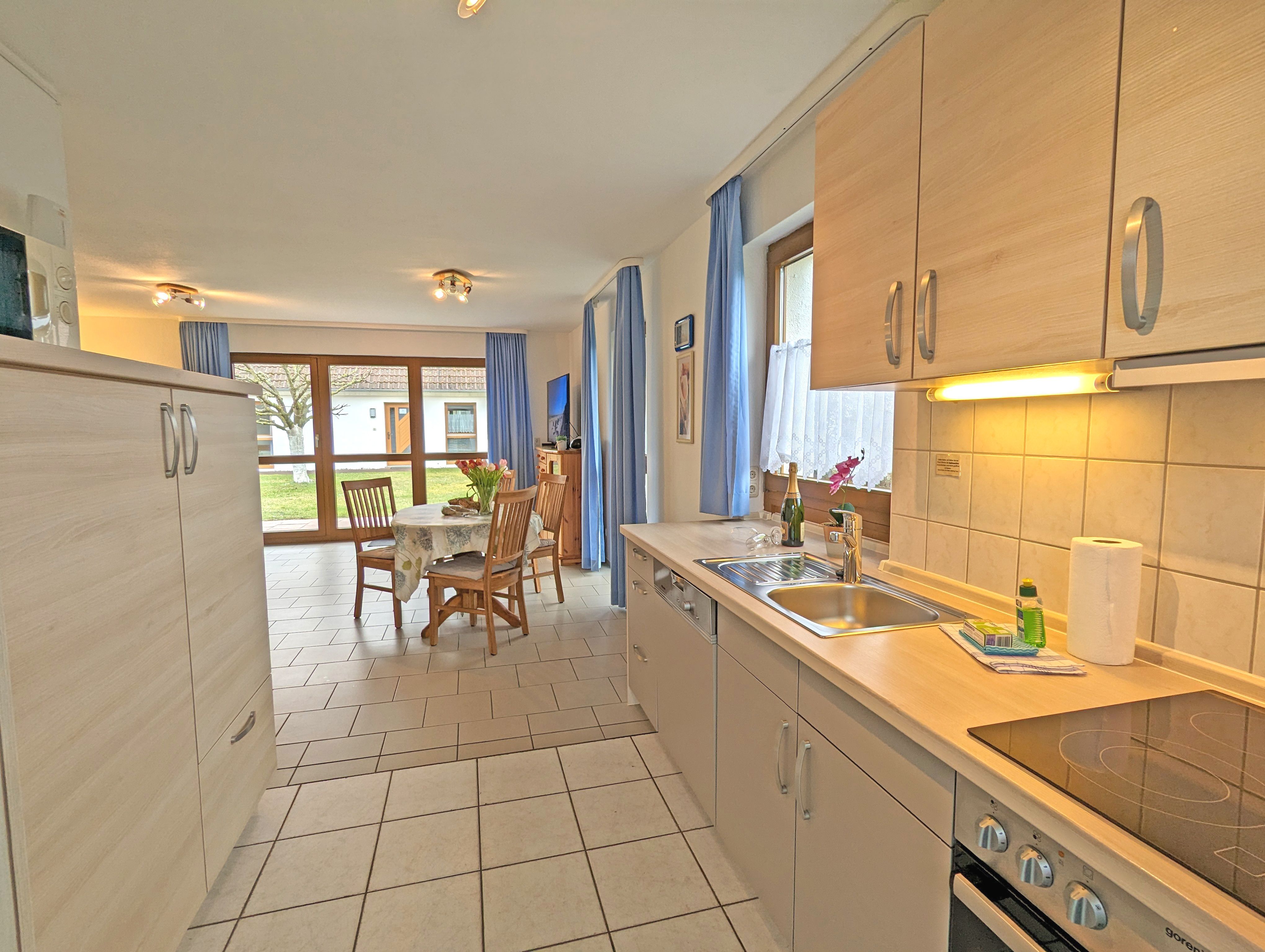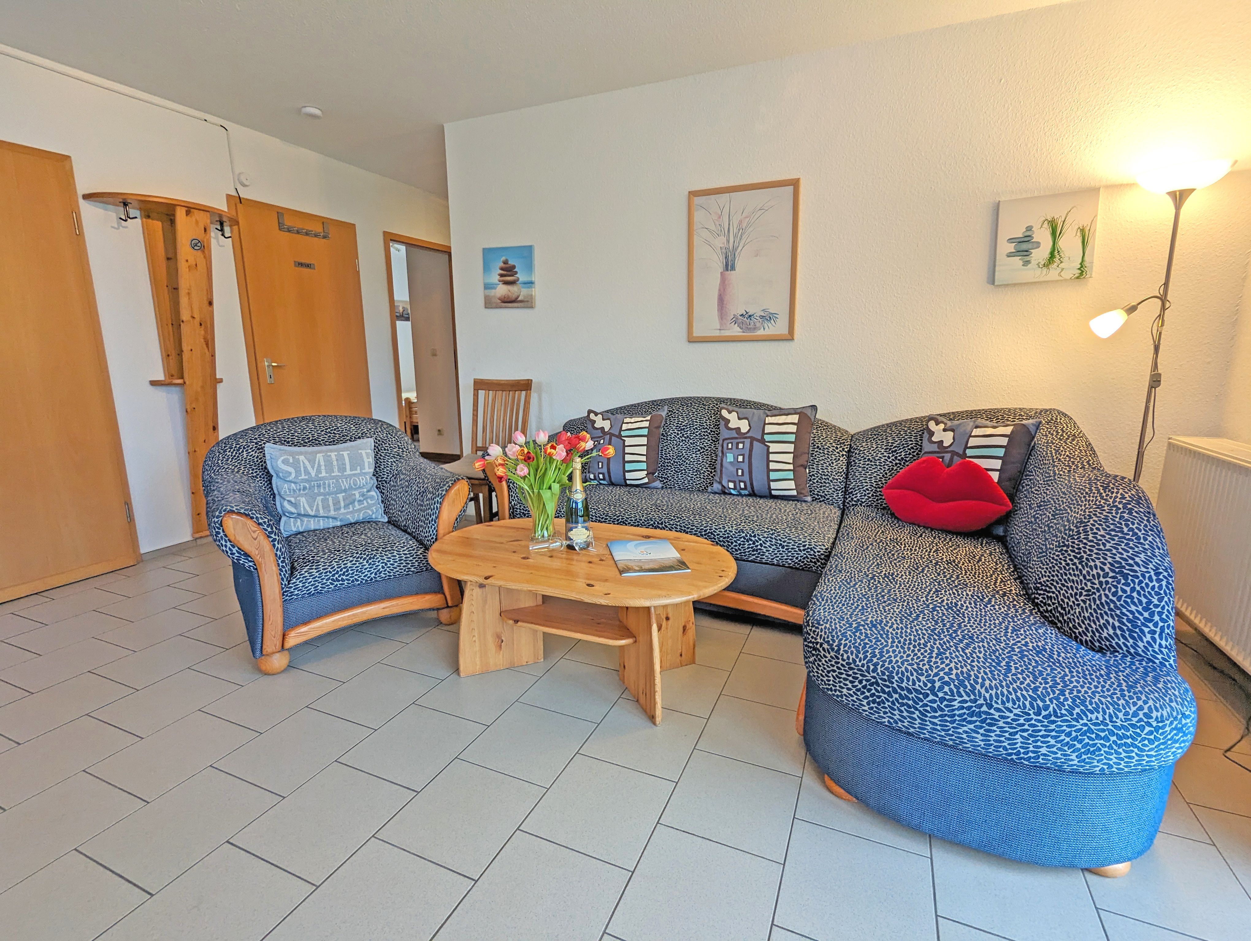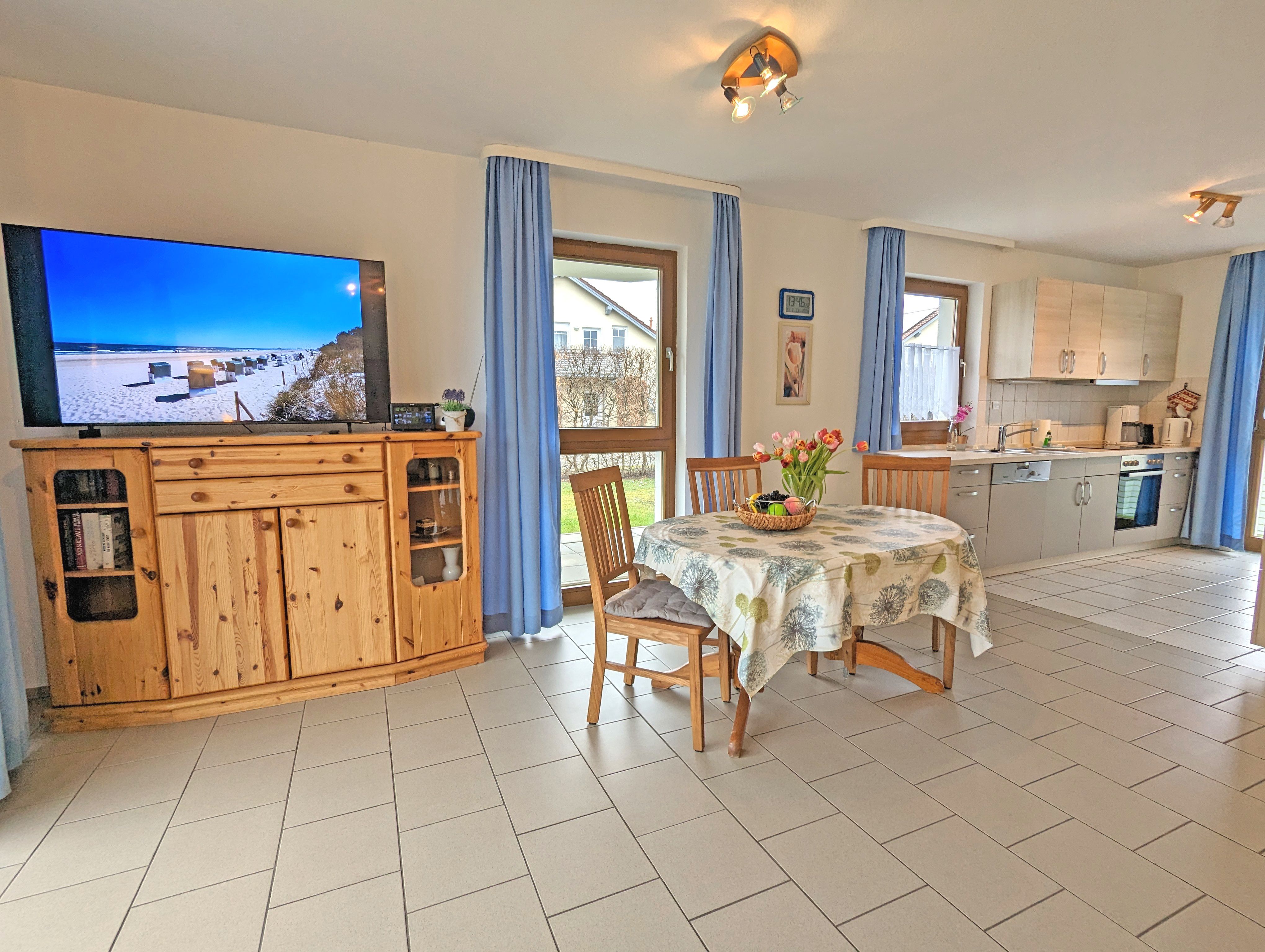 Die Wohnungen im Erdgeschoss bieten Platz für 4 Personen und sind ca. 70m² groß. Sie sind aufgeteilt in 2 Schlafzimmer, einen Wohnraum mit Einliegerküche, ein komfortables Bad und eine Terrasse.