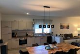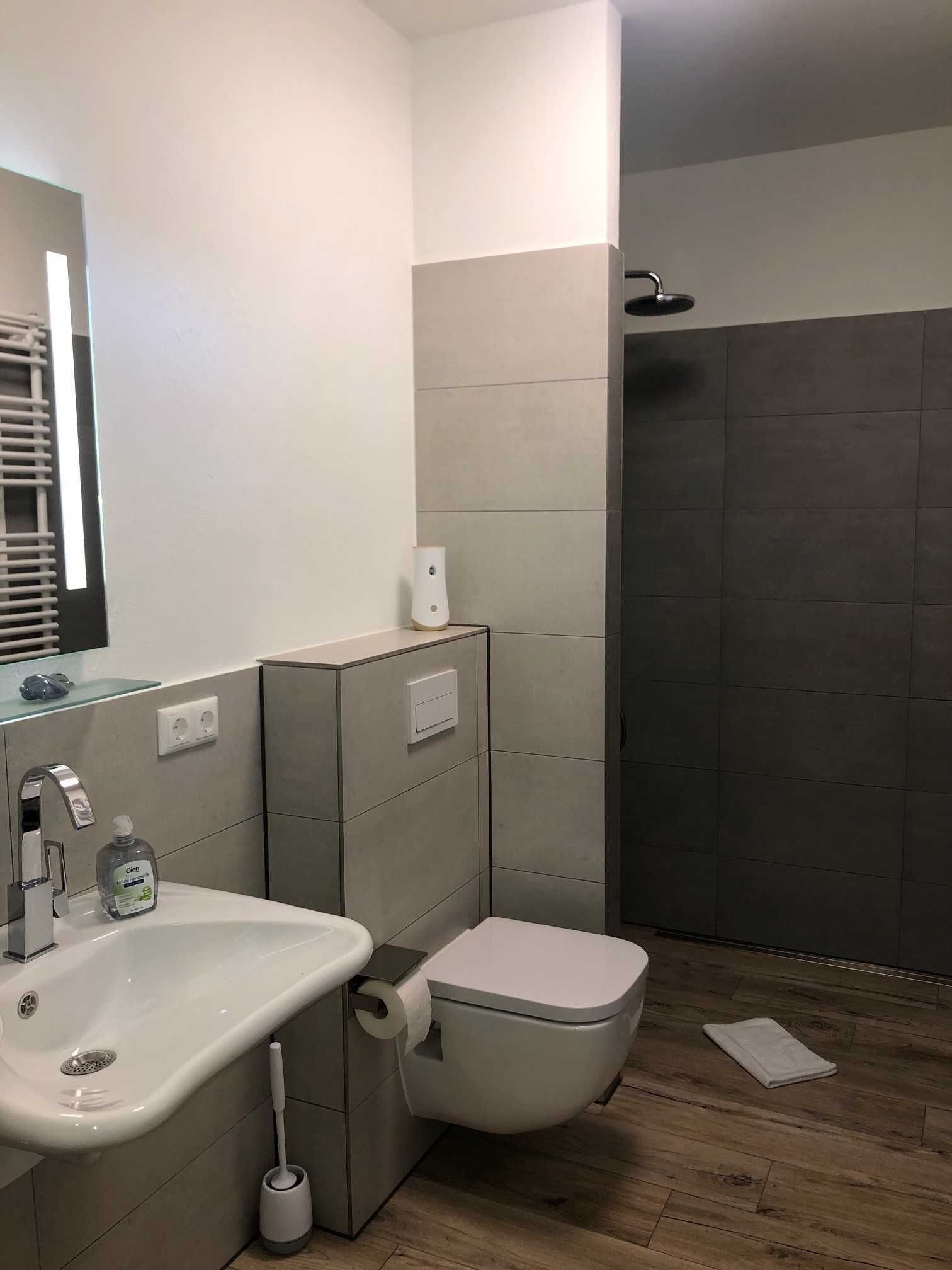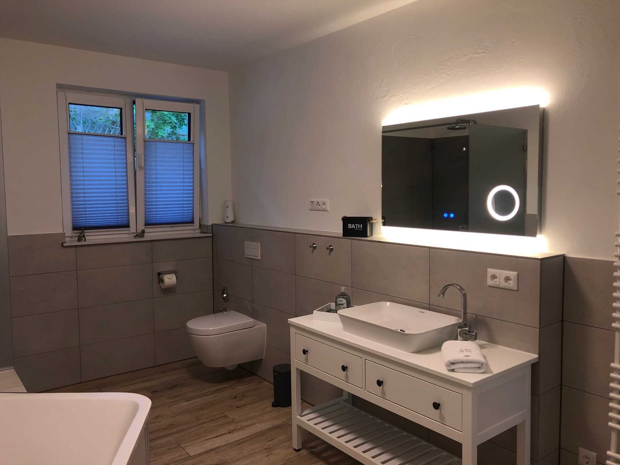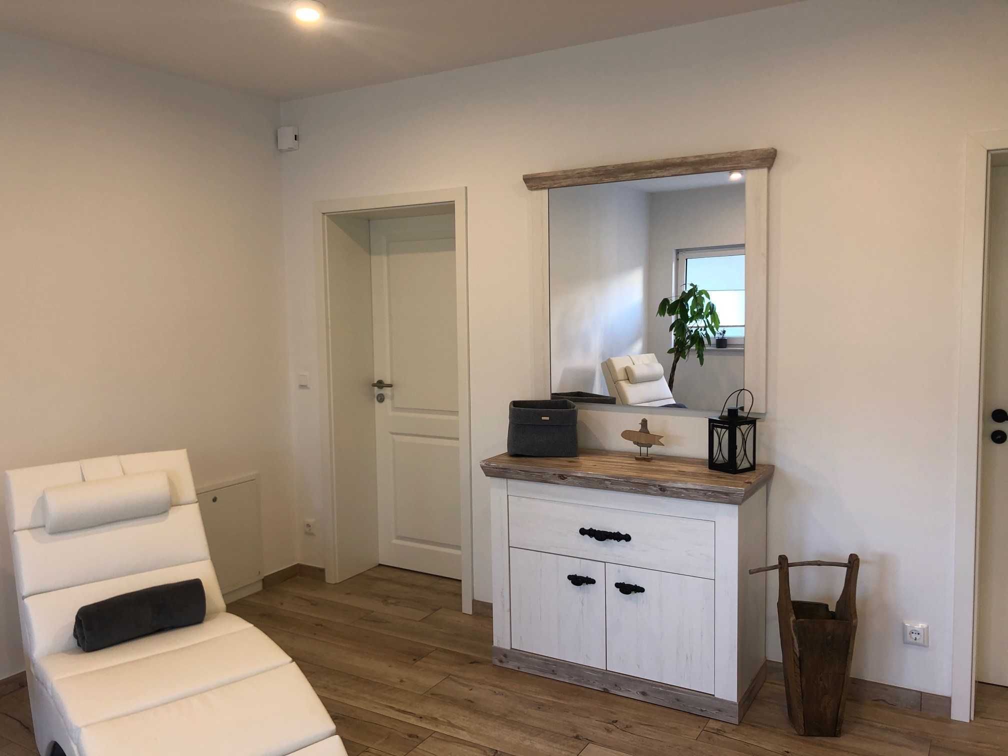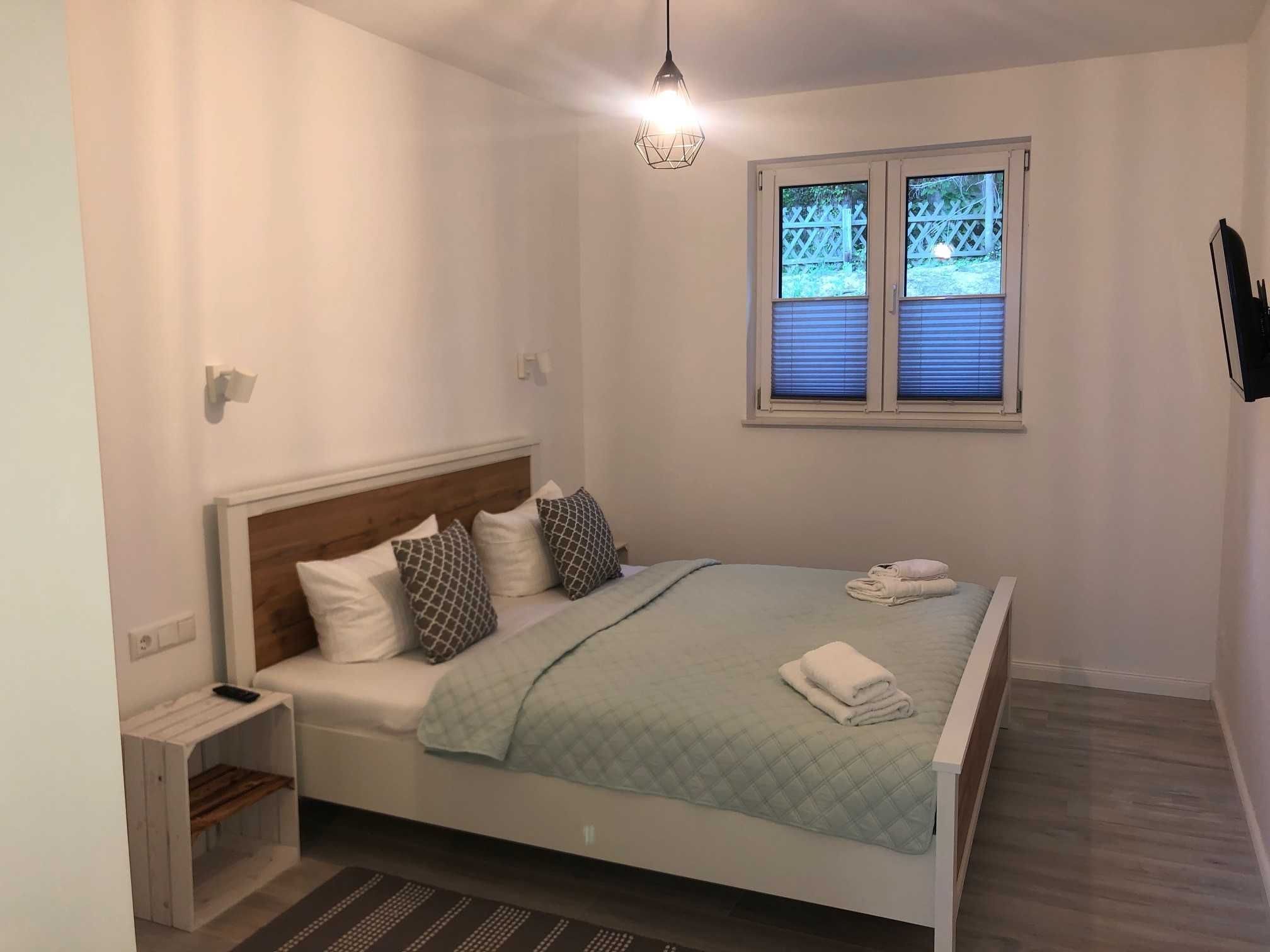 Diese helle und moderne 130 qm große Ferienwohnung bietet Platz für bis zu 8 Personen und 2 Babies und verfügt über einen Wohnbereich mit Kamin, Smart-TV sowie einen großen Esstisch mit acht Stühlen. Die angrenzende offene Küchenzeile ist mit Elektroherd, Backofen, Kaffeemaschine, Wasserkocher, Toaster und ausreichend Geschirr ausgestattet. Es gibt 3 Schlafzimmer, 2 Schlafzimmer haben je ein Doppelbett und das dritte Schlafzimmer zwei Einzelbetten, wobei diese auch zu einem Doppelbett gestellt werden können. Im Wohnbereich befinden sich 2 gemütliche Schlafcouchen für 2 weitere Personen. Die Wohnung verfügt über zwei Bäder, das größere Bad hat eine Dusche, WC und eine Badewanne und das kleinere Bad eine große Dusche und WC. Der Flurbereich wurde großzügig gestaltet, hier befinden sich auch zwei Relaxliegen zum Entspannen und Verweilen. Komplettiert wird die gehobene Ausstattung der Wohnung durch die 20 qm große möblierte Sonnenterrasse mit Blickrichtung zum Wald. Hier können Sie morgens bei schönstem Wetter das Frühstück genießen oder den Abend bei einem Glas Wein ausklingen lassen. WLAN sowie ein Parkplatz für Ihren Pkw sind im Preis inbegriffen.