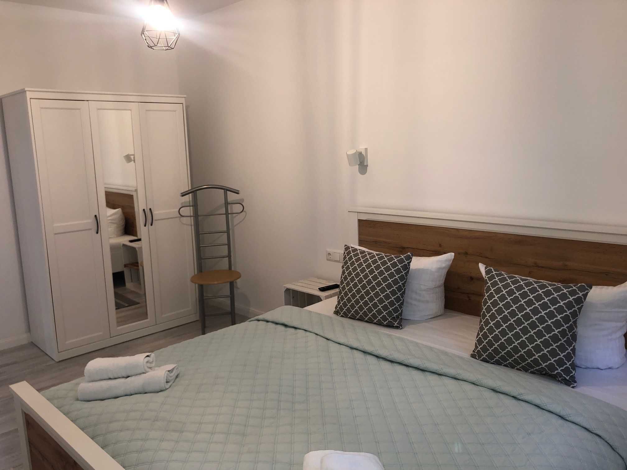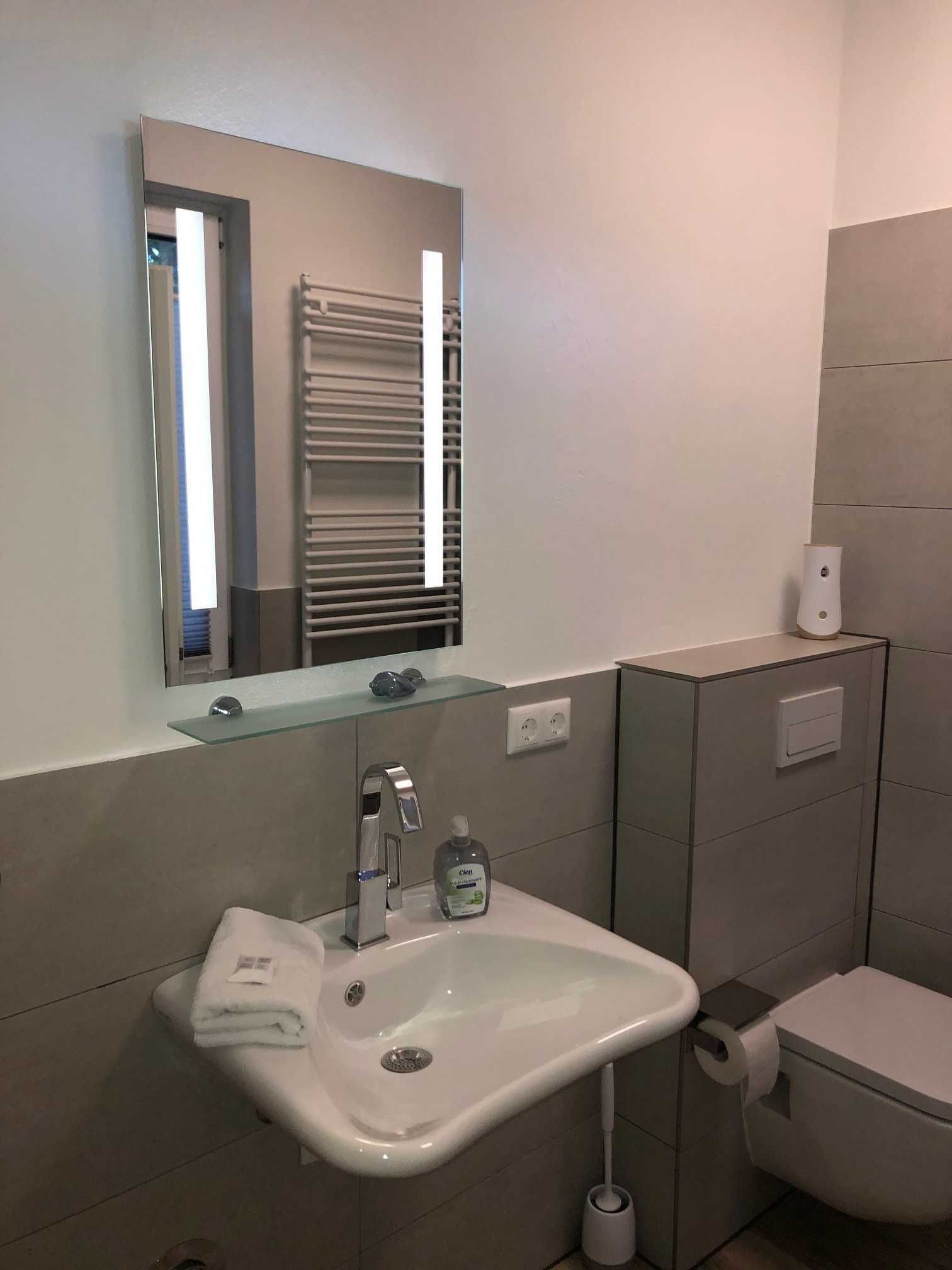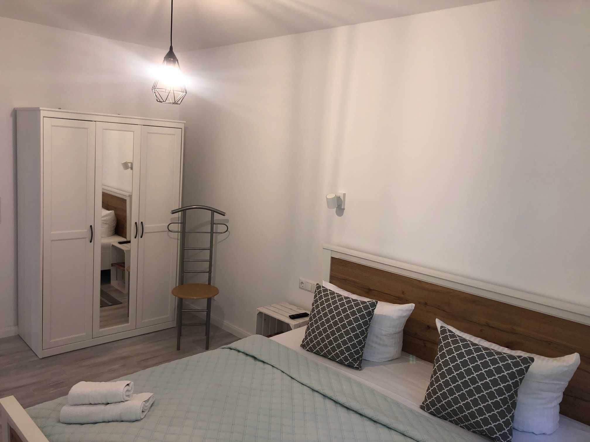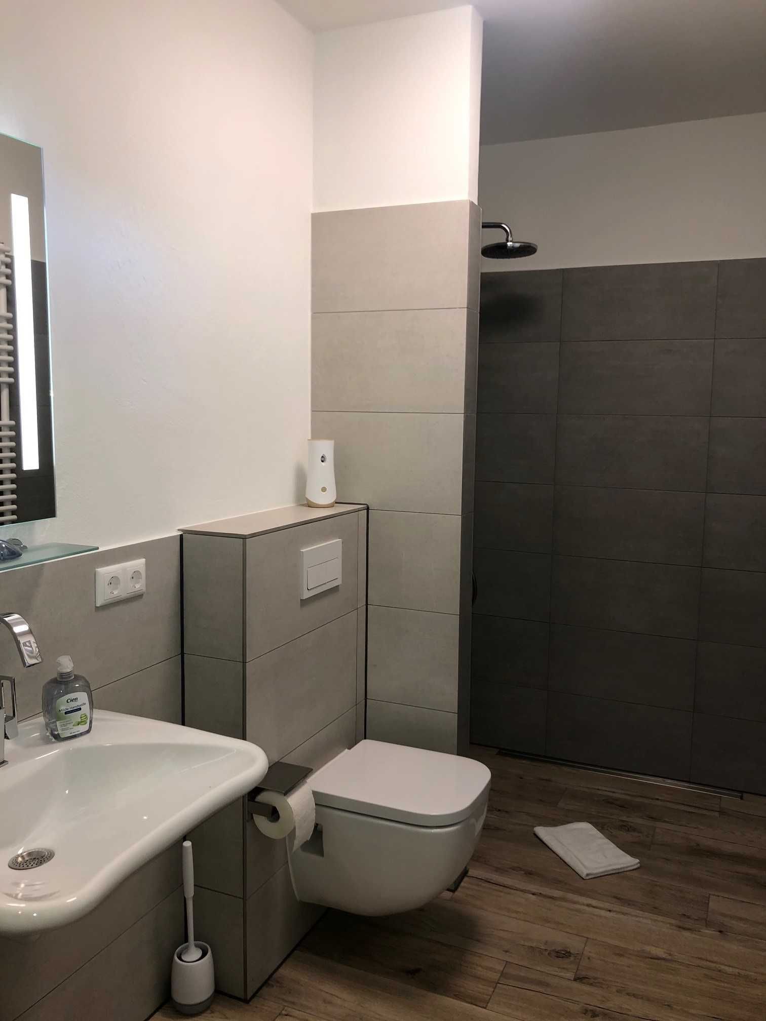 Diese helle und moderne 130 qm große Ferienwohnung bietet Platz für bis zu 8 Personen und 2 Babies und verfügt über einen Wohnbereich mit Kamin, Smart-TV sowie einen großen Esstisch mit acht Stühlen. Die angrenzende offene Küchenzeile ist mit Elektroherd, Backofen, Kaffeemaschine, Wasserkocher, Toaster und ausreichend Geschirr ausgestattet. Es gibt 3 Schlafzimmer, 2 Schlafzimmer haben je ein Doppelbett und das dritte Schlafzimmer zwei Einzelbetten, wobei diese auch zu einem Doppelbett gestellt werden können. Im Wohnbereich befinden sich 2 gemütliche Schlafcouchen für 2 weitere Personen. Die Wohnung verfügt über zwei Bäder, das größere Bad hat eine Dusche, WC und eine Badewanne und das kleinere Bad eine große Dusche und WC. Der Flurbereich wurde großzügig gestaltet, hier befinden sich auch zwei Relaxliegen zum Entspannen und Verweilen. Komplettiert wird die gehobene Ausstattung der Wohnung durch die 20 qm große möblierte Sonnenterrasse mit Blickrichtung zum Wald. Hier können Sie morgens bei schönstem Wetter das Frühstück genießen oder den Abend bei einem Glas Wein ausklingen lassen. WLAN sowie ein Parkplatz für Ihren Pkw sind im Preis inbegriffen.
