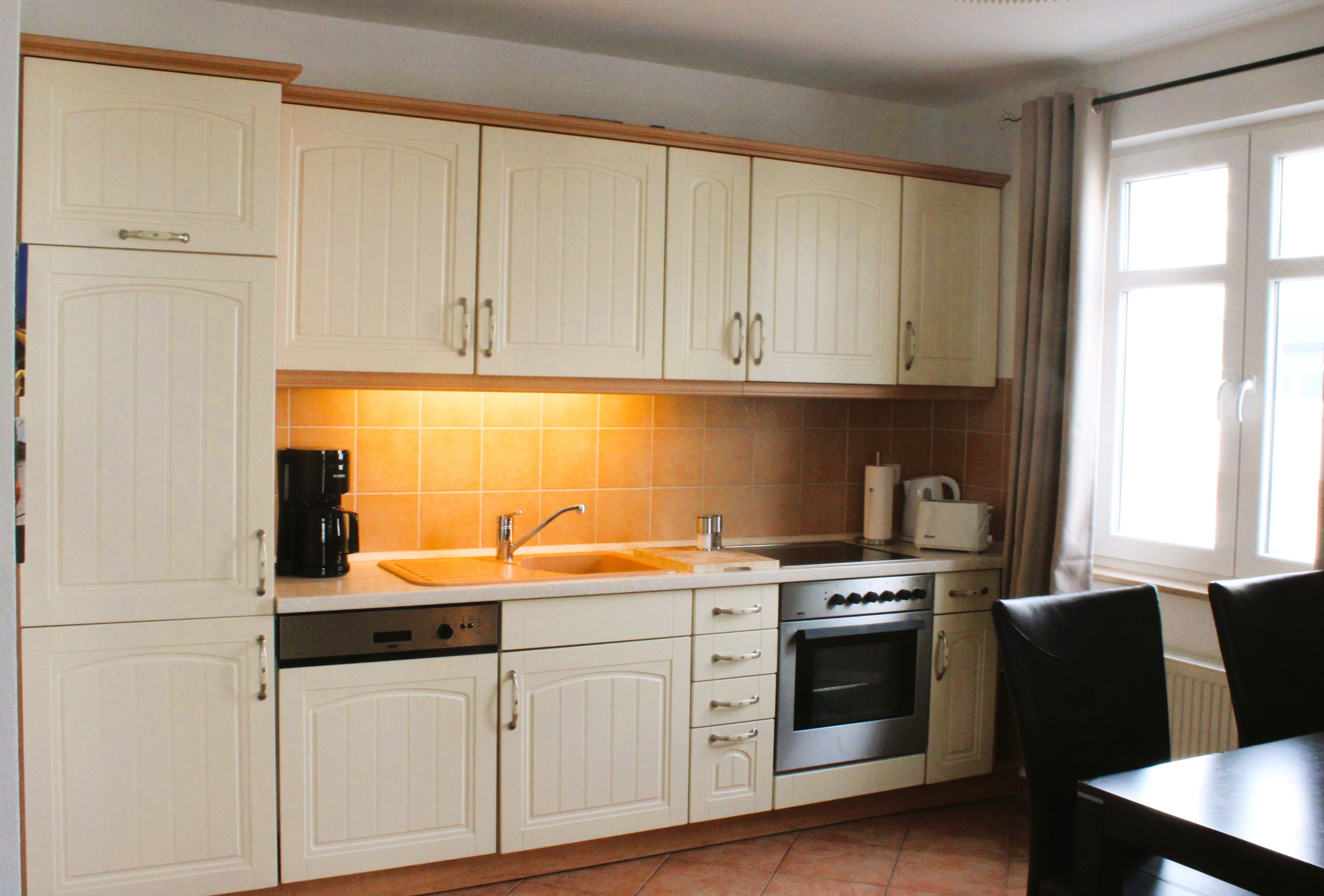 Das komfortabel und sehr hochwertig eingerichtete Appartement im 1. Stock verfügt über ein Wohn-/Esszimmer mit Kabel-TV, CD-/DVD-Player, Radio und Musikanlage sowie über eine komplett ausgestattete hochwertige Küchenzeile im Landhausstil inkl. Geschirrspüler, Kühlschrank mit Gefrierfach, Mikrowelle u.a.