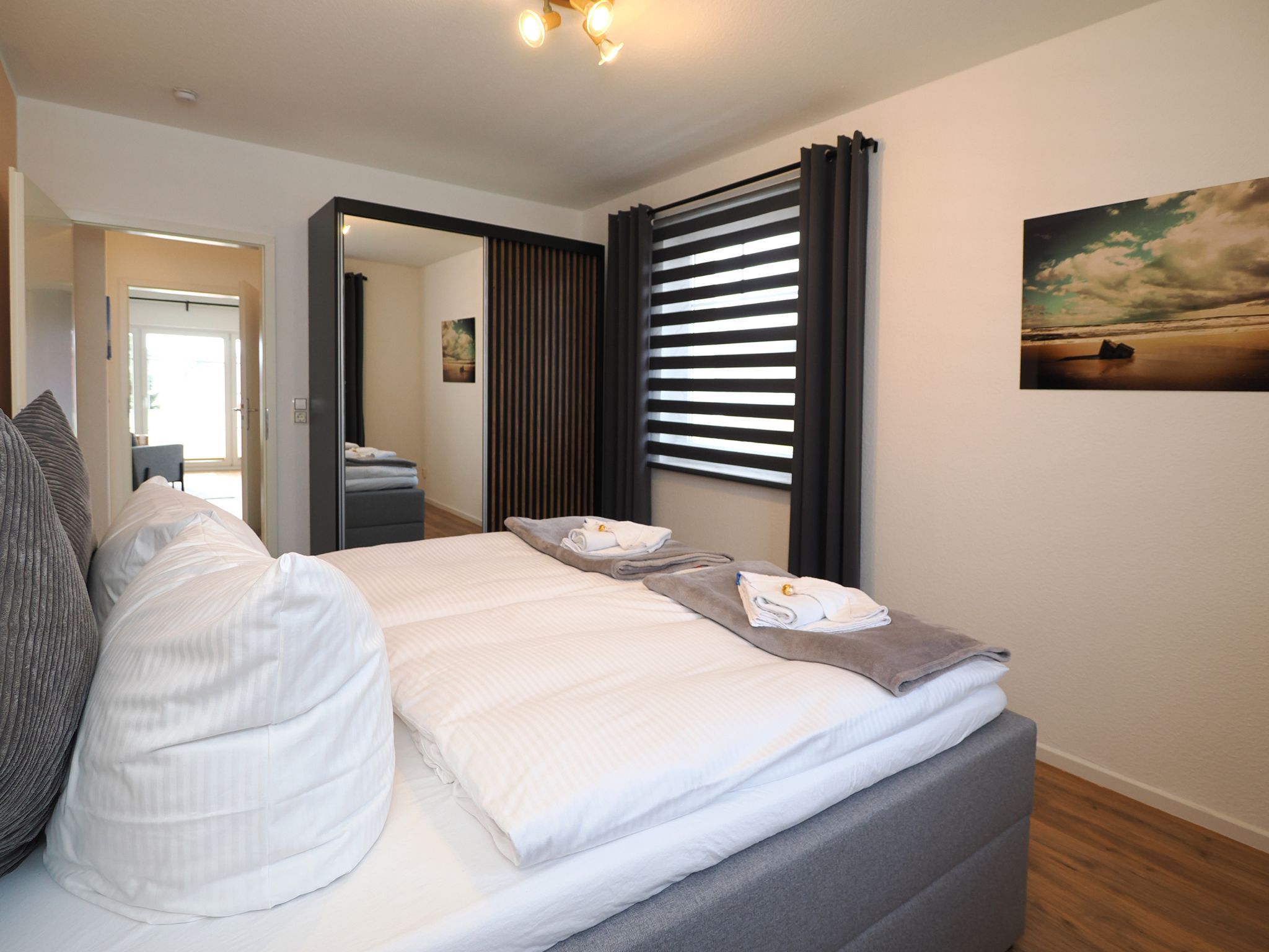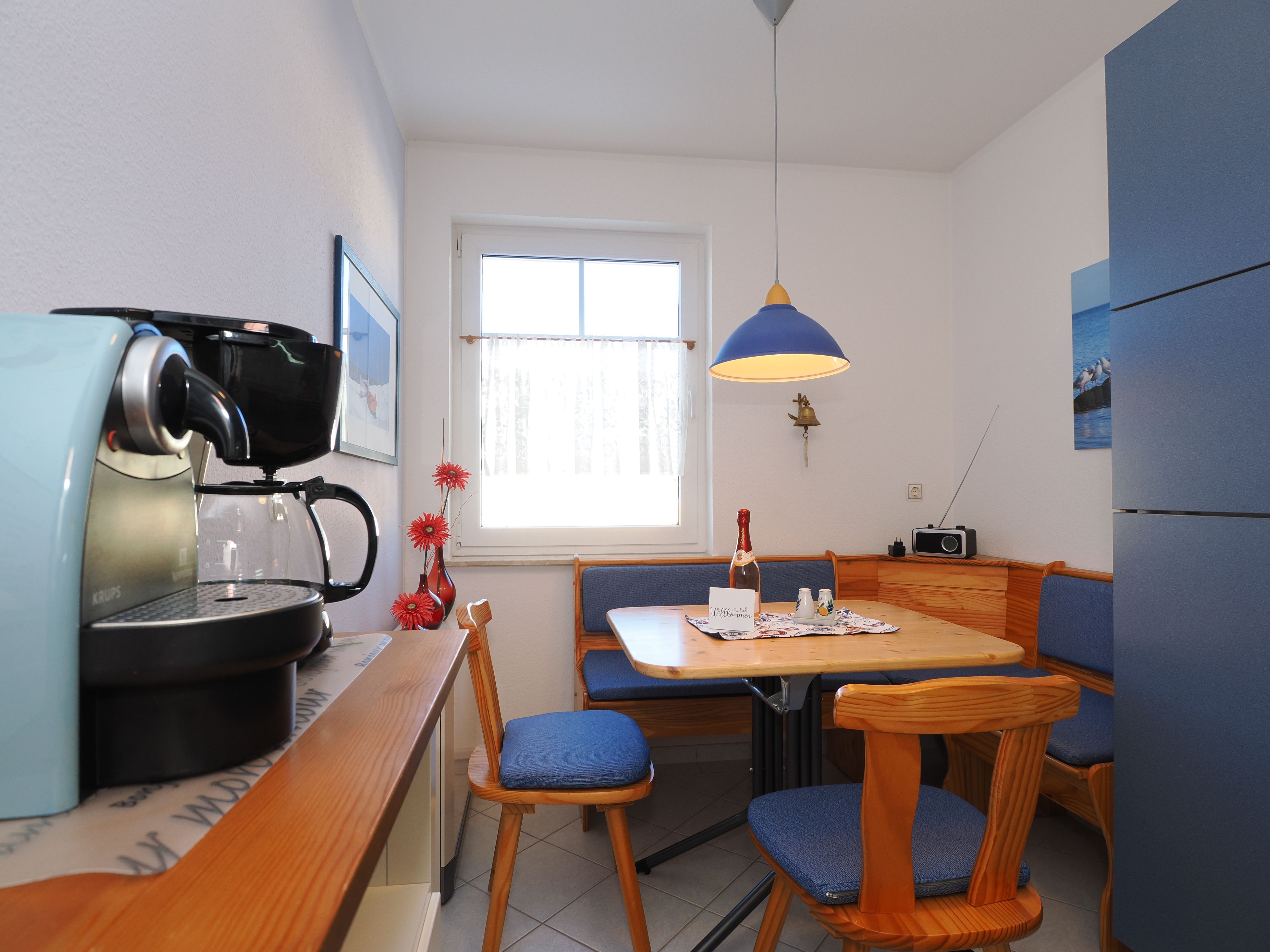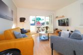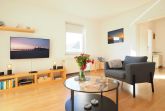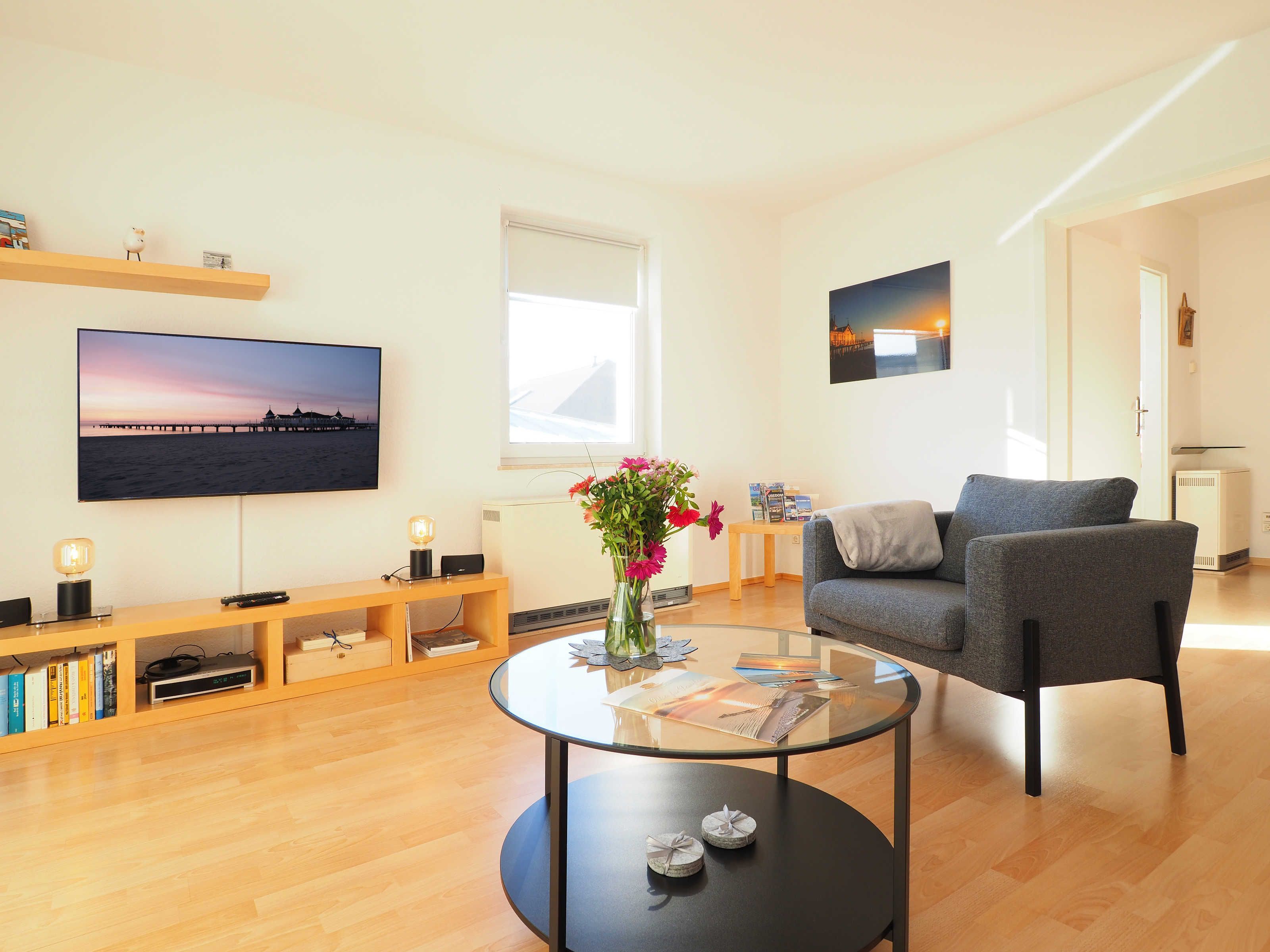 Diese helle und freundliche 58 qm große Nichtraucher-Wohnung befindet sich im 1. OG mit einer Treppe (ohne Fahrstuhl) und verfügt über ein gemütliches Wohnzimmer mit Couch, Sessel, Musikanlage und Flachbild-TV. Von hier aus gelangen Sie auf den Balkon (Südseite) auf dem Sie den Tag am Meer gemütlich ausklingen lassen können. In der großen, separaten voll ausgestatteten Küche mit einer schönen Sitzecke können Sie morgens Ihr Frühstück genießen. Das Schlafzimmer hat ein Doppelbett und Verdunklungsvorhänge sorgen für einen ruhigen Schlaf. Das Tageslicht-Bad mit Dusche komplettiert die moderne Ausstattung dieser Wohnung. Gratis W-LAN steht Ihnen während des Aufenthaltes zur Verfügung. Ihren eigenen Pkw können Sie gern hinter dem Haus parken. Ihre Fahrräder finden in dem abgeschlossenen Fahrradabstellraum Platz.
