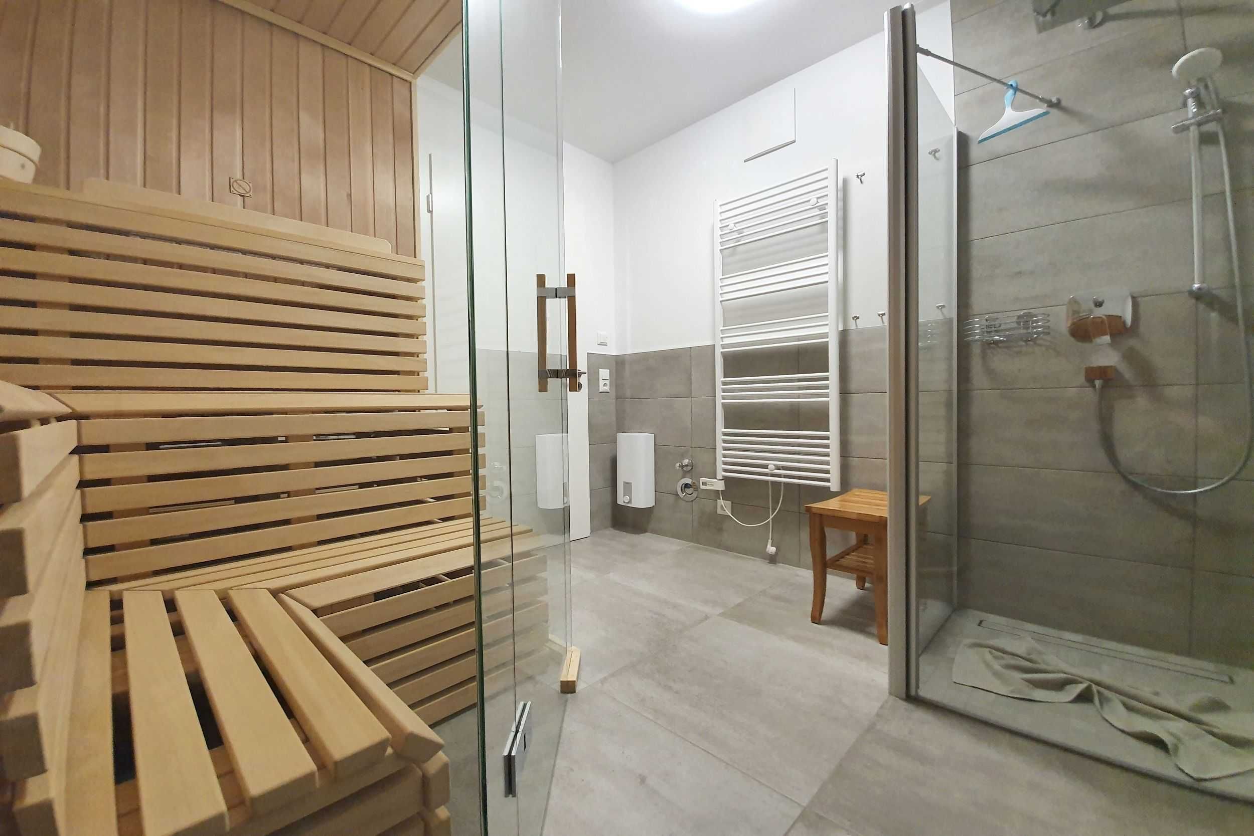 In der großen Sauna ist zudem noch eine Dusche zu finden. Das gesamte Apartment verfügt über eine Fußbodenheizung, so dass es sich auch im Winter lohnt, dort Ihren Urlaub zu verbringen.