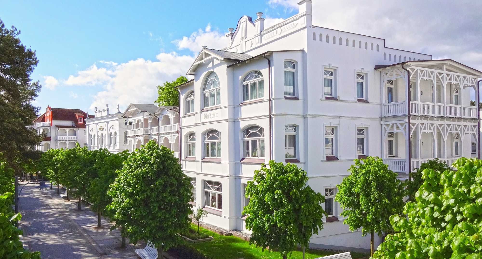 Genießen Sie Ihren Urlaub auf Rügen in dieser wunderschönen Strandvilla direkt an der Promenade im mondänen Ostseebad Binz. Die Villa Gudrun mit ihren 9 Wohneinheiten liegt nur 10 Meter vom traumhaften Ostseestrand und nur wenige Gehminuten von der Binzer Seebrücke entfernt.