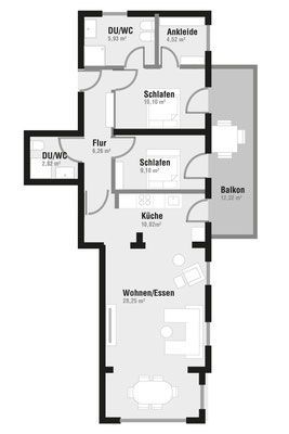 Das Appartement verfügt über einen offenen Wohn-/Essbereich mit integrierter Küche, 2 Doppel-Schlafzimmer und 2 Bäder. Auf den möblierten Balkon mit seitlichem Meerblick gelangt man vom Wohnbereich aus.