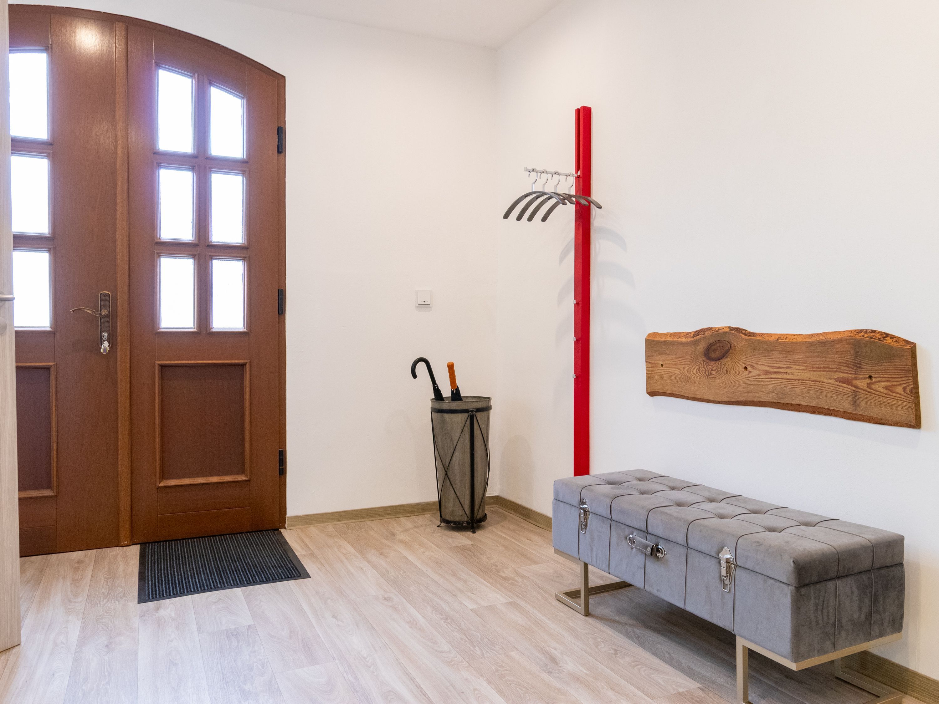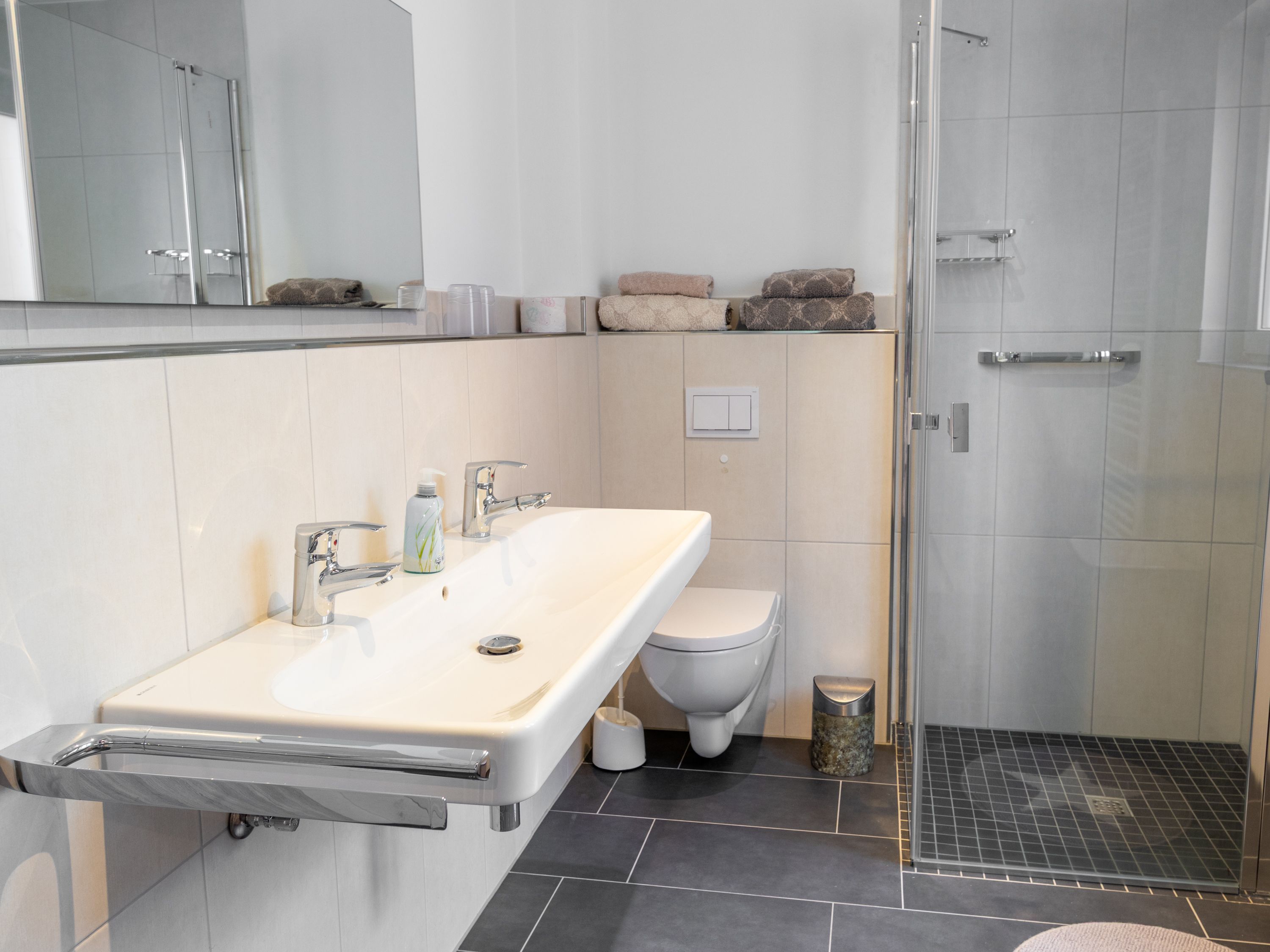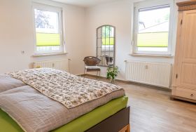 Die 70m² Ferienwohnung 1 bietet Platz für bis zu 2 Personen und 1 Kind bis 17 Jahre und befindet sich im Erdgeschoss des Zweifamilienhauses - mit separatem Eingang. Der großzügige Wohnraum ist mit einer gemütlichen Couch, einladenden Sesseln und Sat-TV ausgestattet. Eine offene Küchenzeile und ein Essbereich sind ebenfalls in den Wohnbereich integriert. Die Küchenzeile verfügt über einen Kühlschrank mit Gefrierfach, ein 2-Platten Ceranfeld, eine Mikrowelle mit Grillfunktion, eine Kaffeemaschine, einen Wasserkocher, sowie Toaster und Eierkocher. Im Bad findest du ein großes Waschbecken für zwei Personen, Bluetooth-Spiegel, ein Haartrockner, Dusche und WC. Das Schlafzimmer bietet dir mit einem Doppelbett mit getrennten Matratzen, zwei Nachttischen, zwei Kofferablagen, einem großen Kleiderschrank, Spiegel und einer Sitzmöglichkeit viel Stauraum und Komfort für erholsame Nächte. Vor der Wohnung erwartet dich eine eigene, möblierte Terrasse samt Grill, auf der du den Tag entspannt ausklingen lassen kannst.