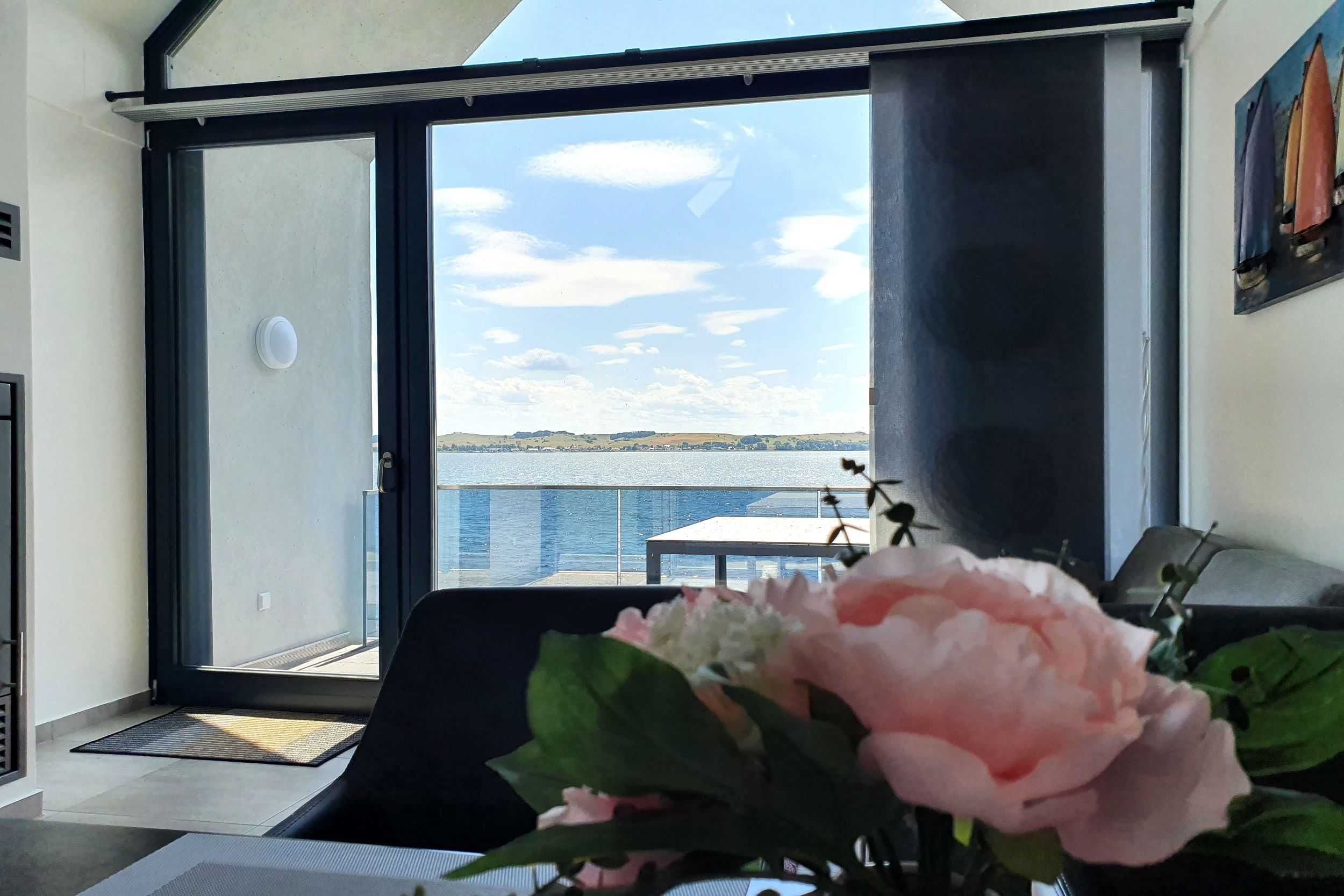 Der Ausblick vom Wohnbereich und des Balkons ist sagenhaft! Die bodentiefe Fensterfront ermöglicht Ihnen einen direkten Wasserblick.