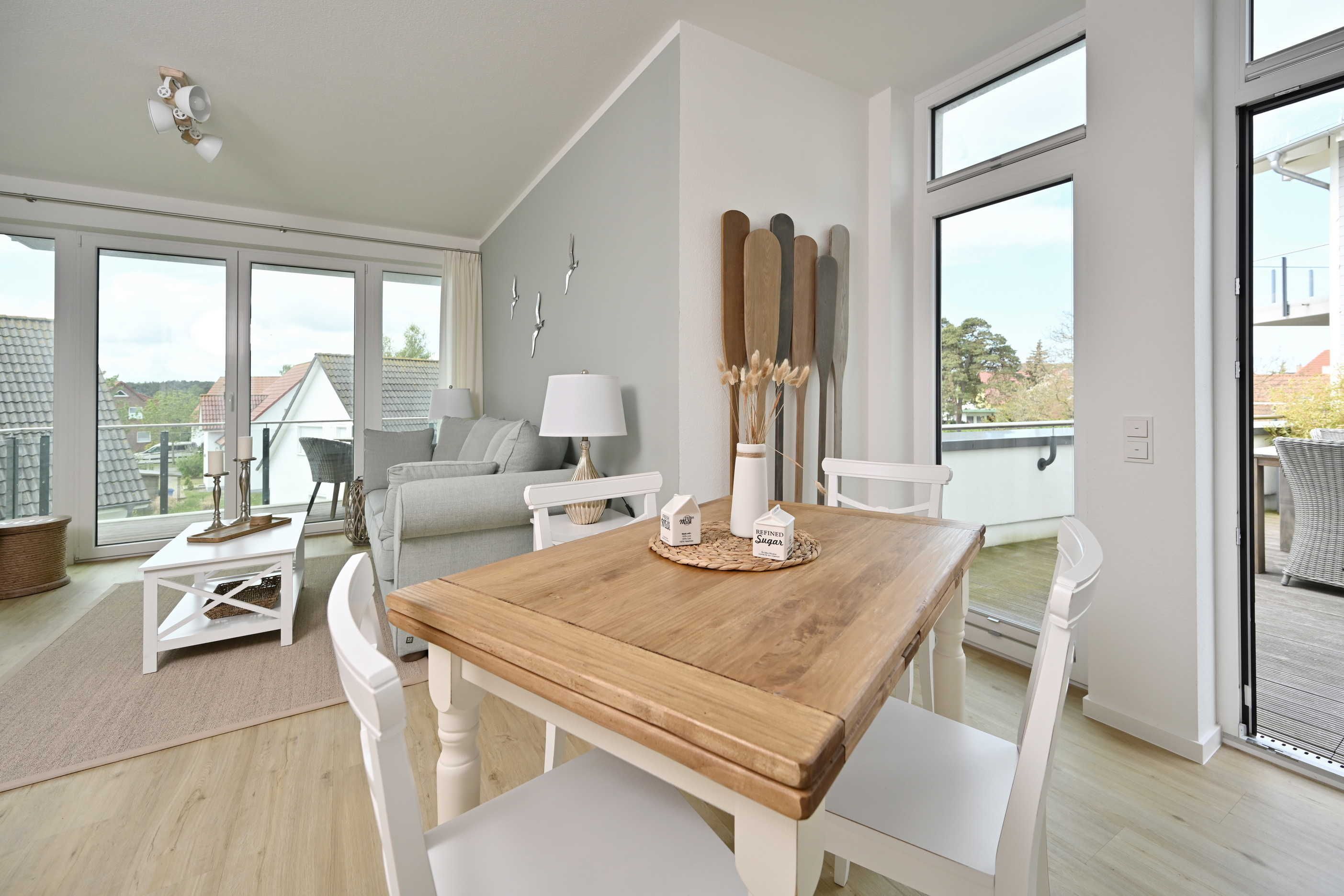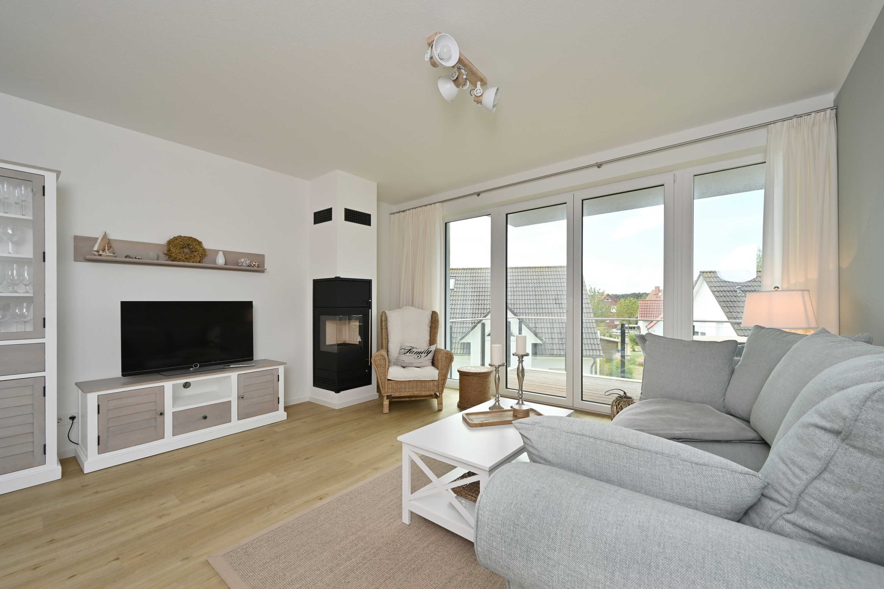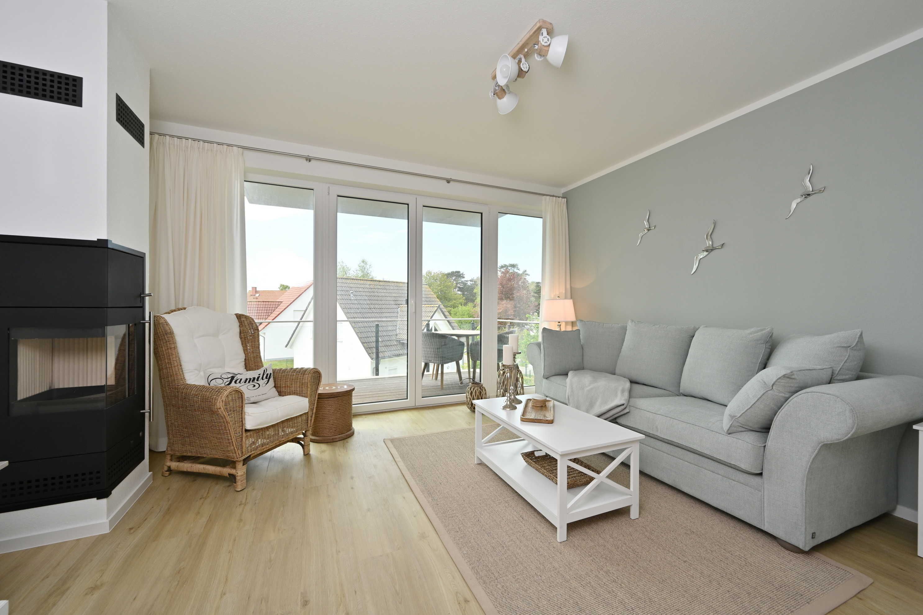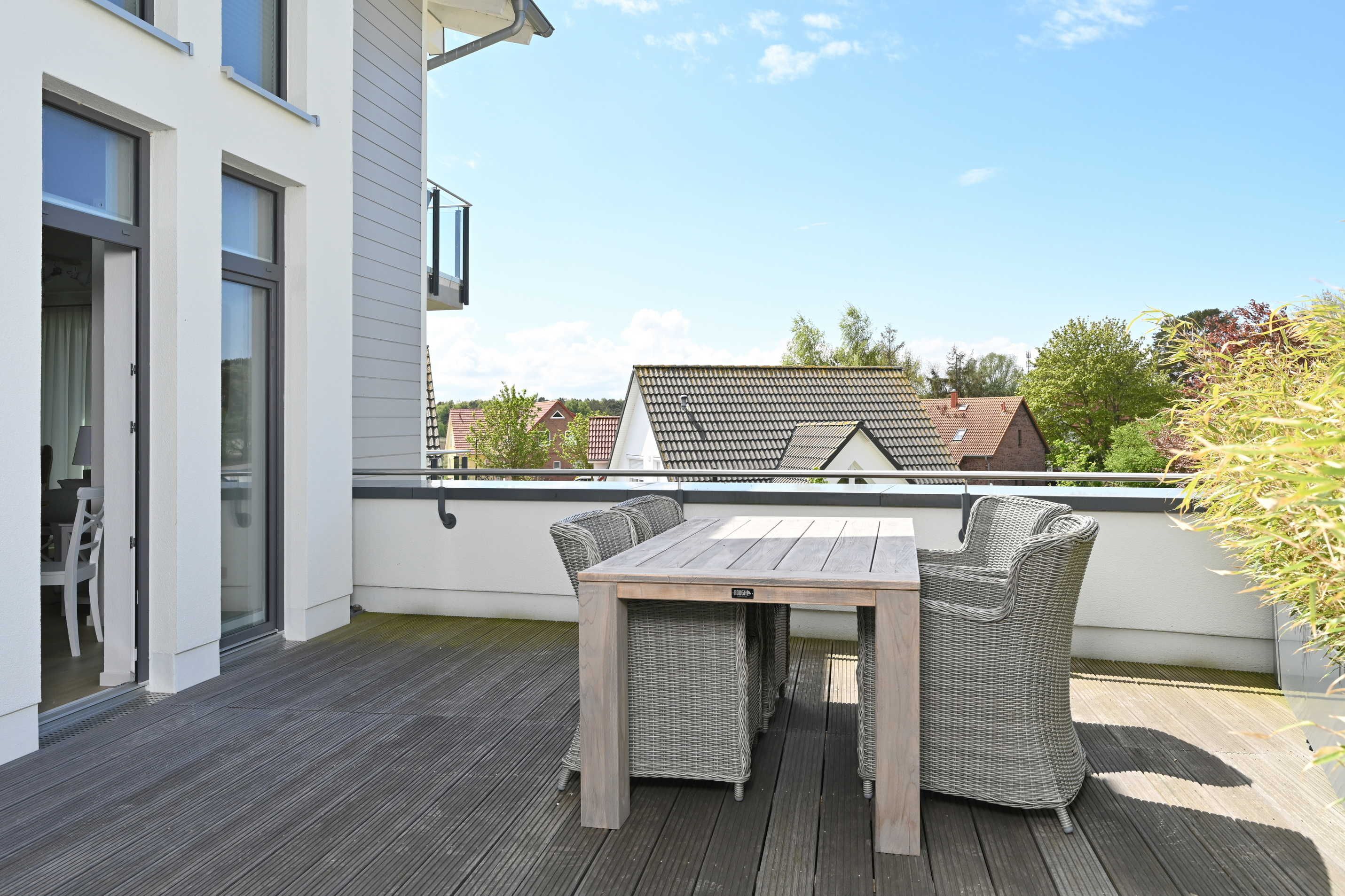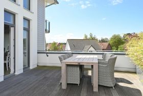 Die nigelnagelneue Ferienwohnung Waveside hat alles was das Urlaubsherz begehrt - zwei Schlafzimmer mit je einem Doppelbett (durchgehende Matratzen), ein Bad mit Dusche, ein Gäste-WC, ein Wohnzimmer mit Kamin und integrierter Küche. Auf dem Balkon oder der riesigen Dachterrasse genießen Sie die Nähe zum Meer. Die Ostsee und der weiße Sandstrand sind nur zwei Gehminuten entfernt.